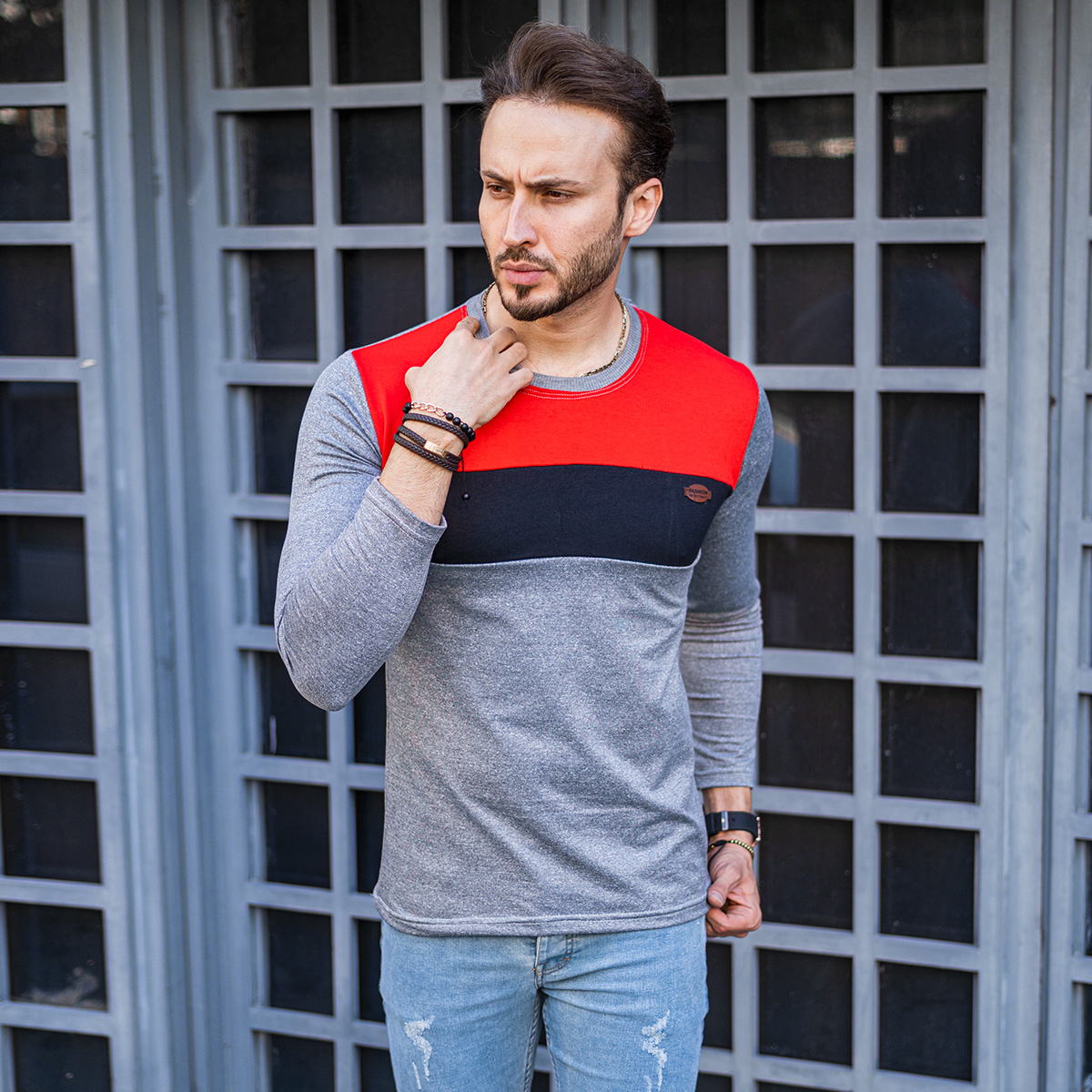 تیشرت پاییزه دوتیکه قرمز مشکی مدل farhod