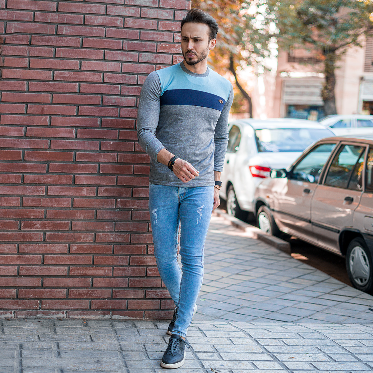 تیشرت پاییزه دوتیکه آبی سرمه ای مدل Farhod
