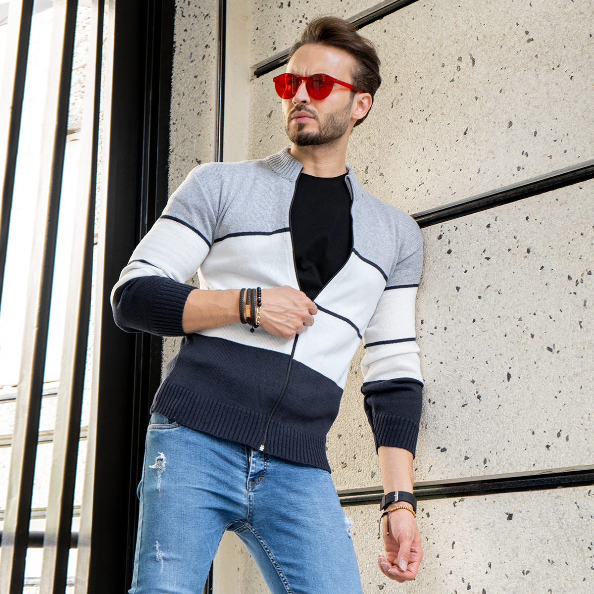سویشرت بافت زیپ دار مردانه سه رنگ مدل ABED