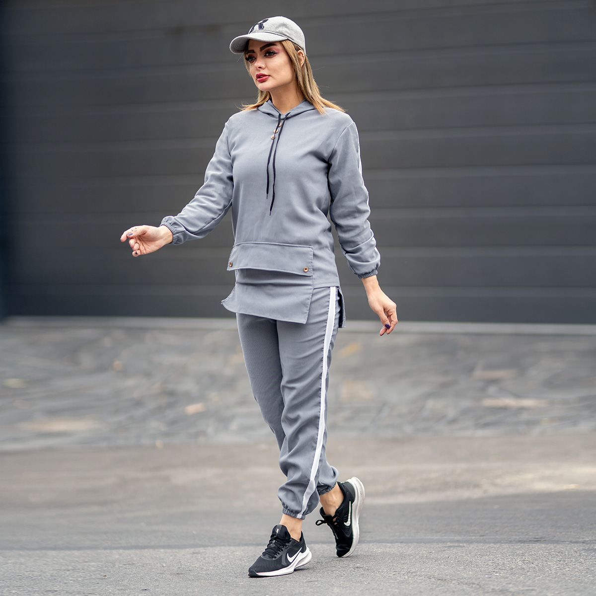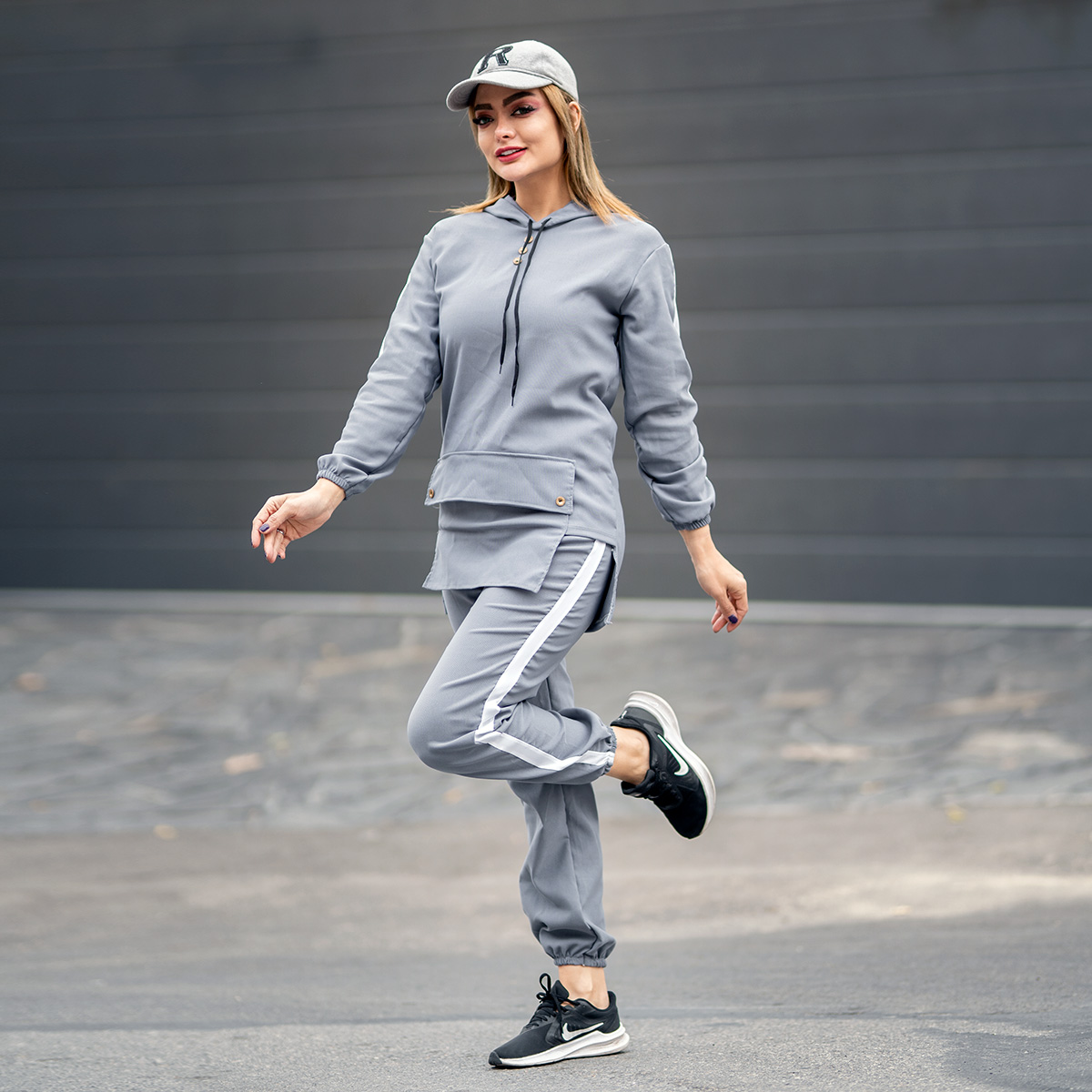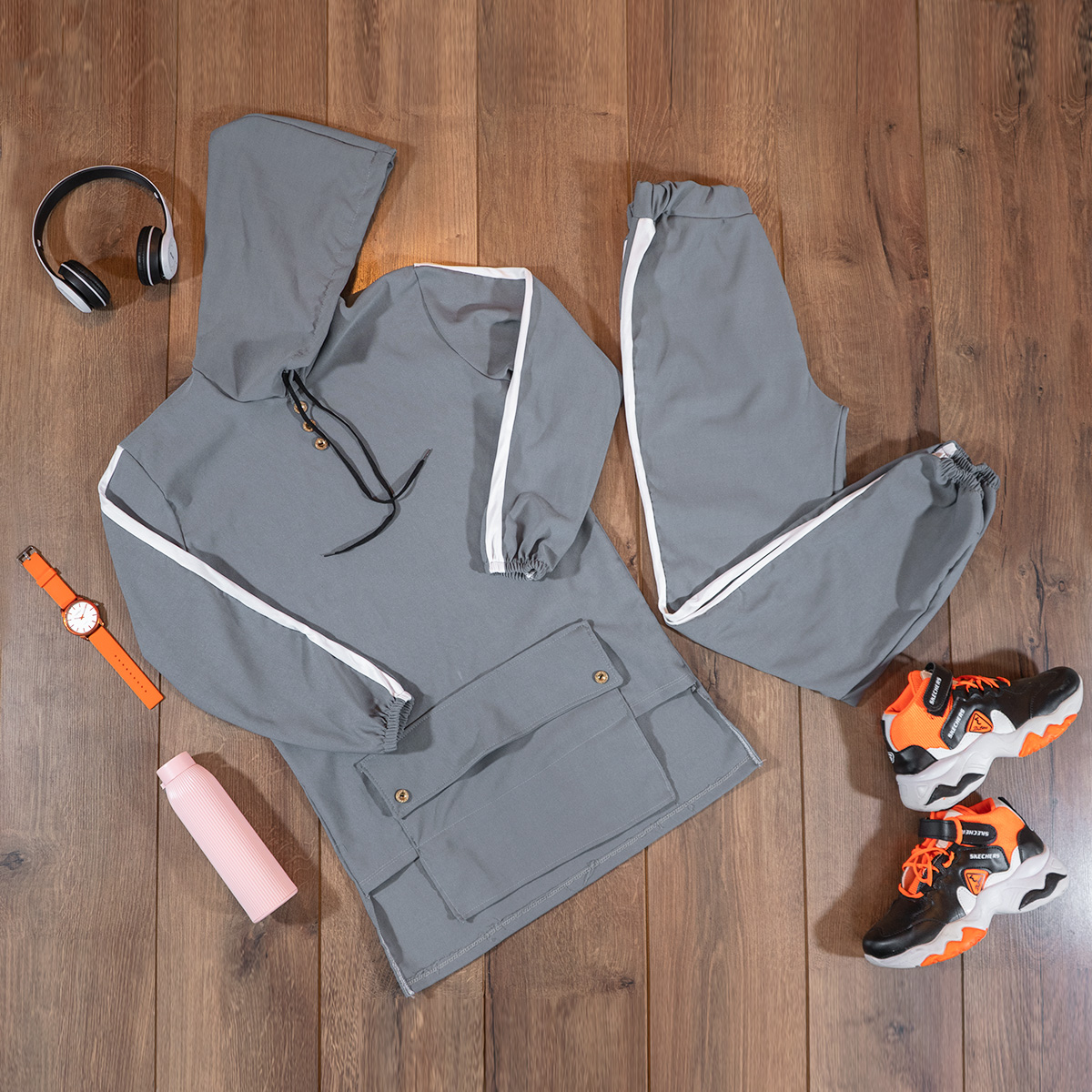 ست هودی شلوار جیب جلو طوسی دخترانه مدل Erina