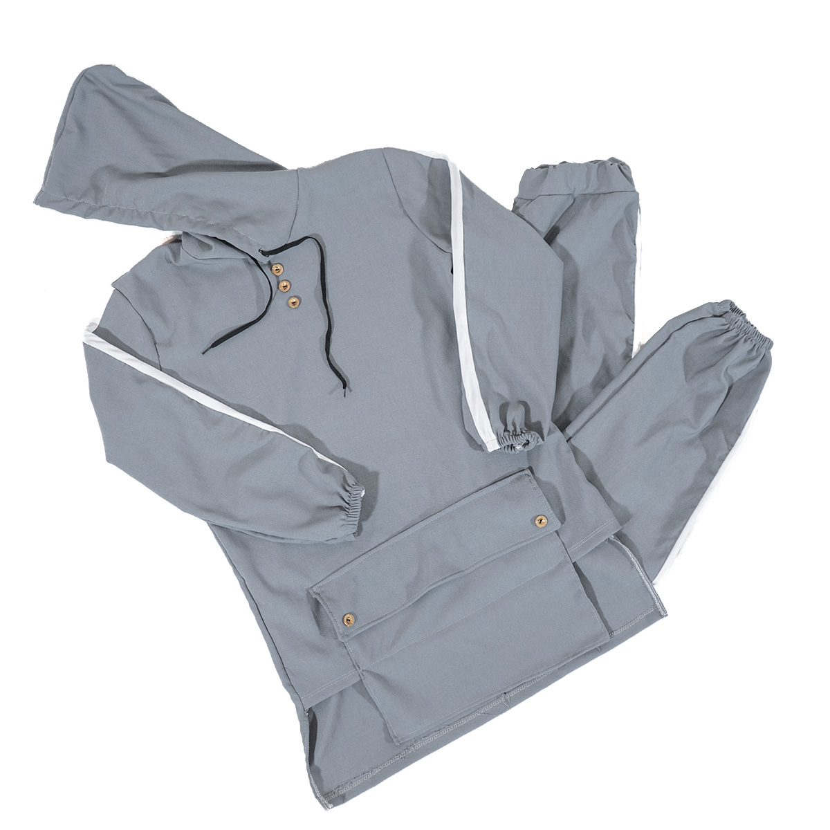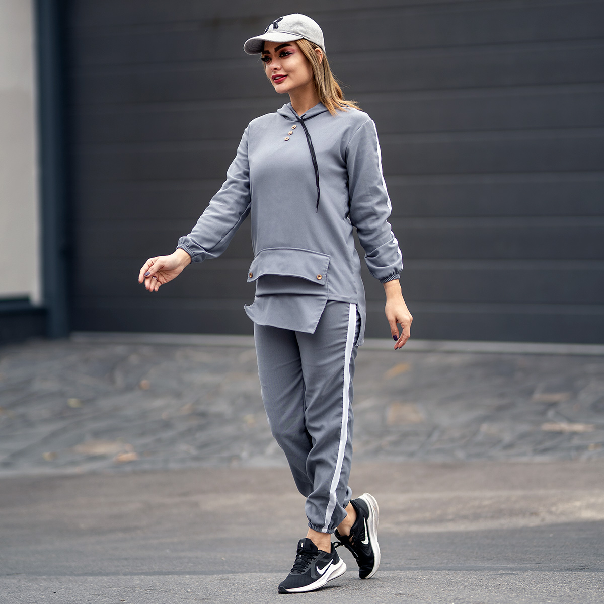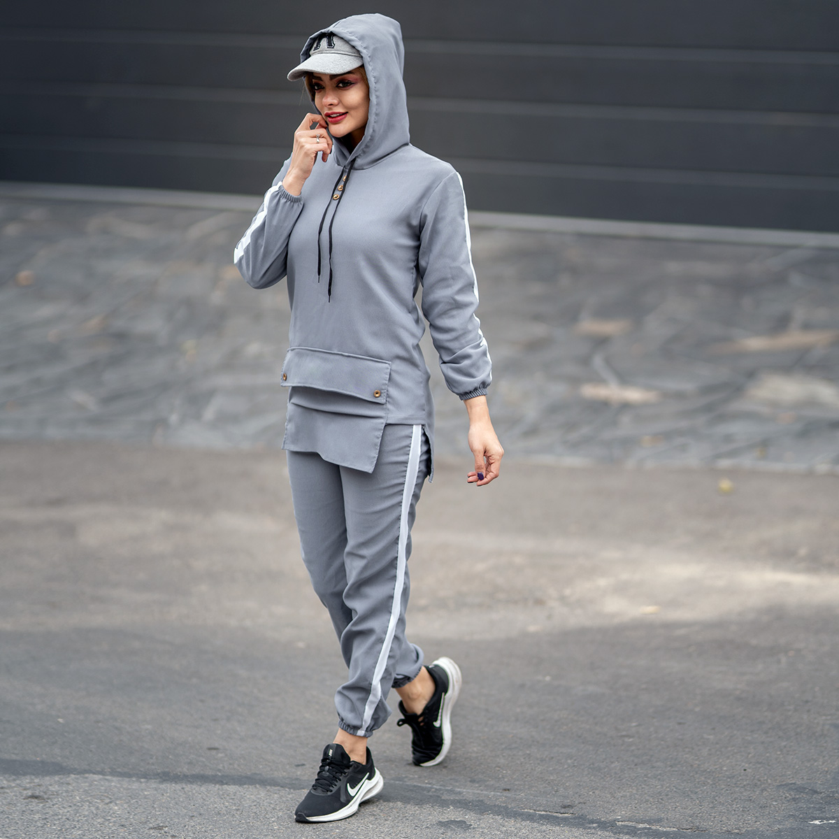 ست هودی شلوار جیب جلو طوسی دخترانه مدل Erina