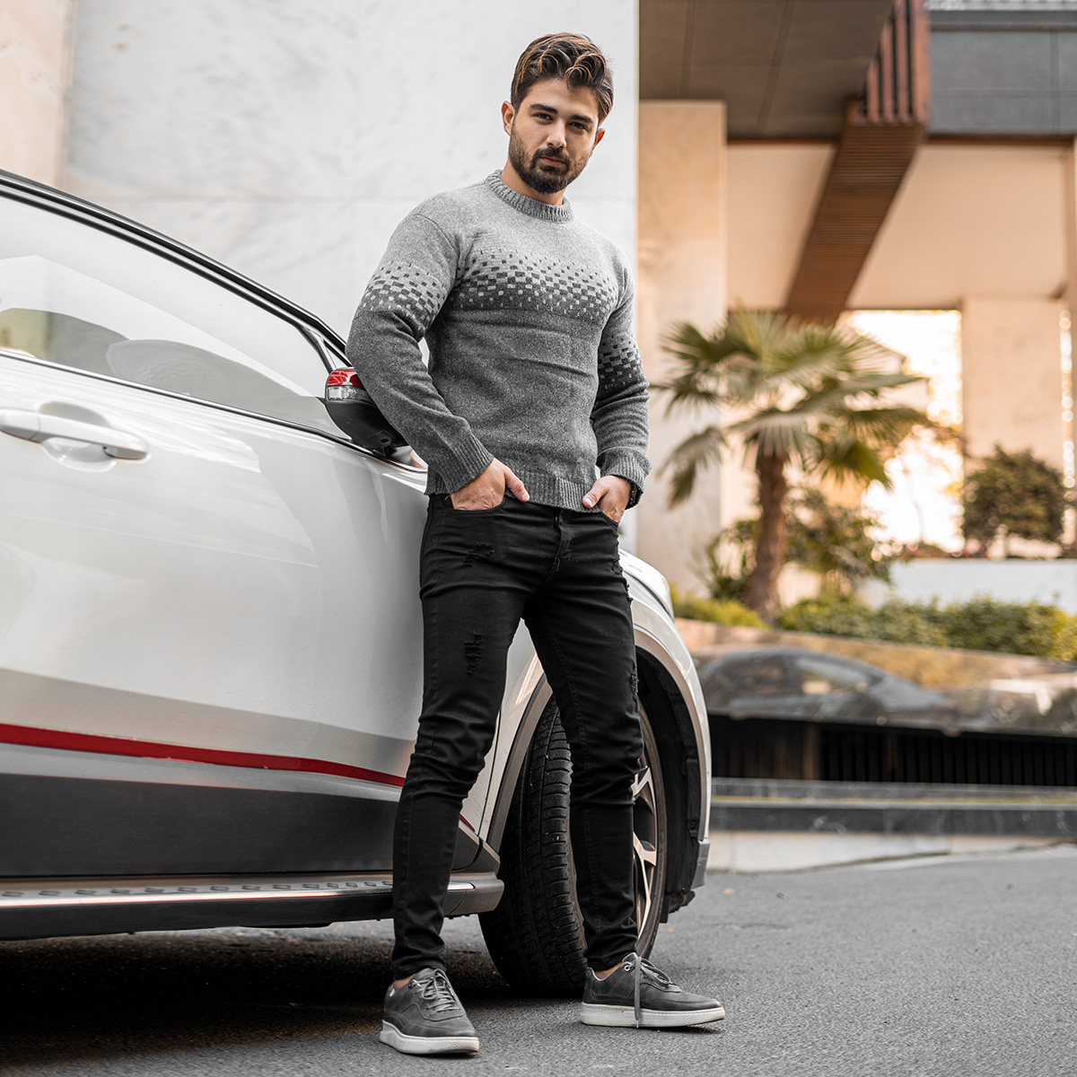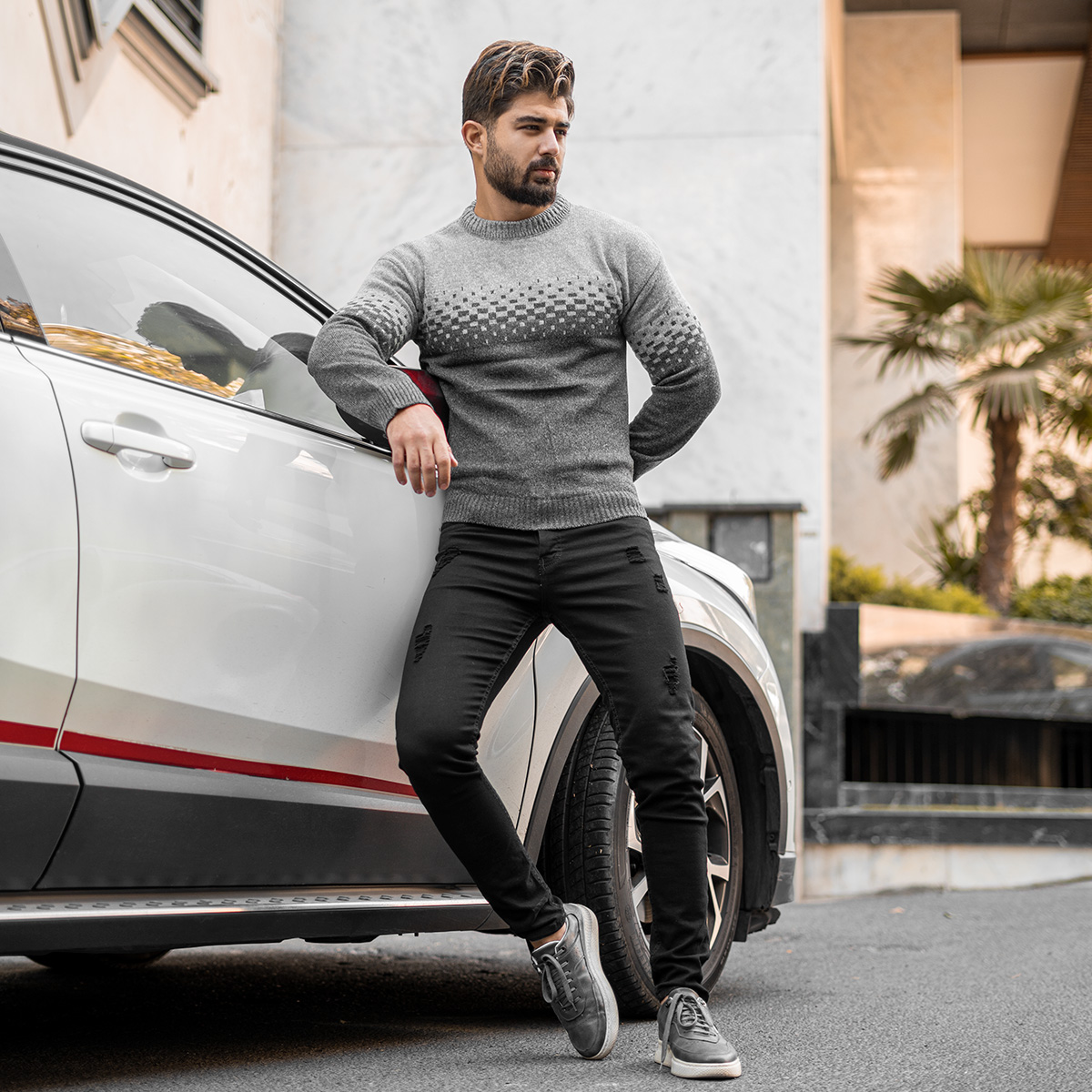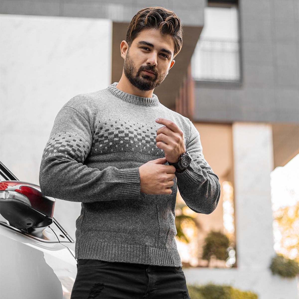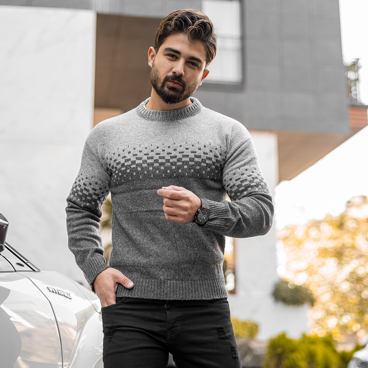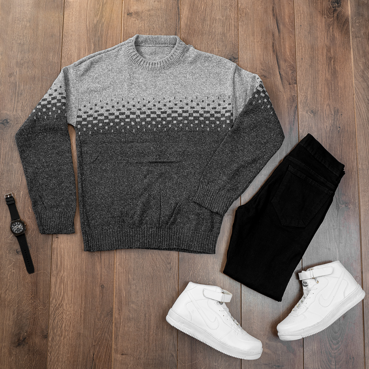 پلیور مردانه دو رنگ طوسی ذغالی مدلShatel