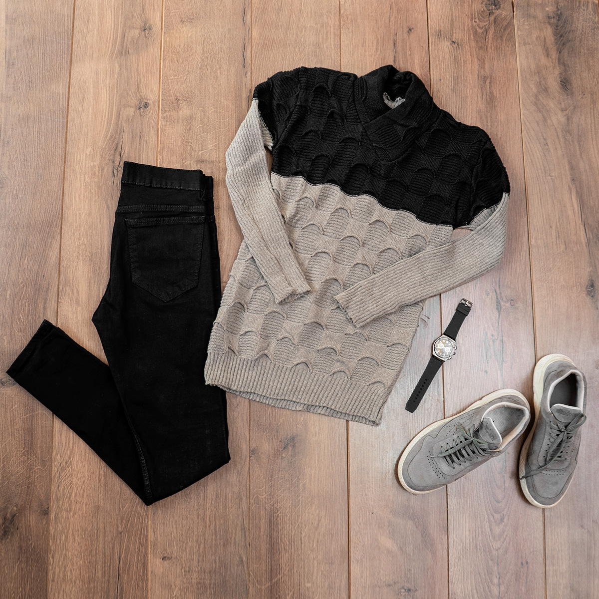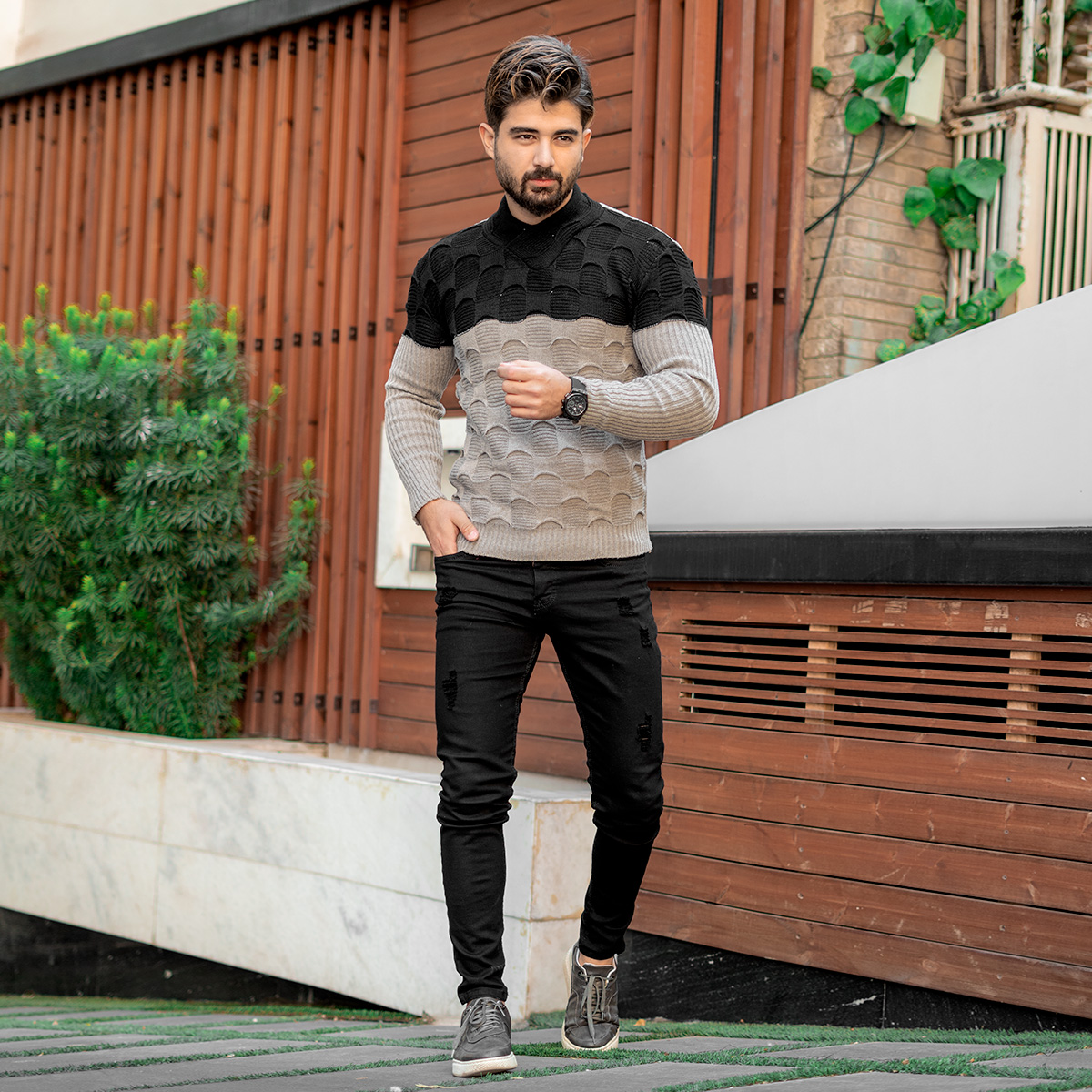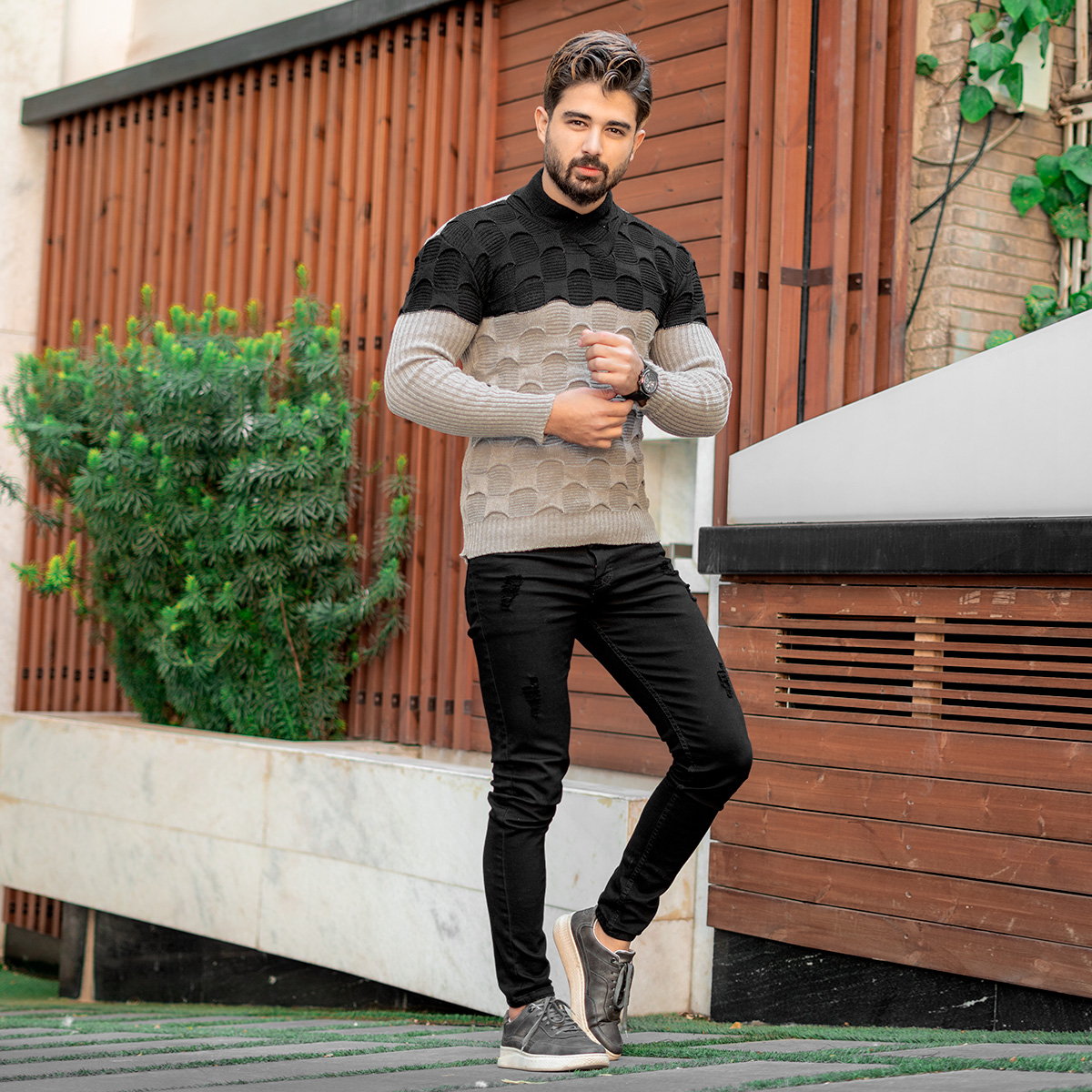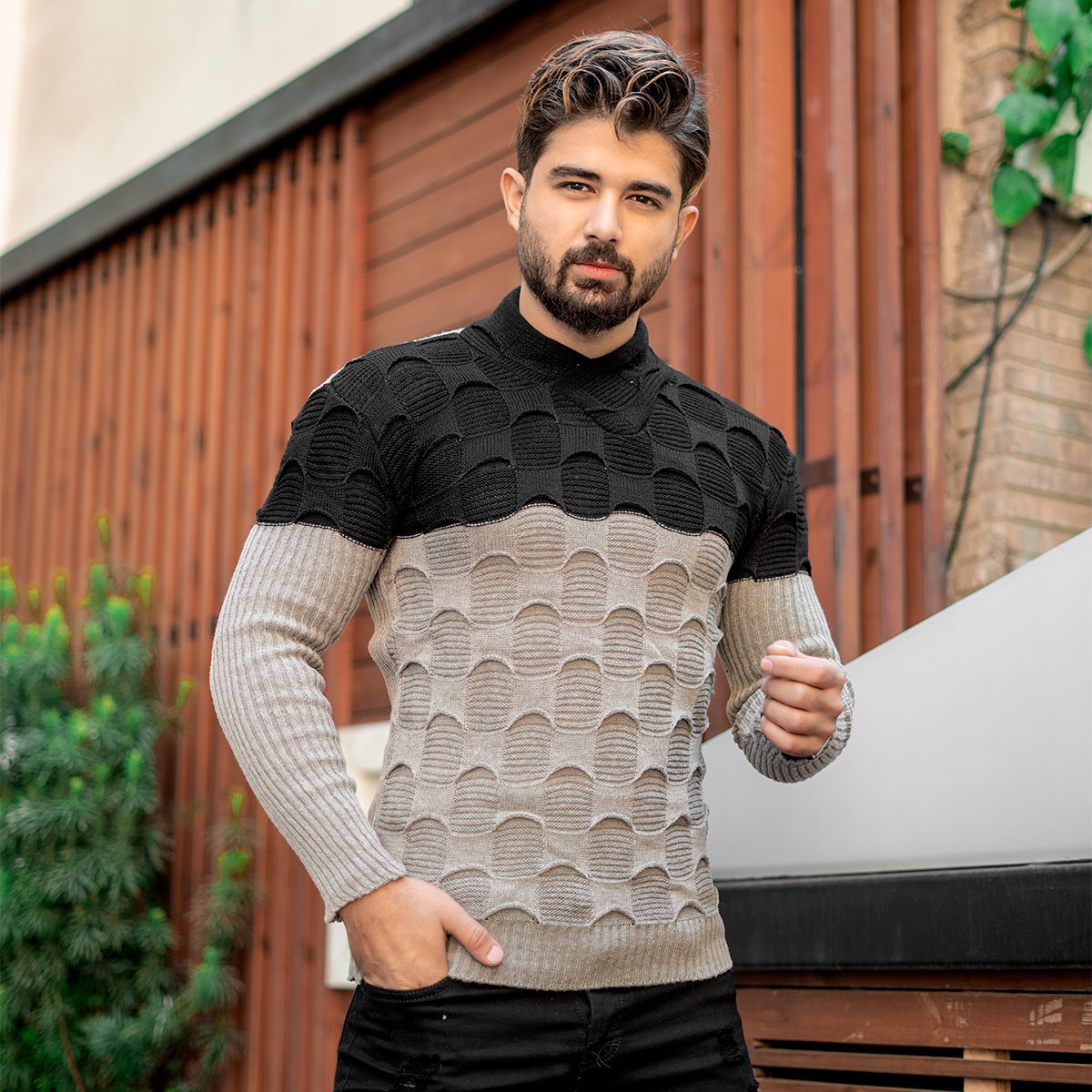 با پلیور دورنگ مشکی کرم مردانه مدلArkiaیک استایل کژوال بی نقص خواهید داشت.