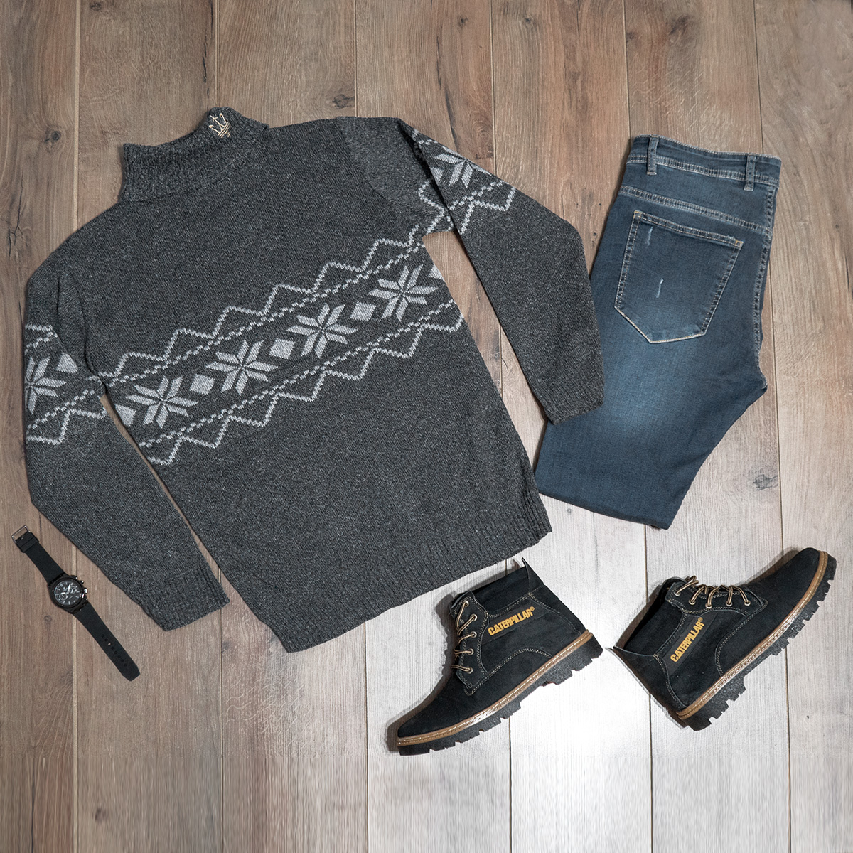 یقه اسکی مردانه ذغالی مدل Arja