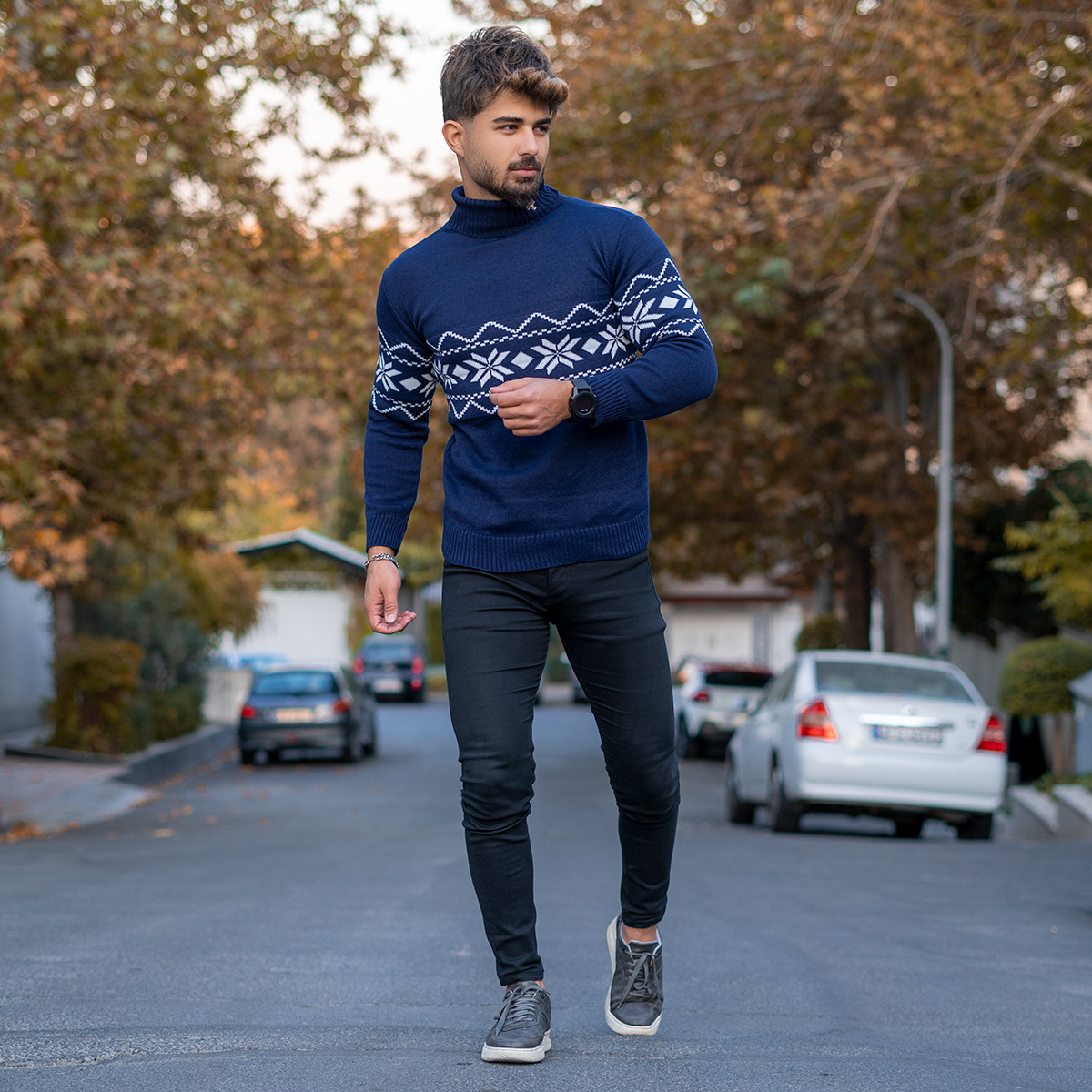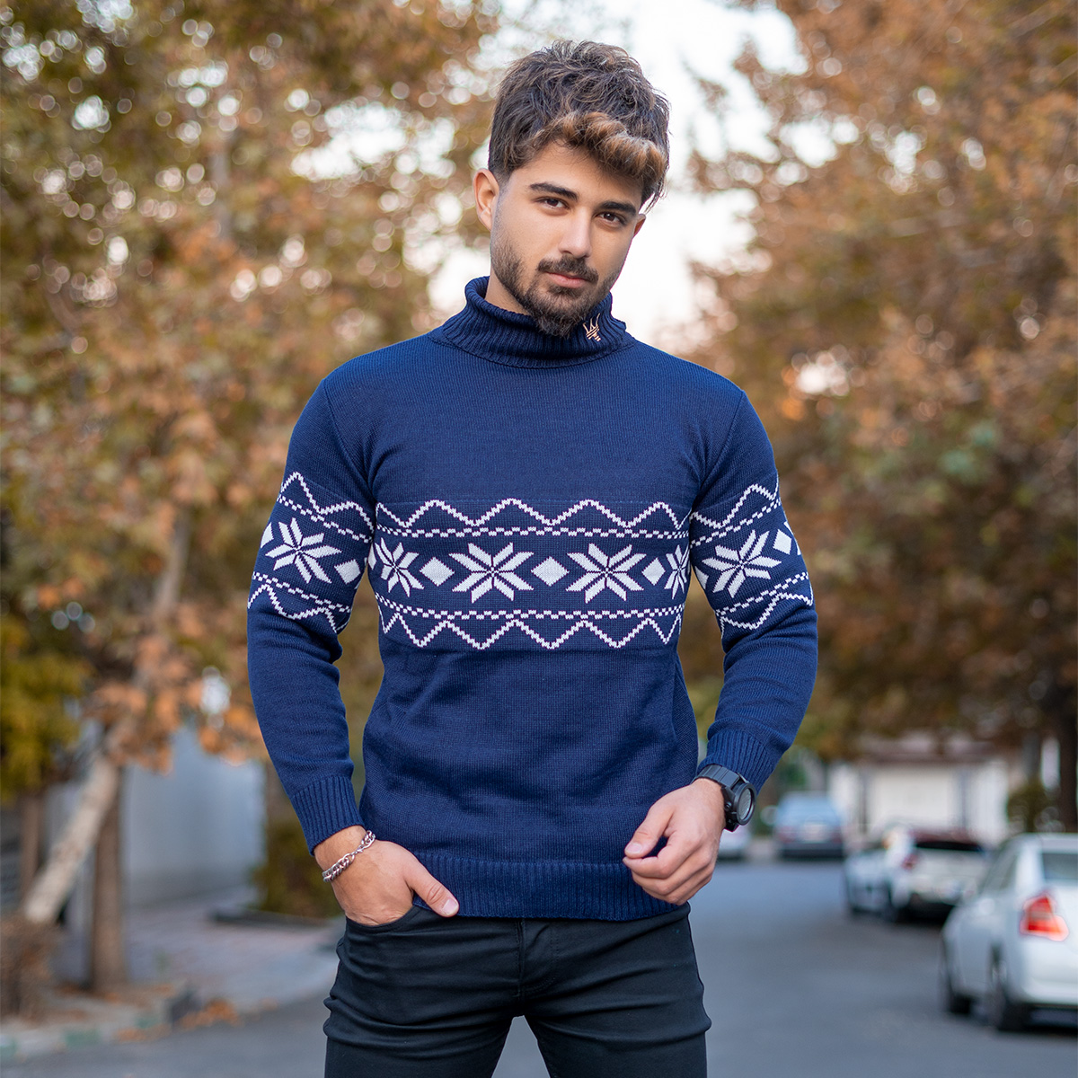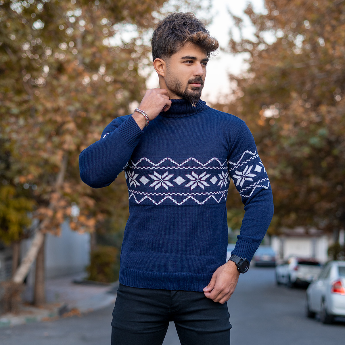یقه اسکی مردانه سرمه ای مدل Arja