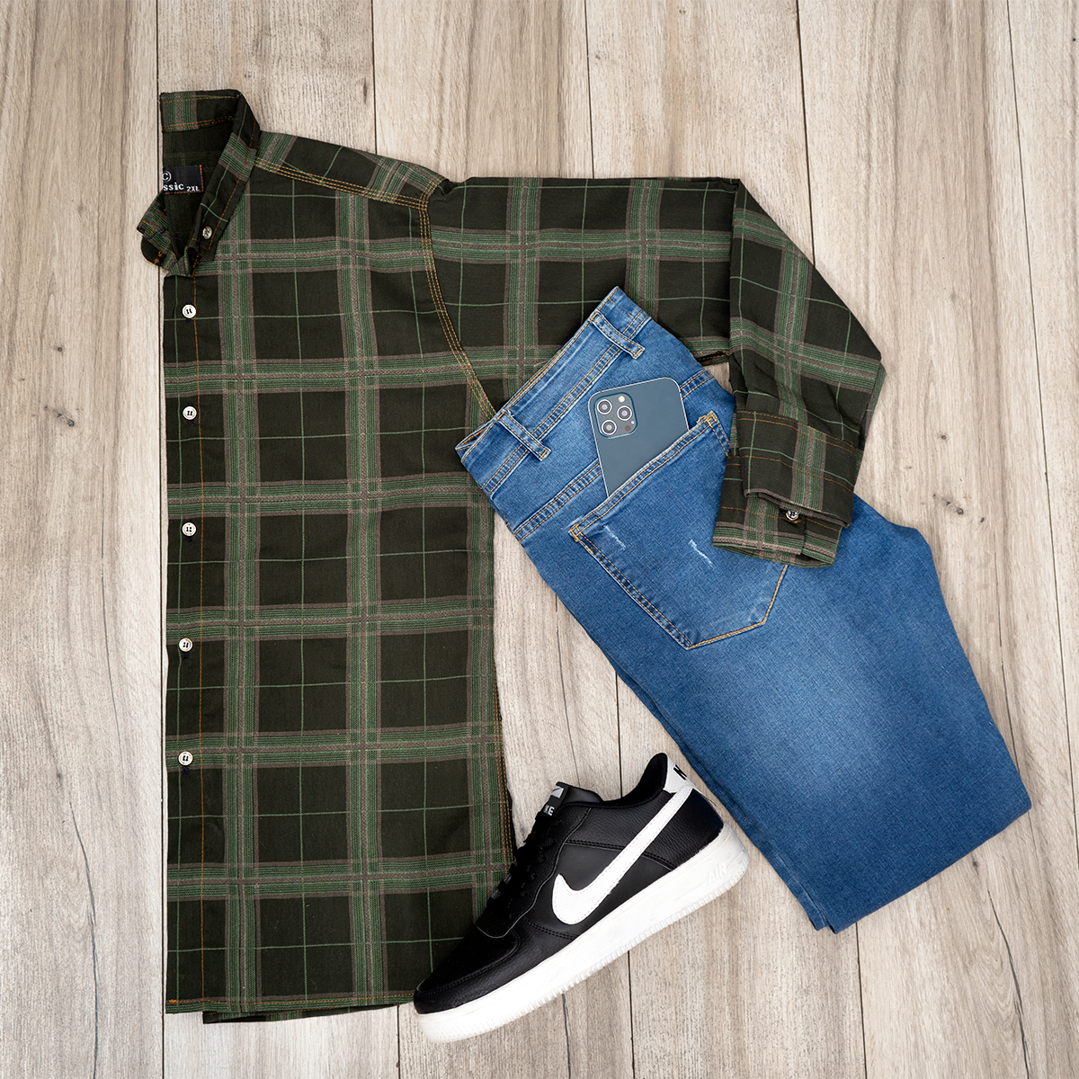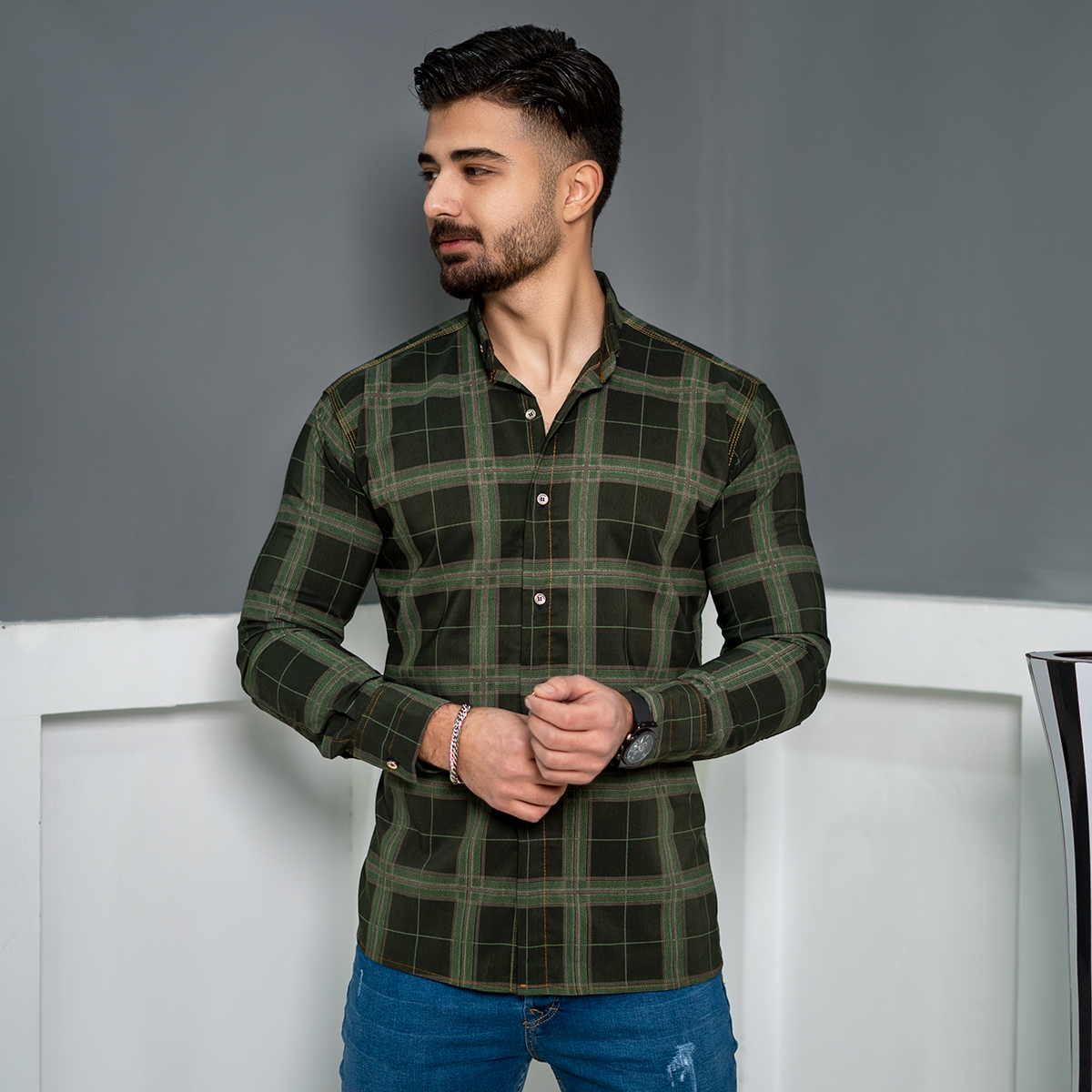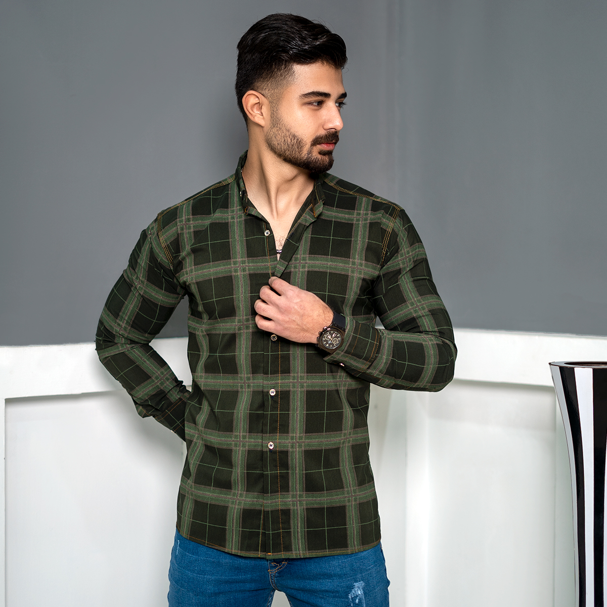 پیراهن مردانه چهارخونه سبز مردانه مدل makio