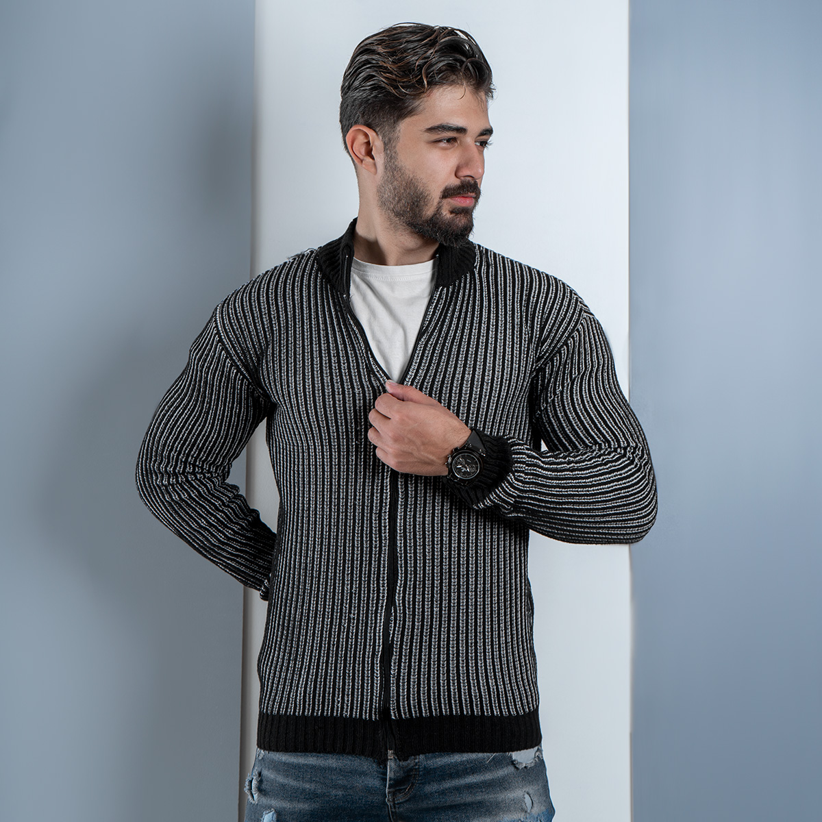 سوییشرت بافت (T)زیپ دار مشکی مدلANOSH