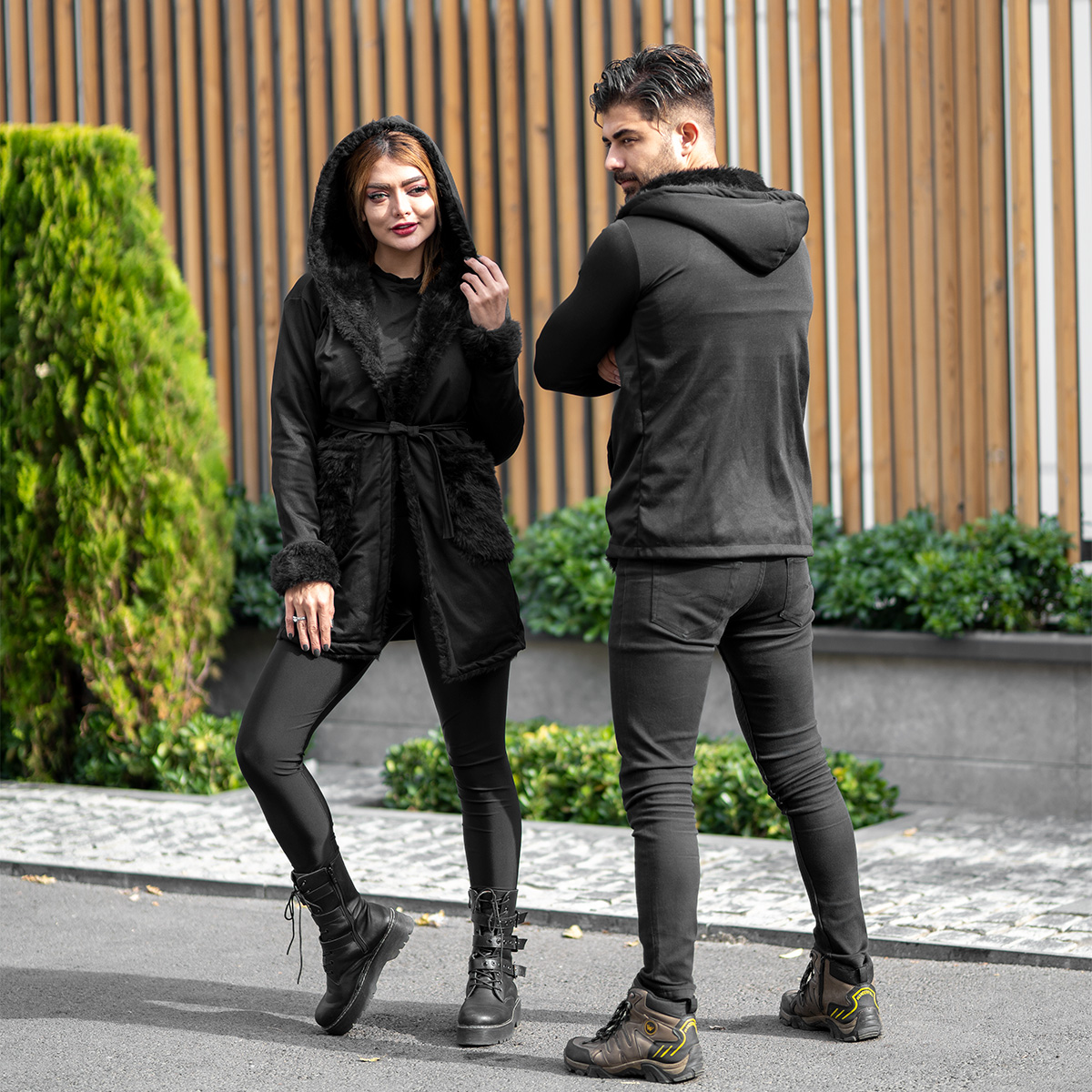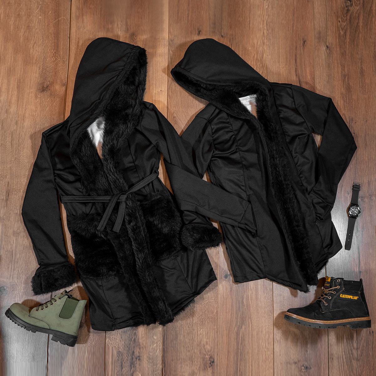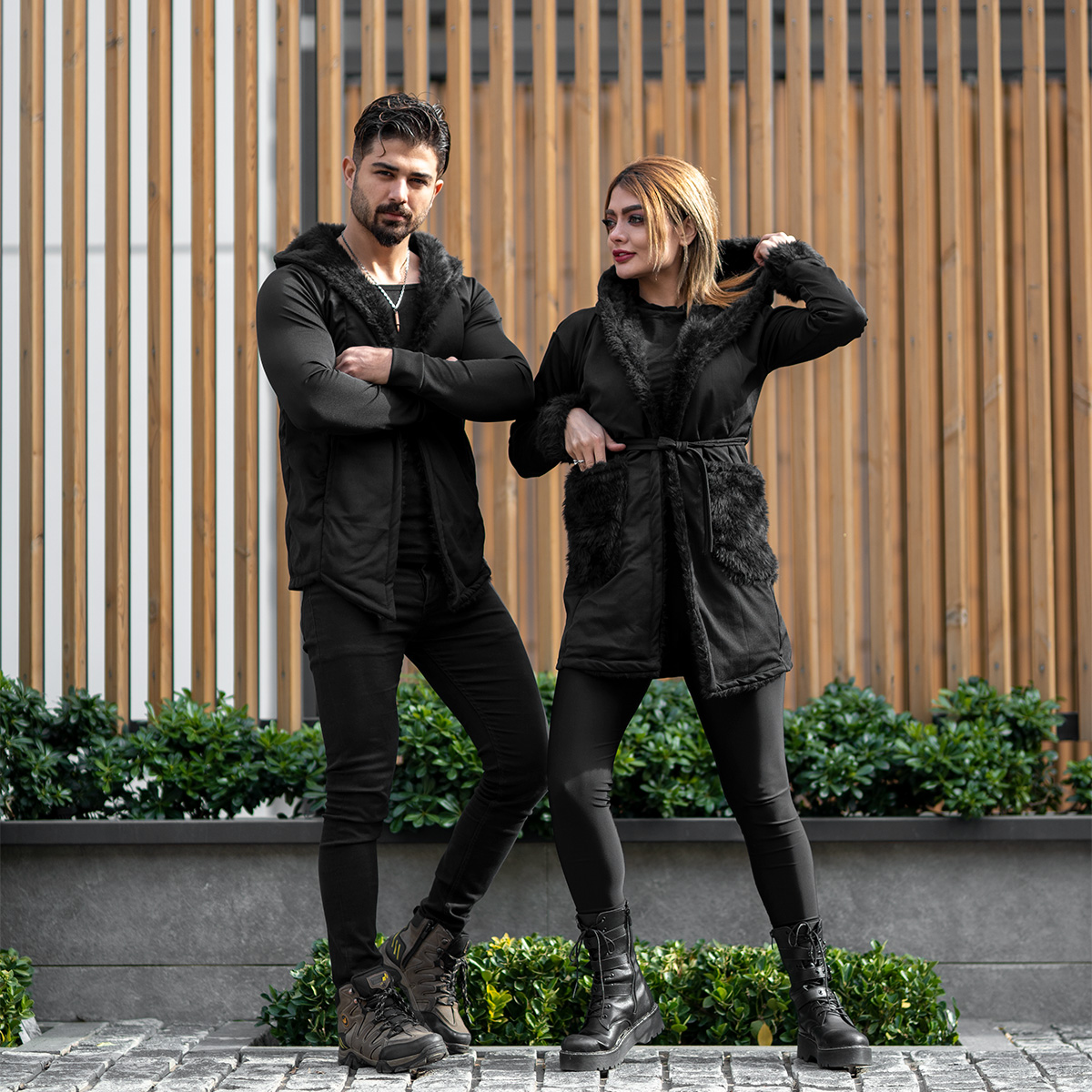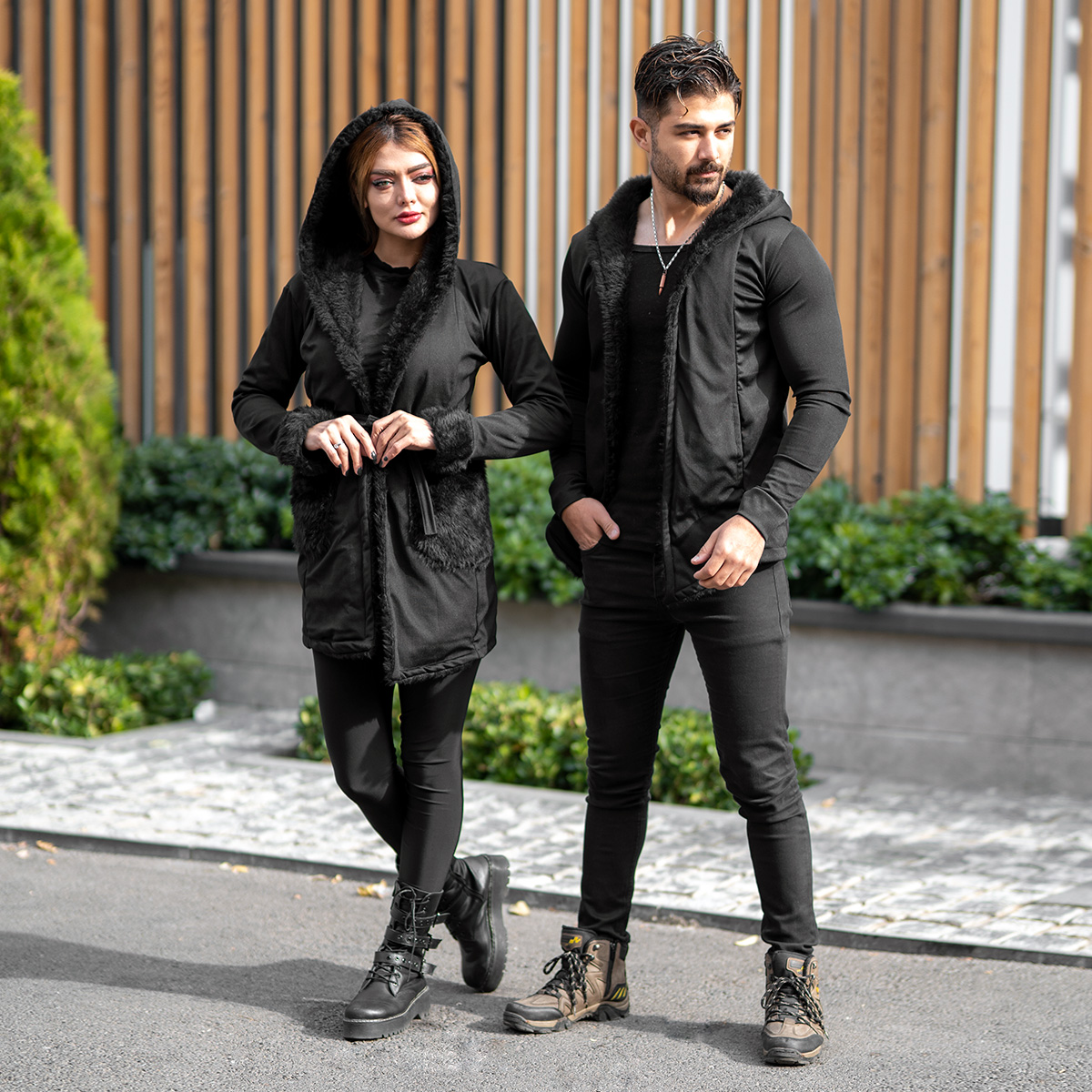 ست شنل مردانه و زنانه خزدار مشکی مدلnivo
