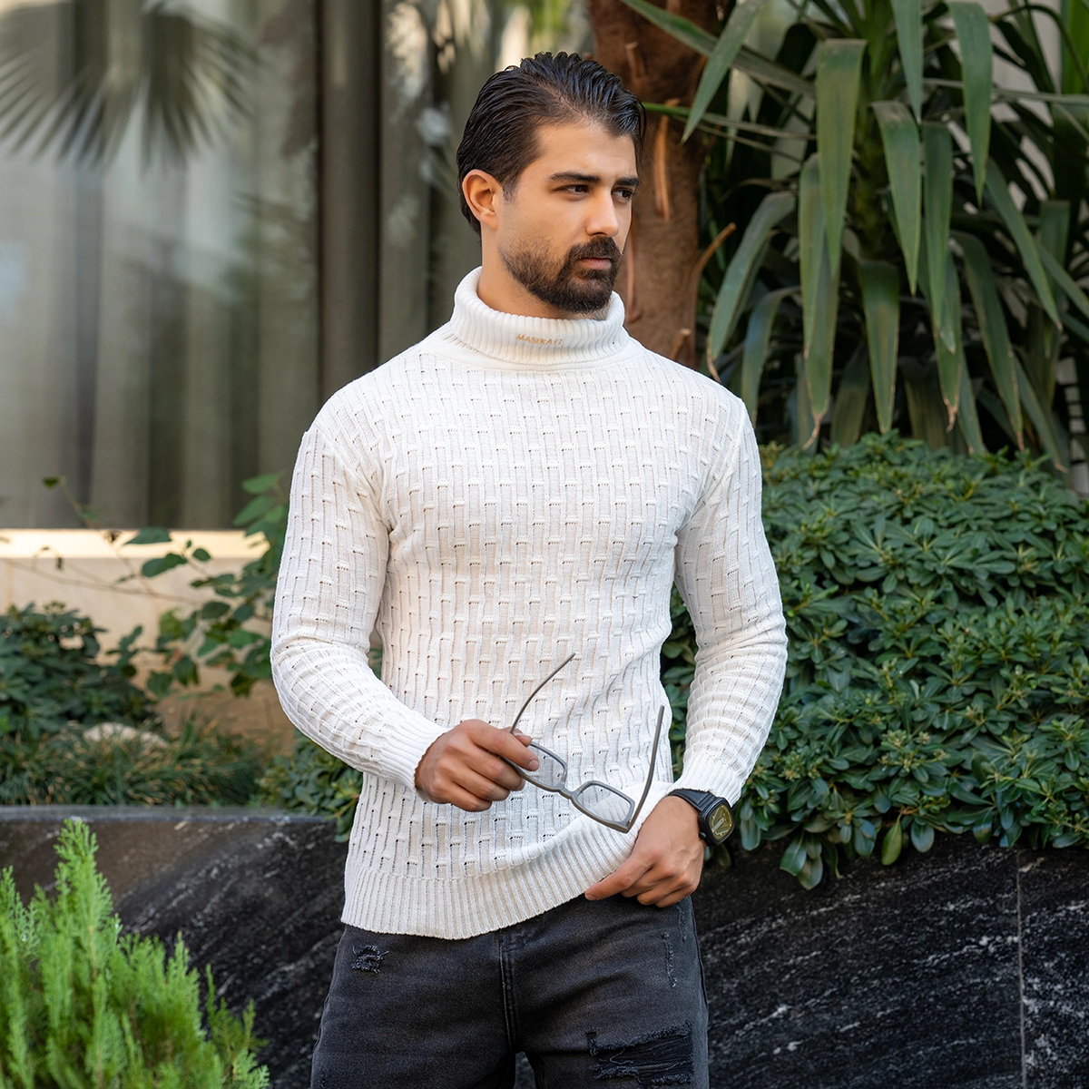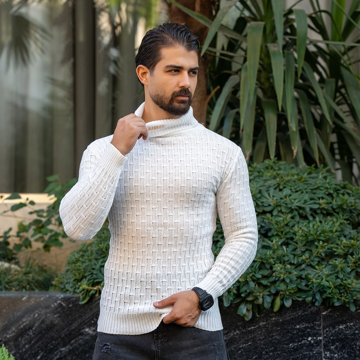 پلیور اندامی یقه اسکی سفید مردانه مدلotik