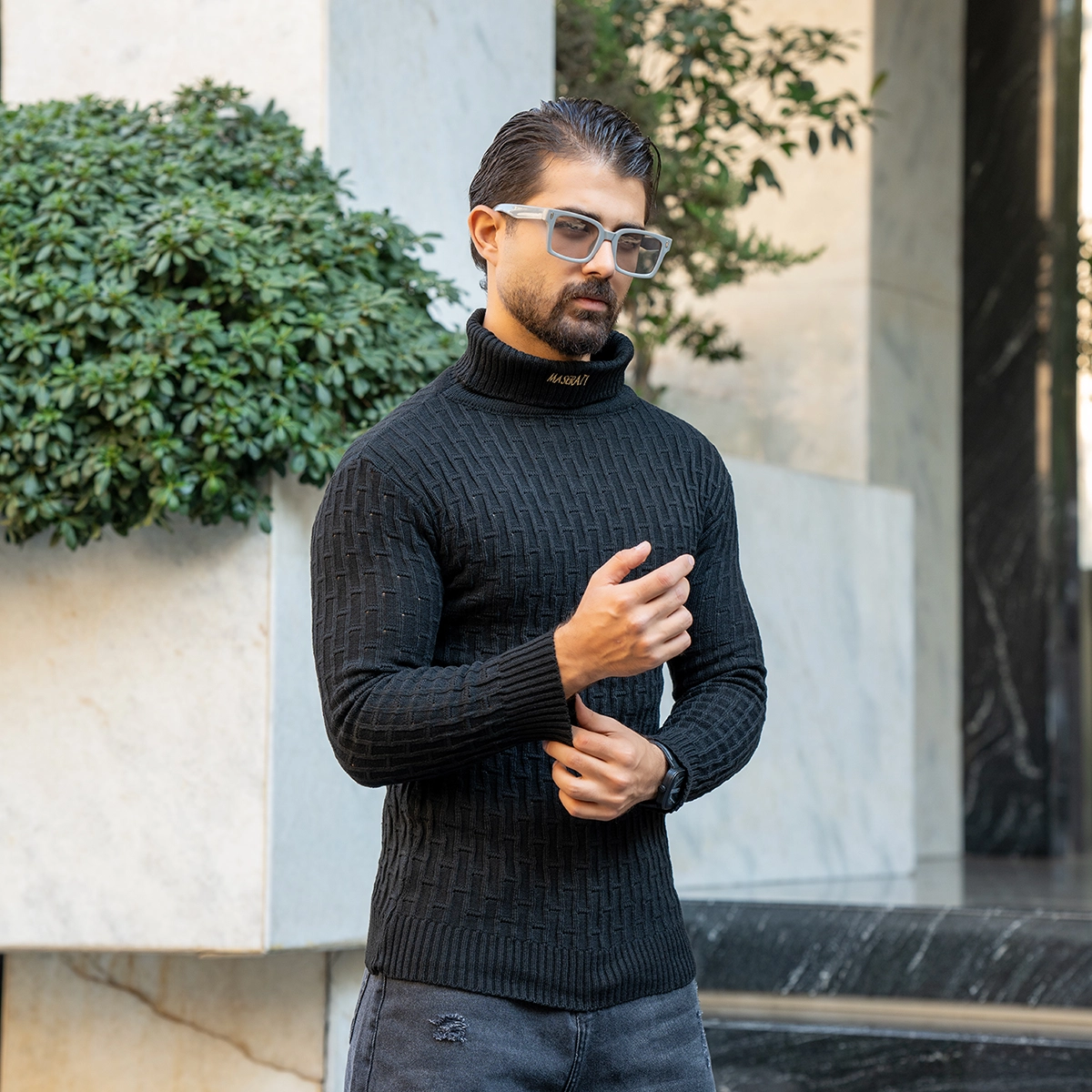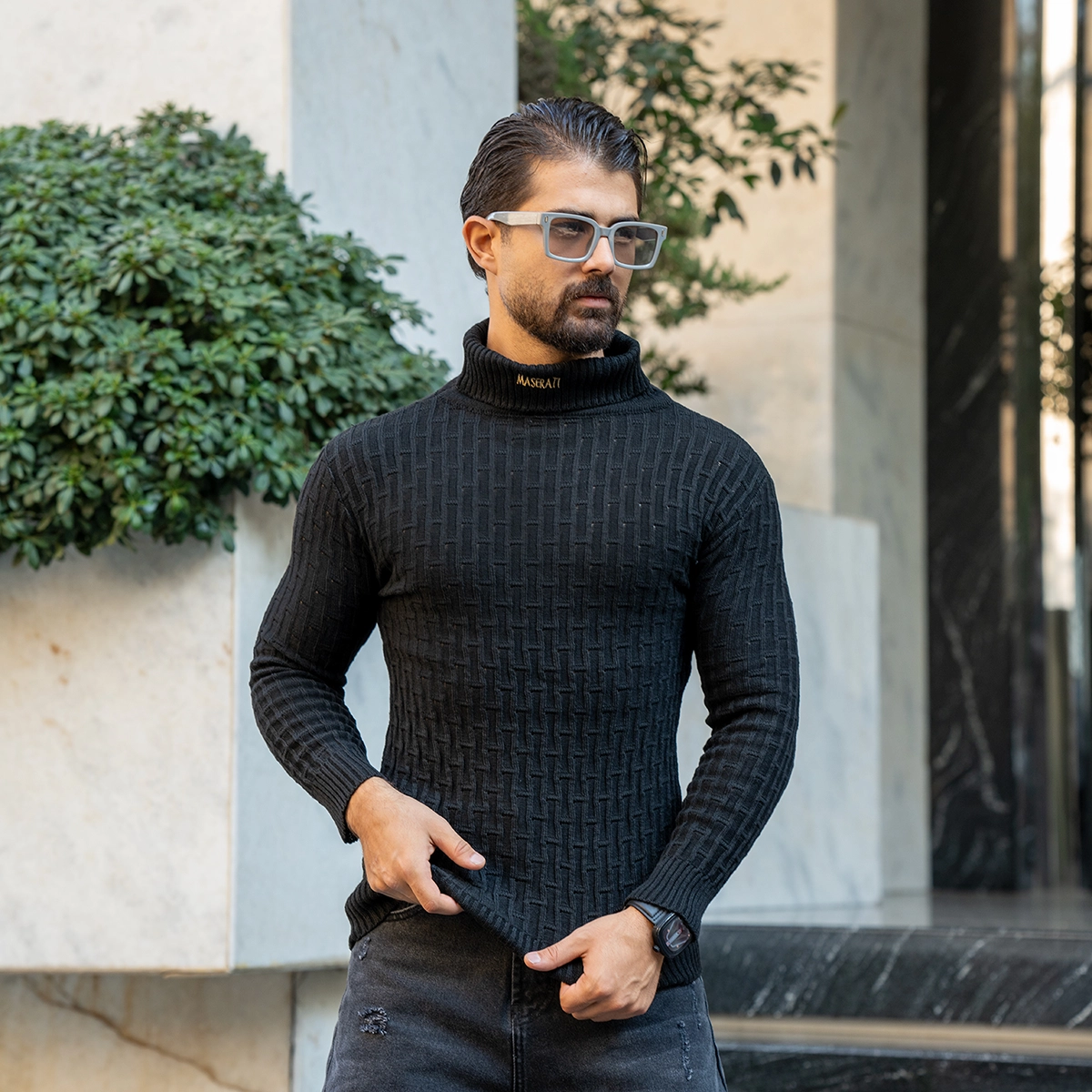 پلیور اندامی یقه اسکی مشکی مردانه مدلotik