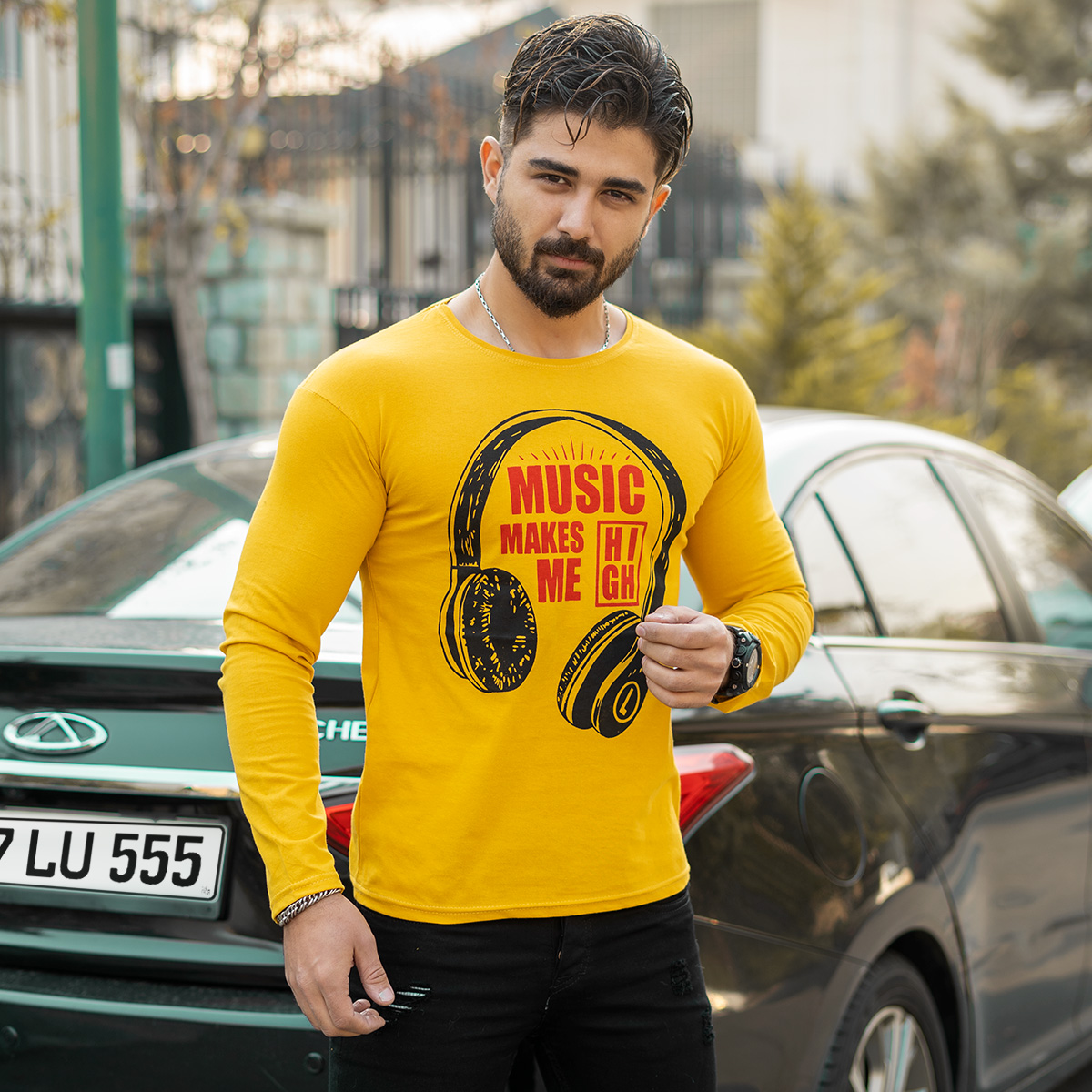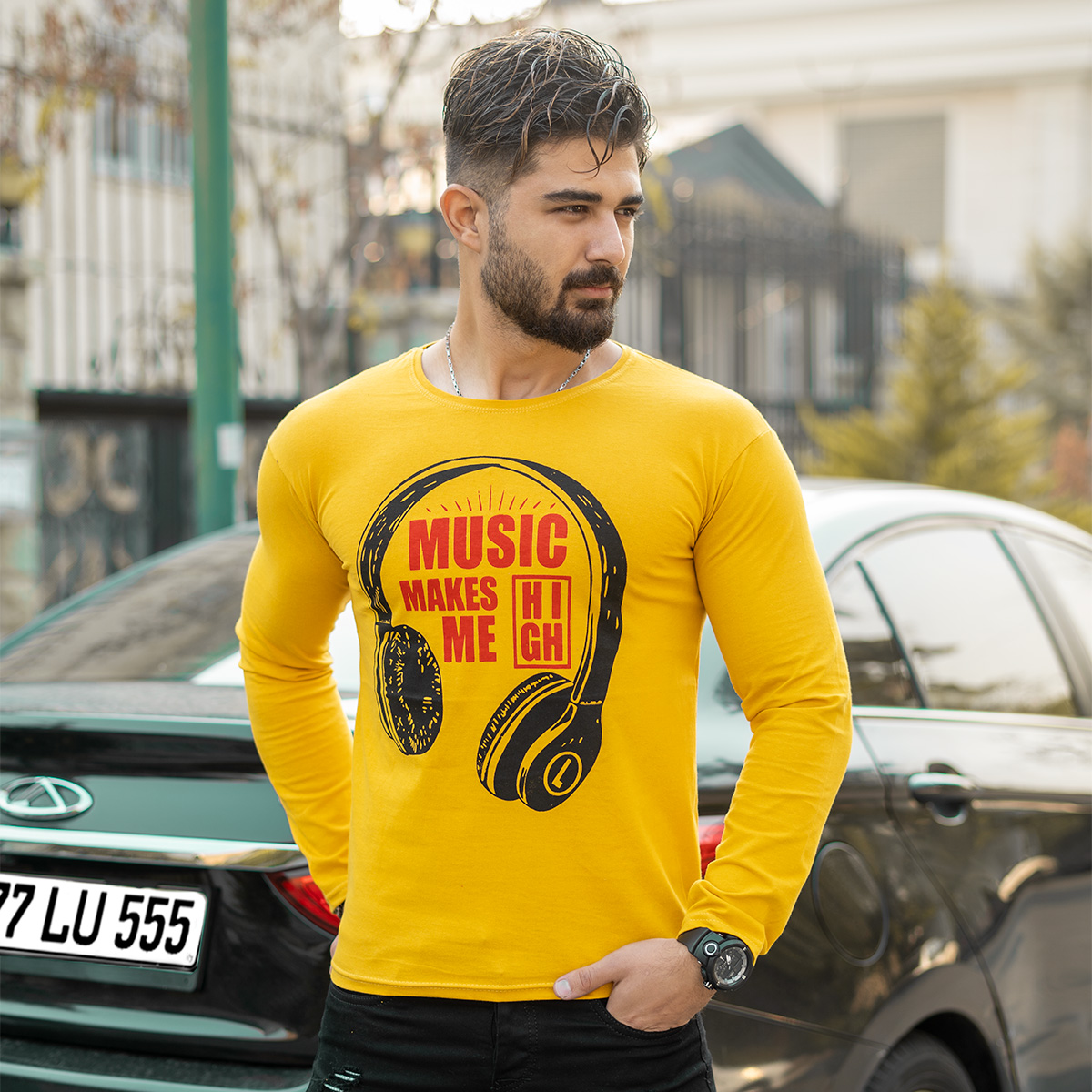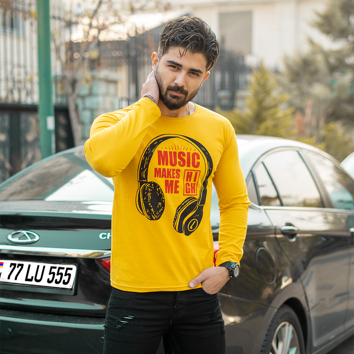 تیشرت آستین بلند مردانه طرح هدست زرد مدل O22