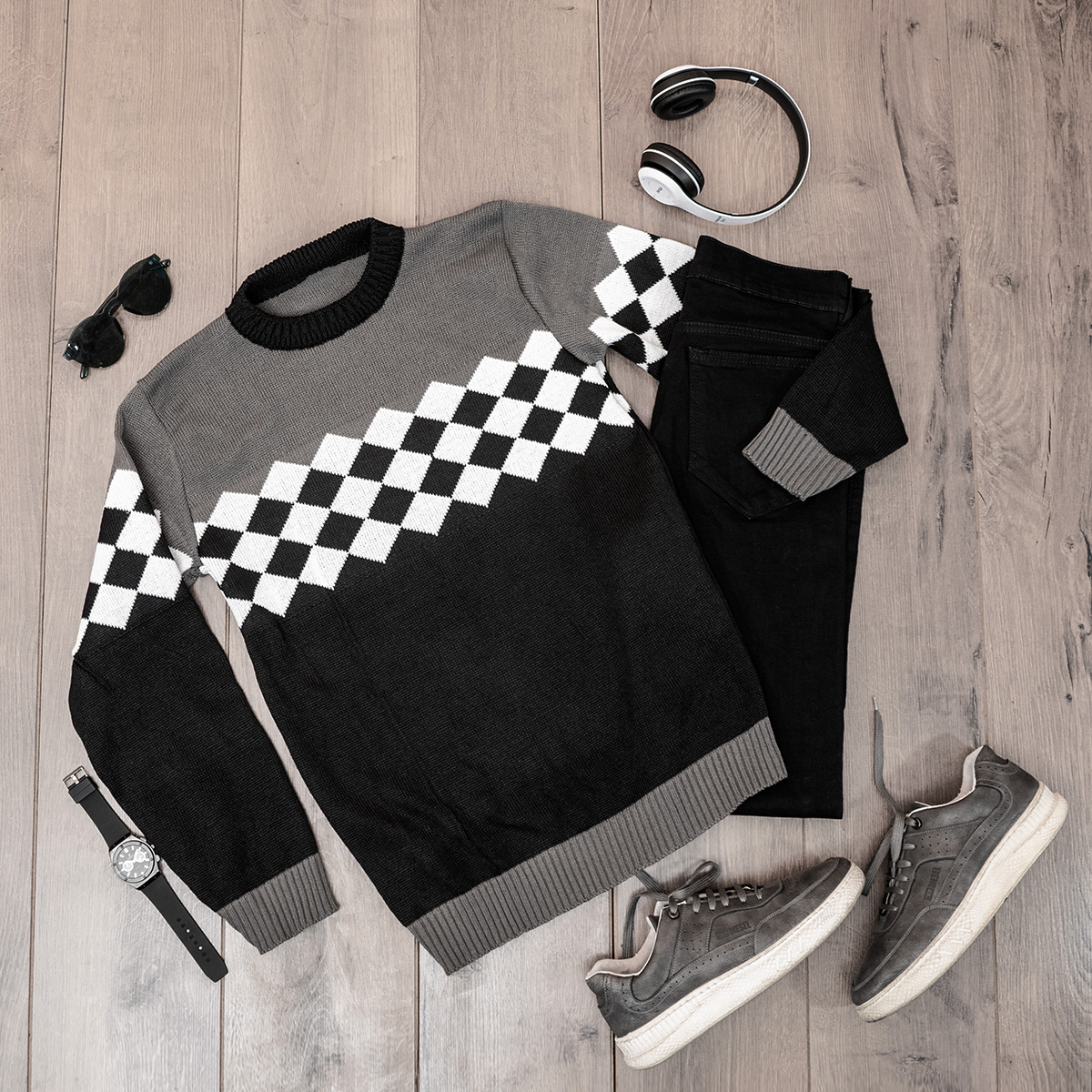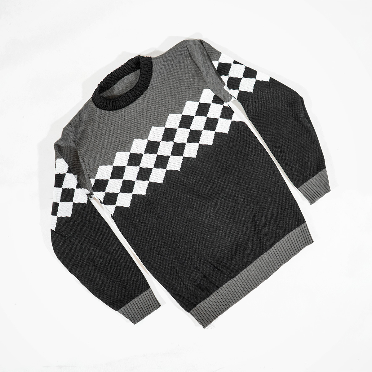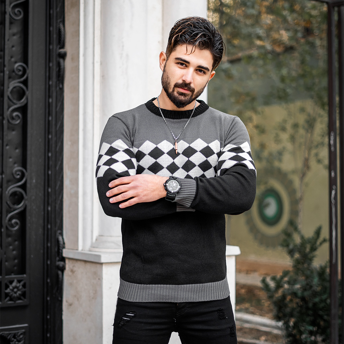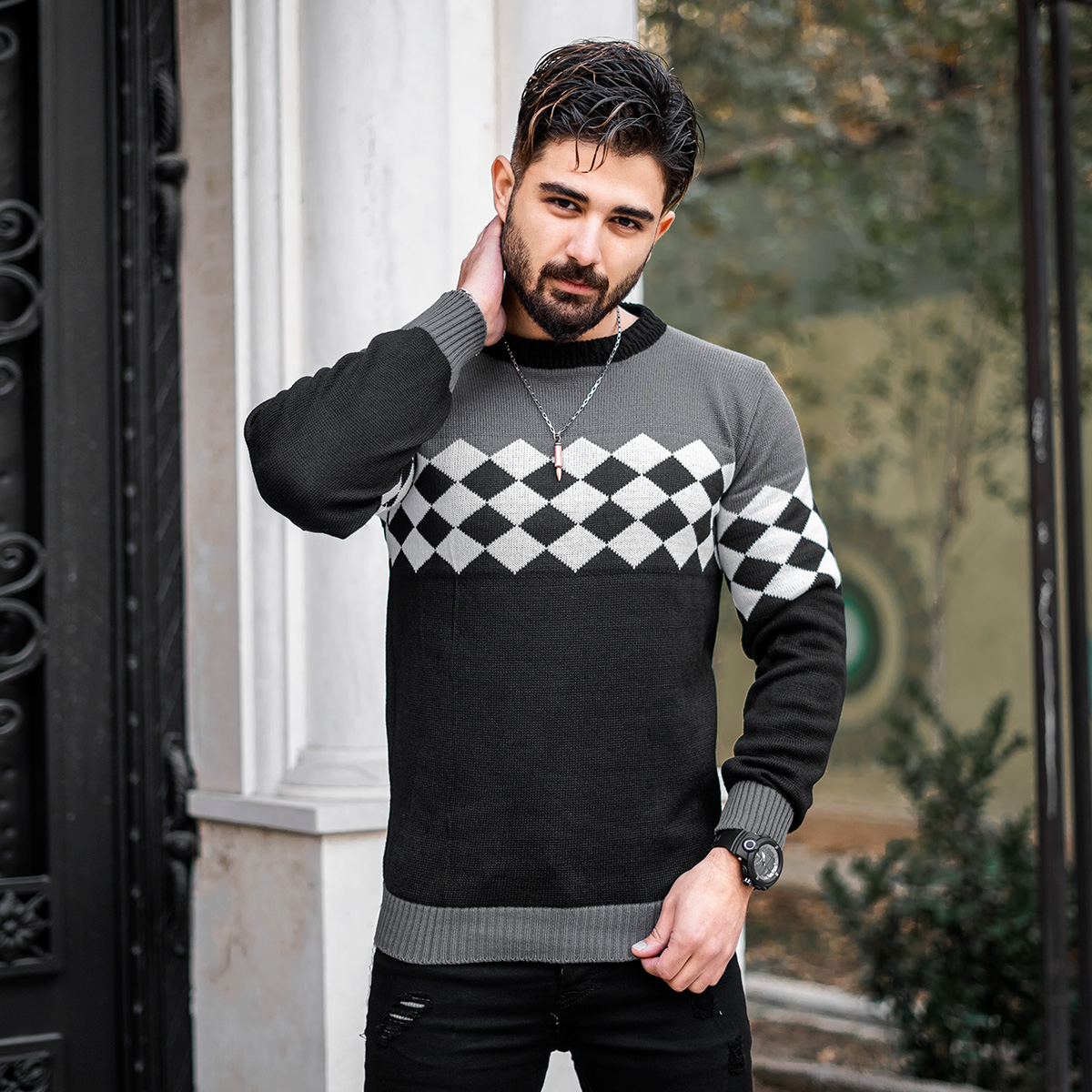 پلیور ژاکارد مشکی سفید مردانه مدل Mehrdad