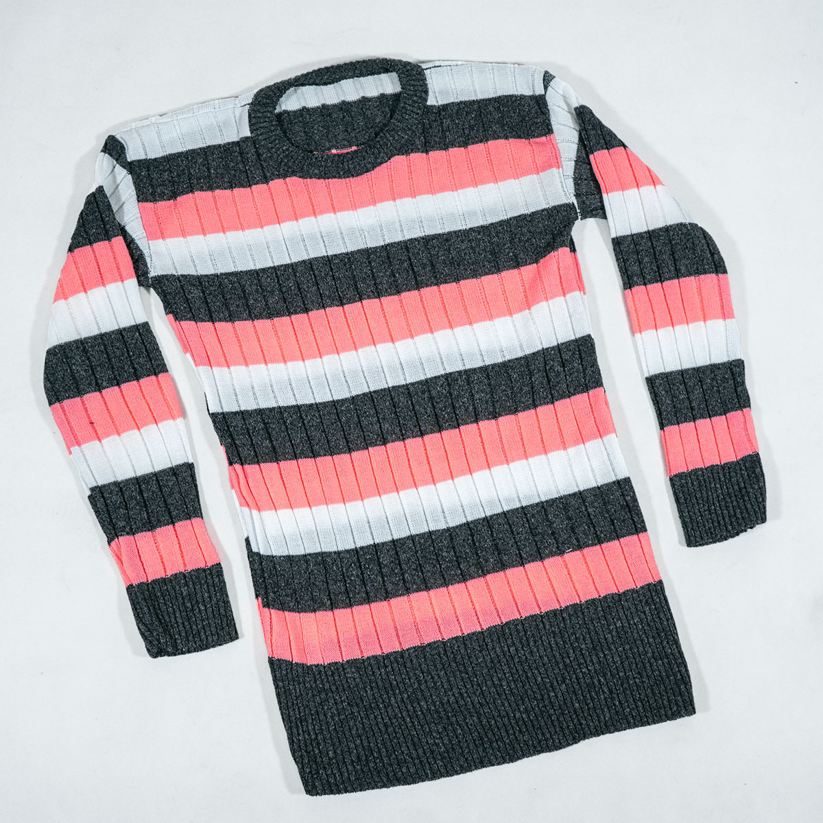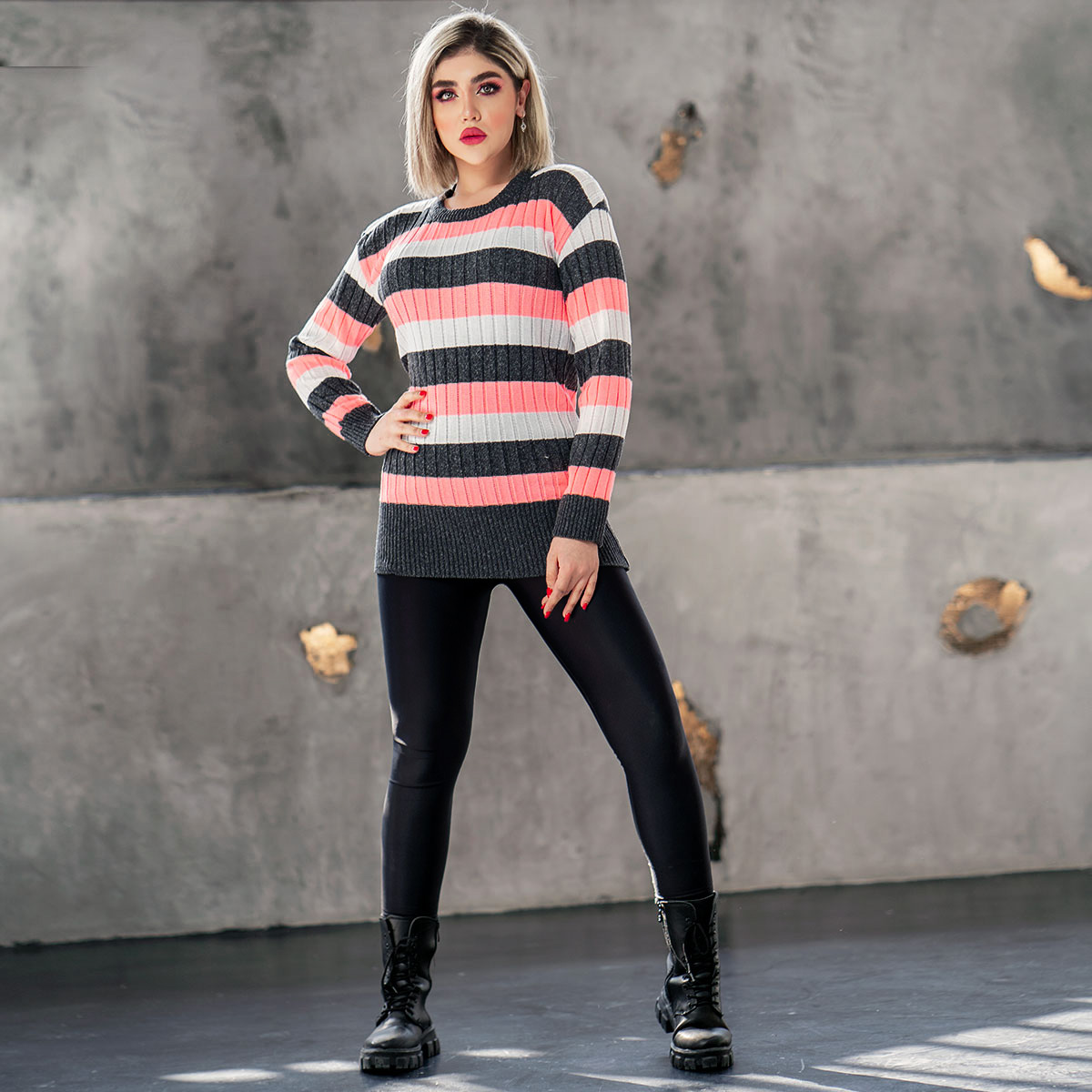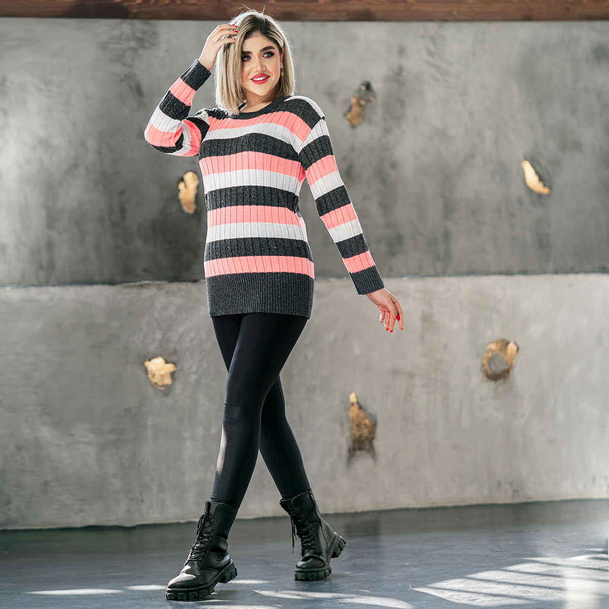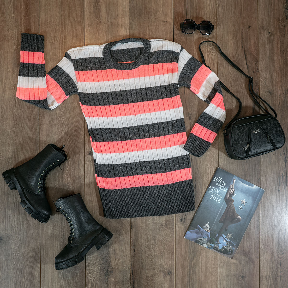 تونیک بافت زنانه راه راه مشکی صورتی مدل kareno
