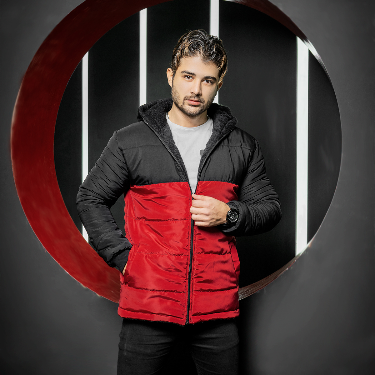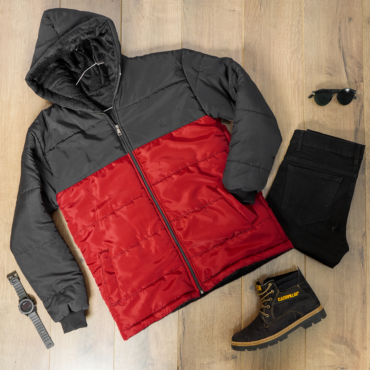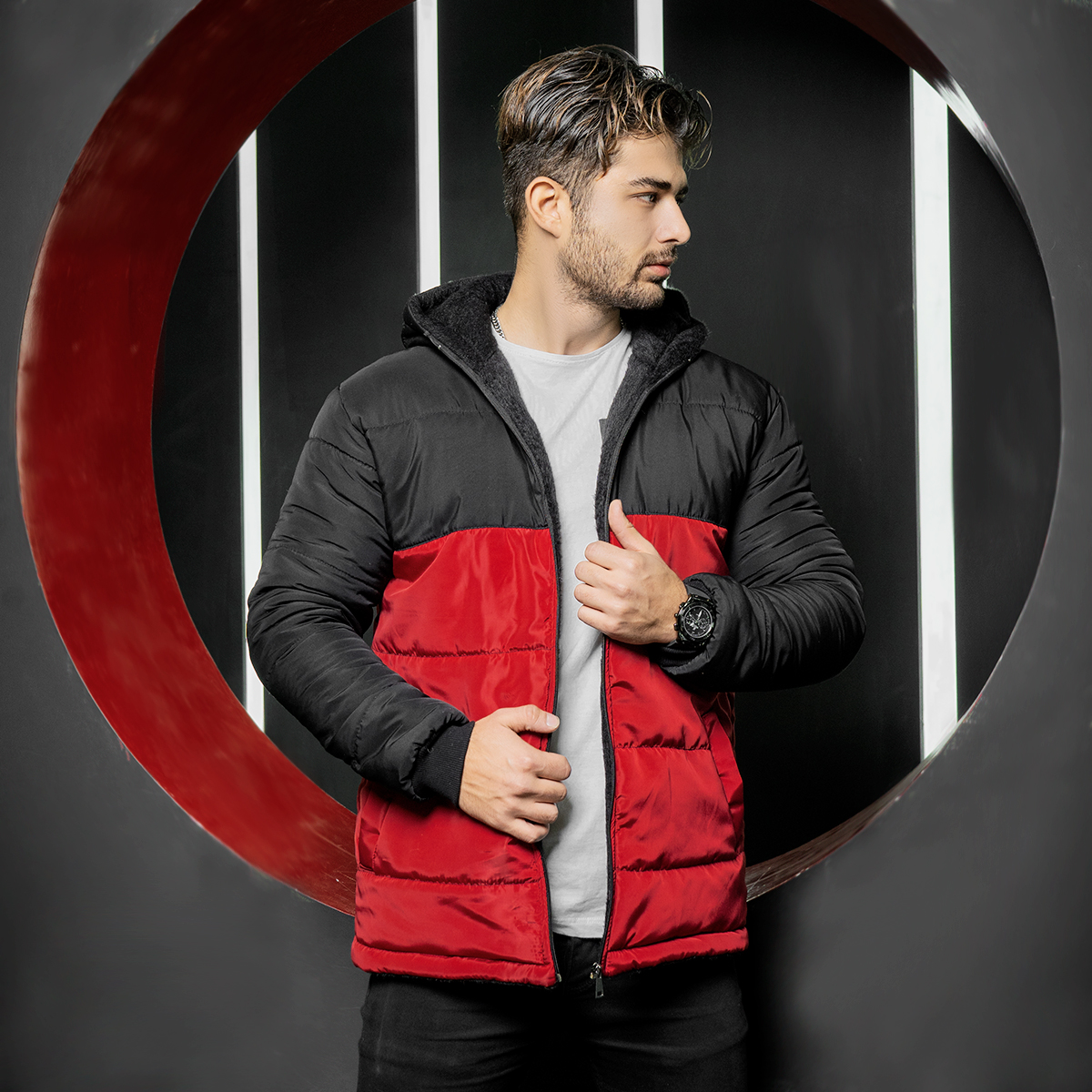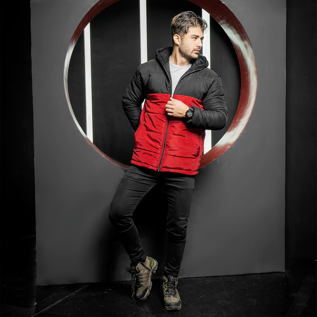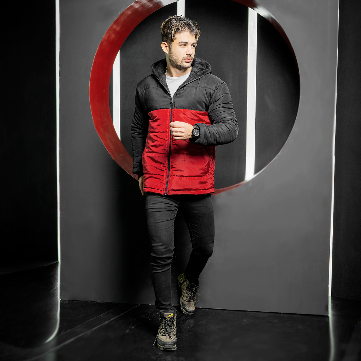 کاپشن مردانه مشکی قرمز مدل Dani