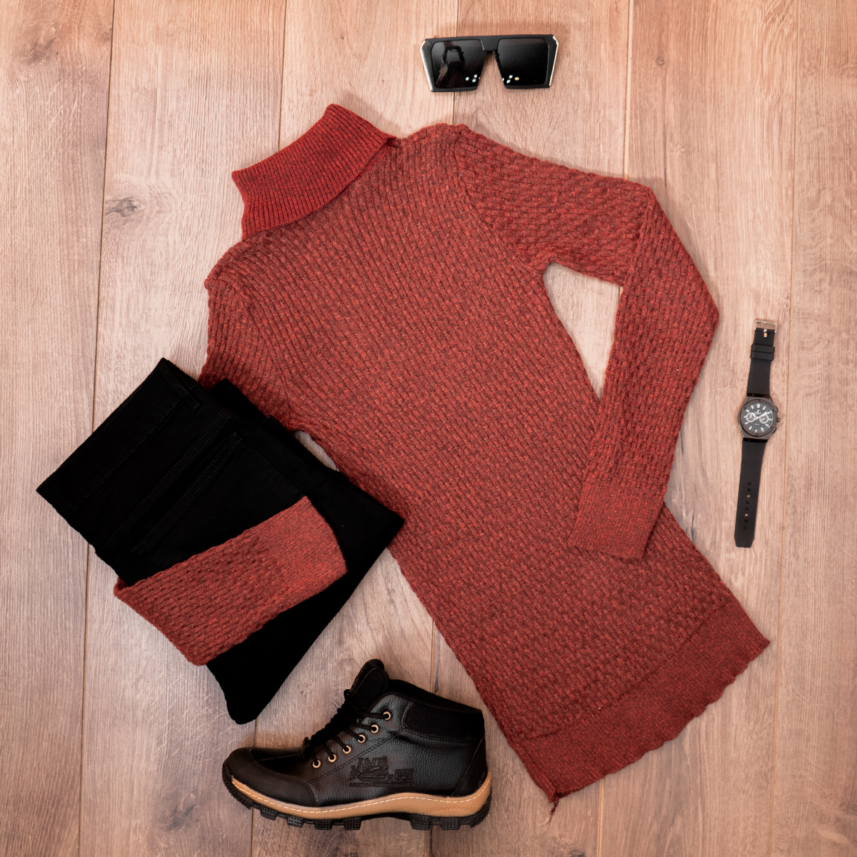 پلیور یقه اسکی مردانه زرشکی مدل Oktav