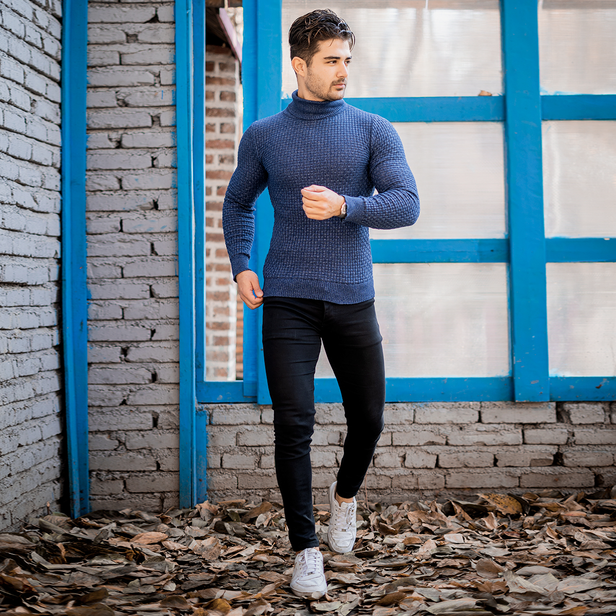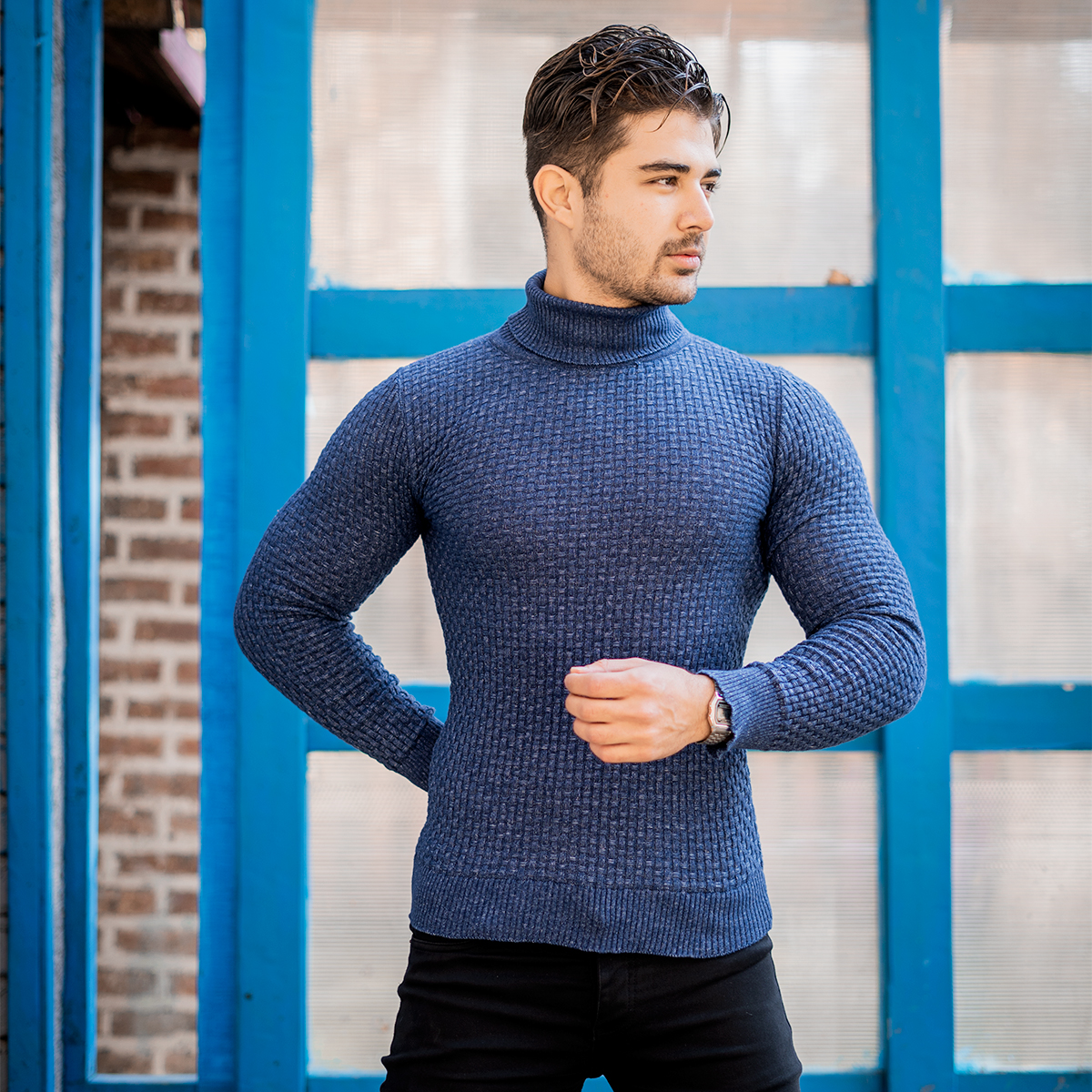 پلیور یقه اسکی مردانه آبی نفتی مدل Oktav