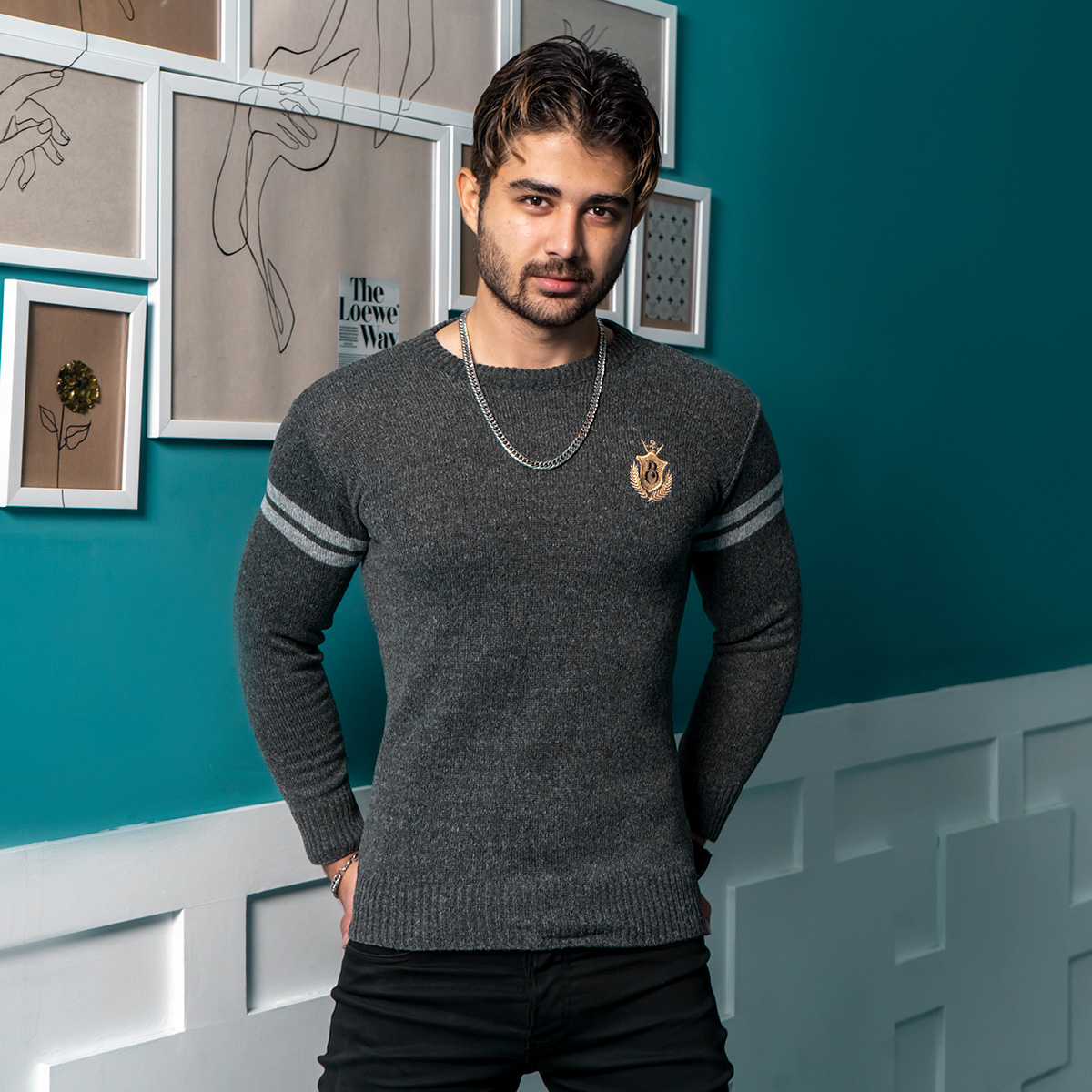 پلیور مردانه ذغالی مدل Akar