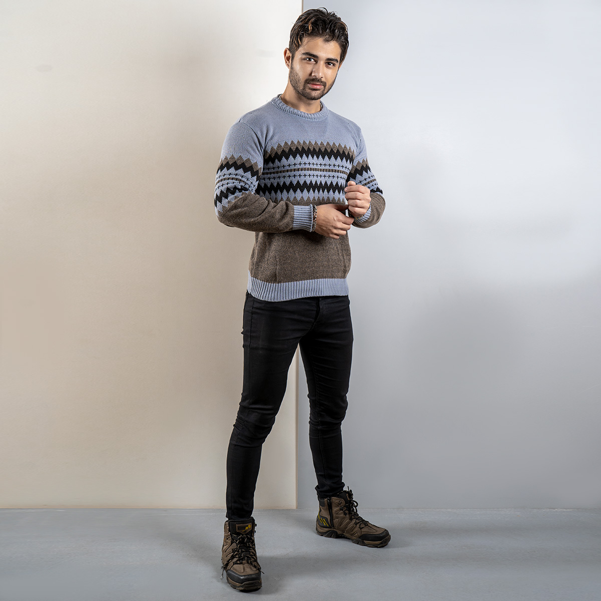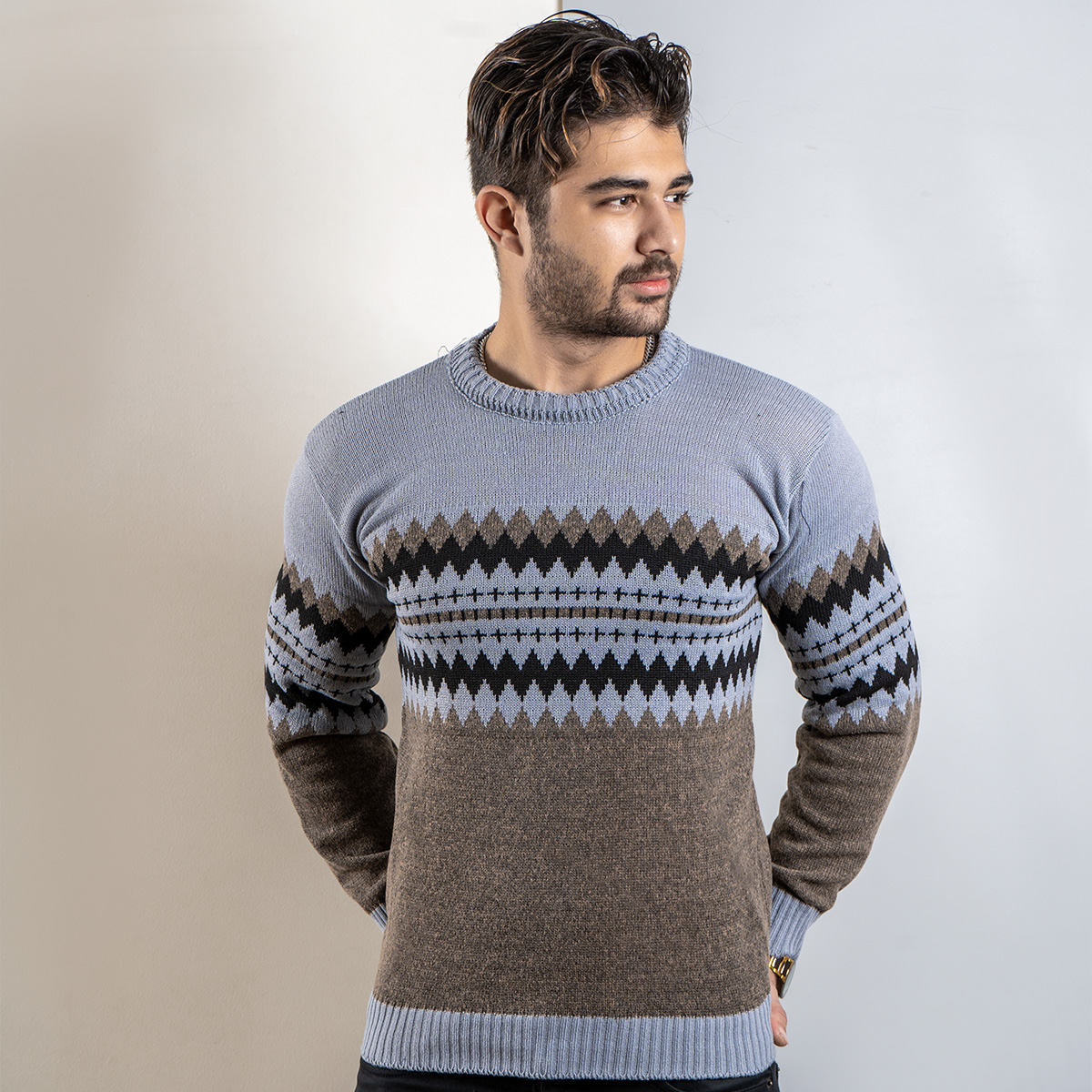 پلیور ژاکارد طوسی قهوه‌ای (T)مدل aroni