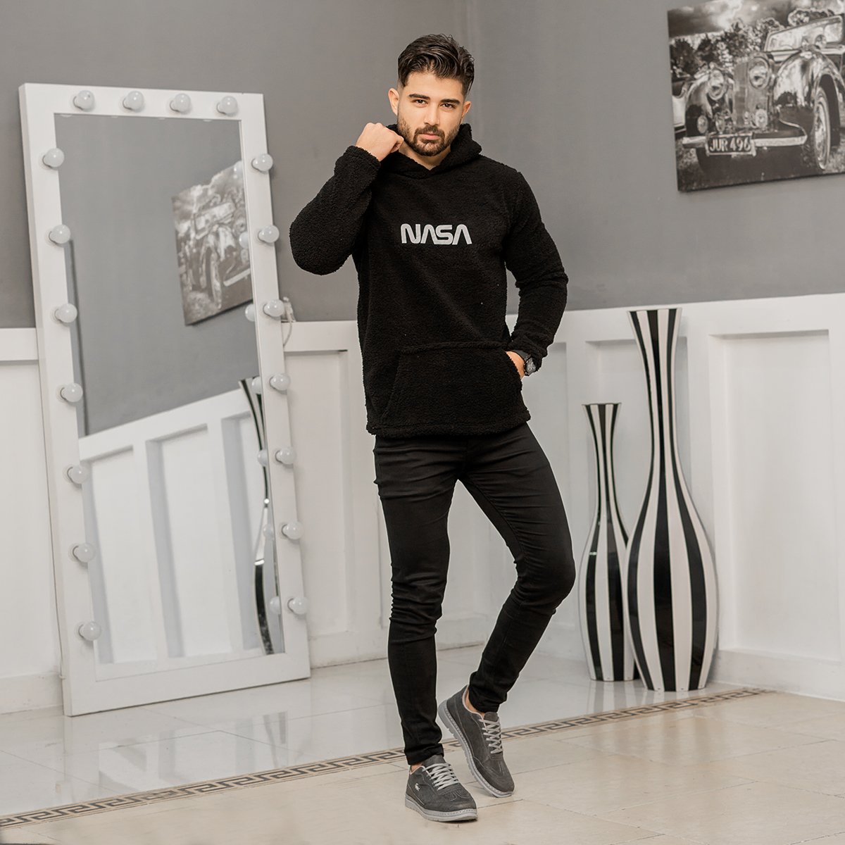 جنس این هودی از پارچه ای بسیار نرم ، لطیف و حوله ای می باشد که خاصیت کشسانی ندارد . کاملا مناسب برای فصل سرد سال است و جز کارهای گرم محسوب می شود . تنخور این کار کاملا آزاد ، گشاد و اسپرت می باشد .