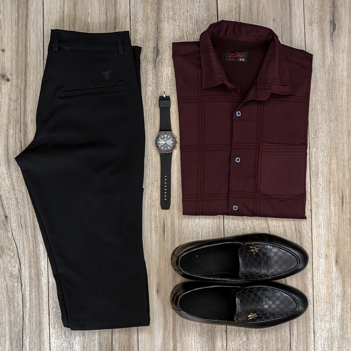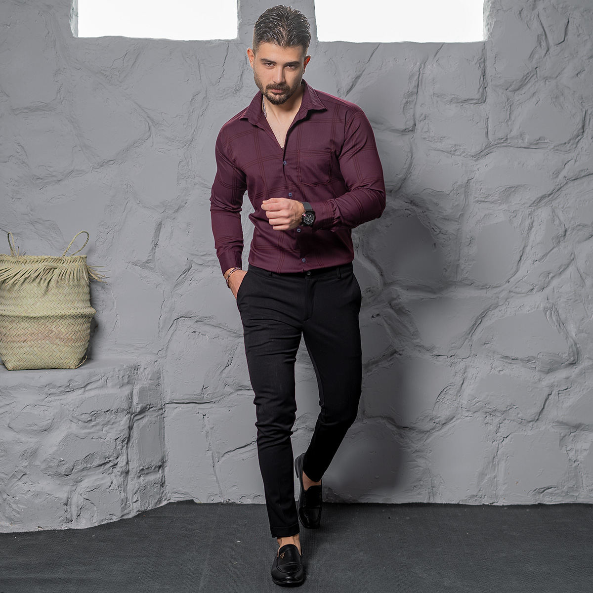 پیراهن مردانه چهارخونه زرشکی مدل Ravin