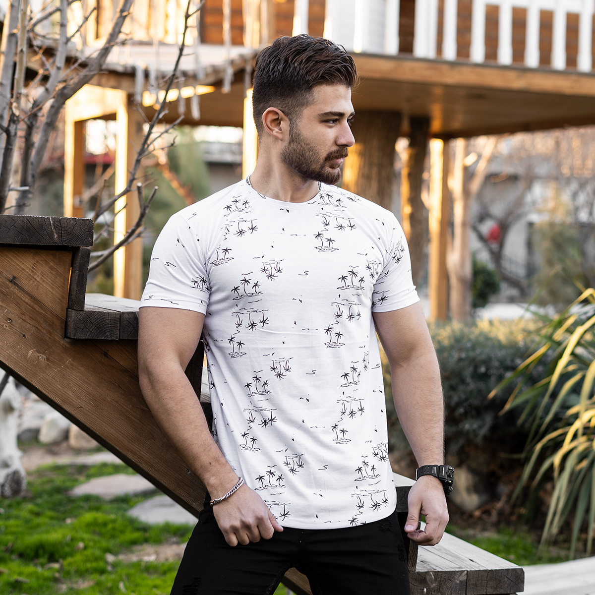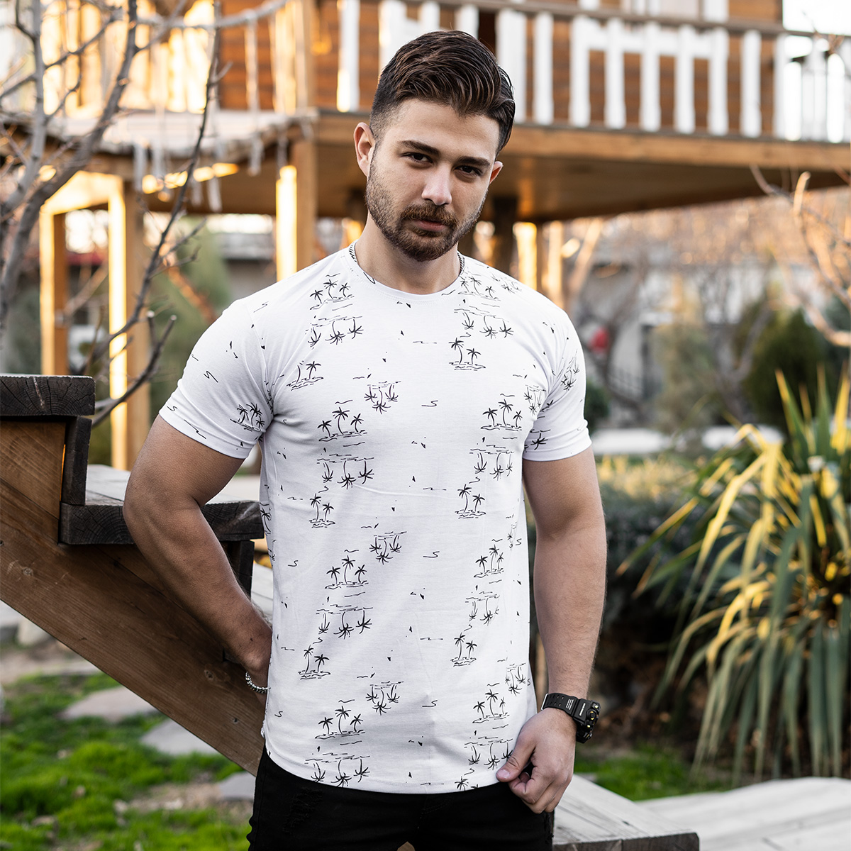 تیشرت هاوایی سفید مردانه مدل E99