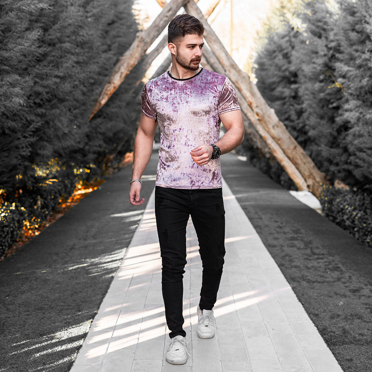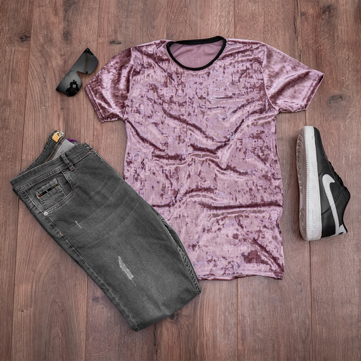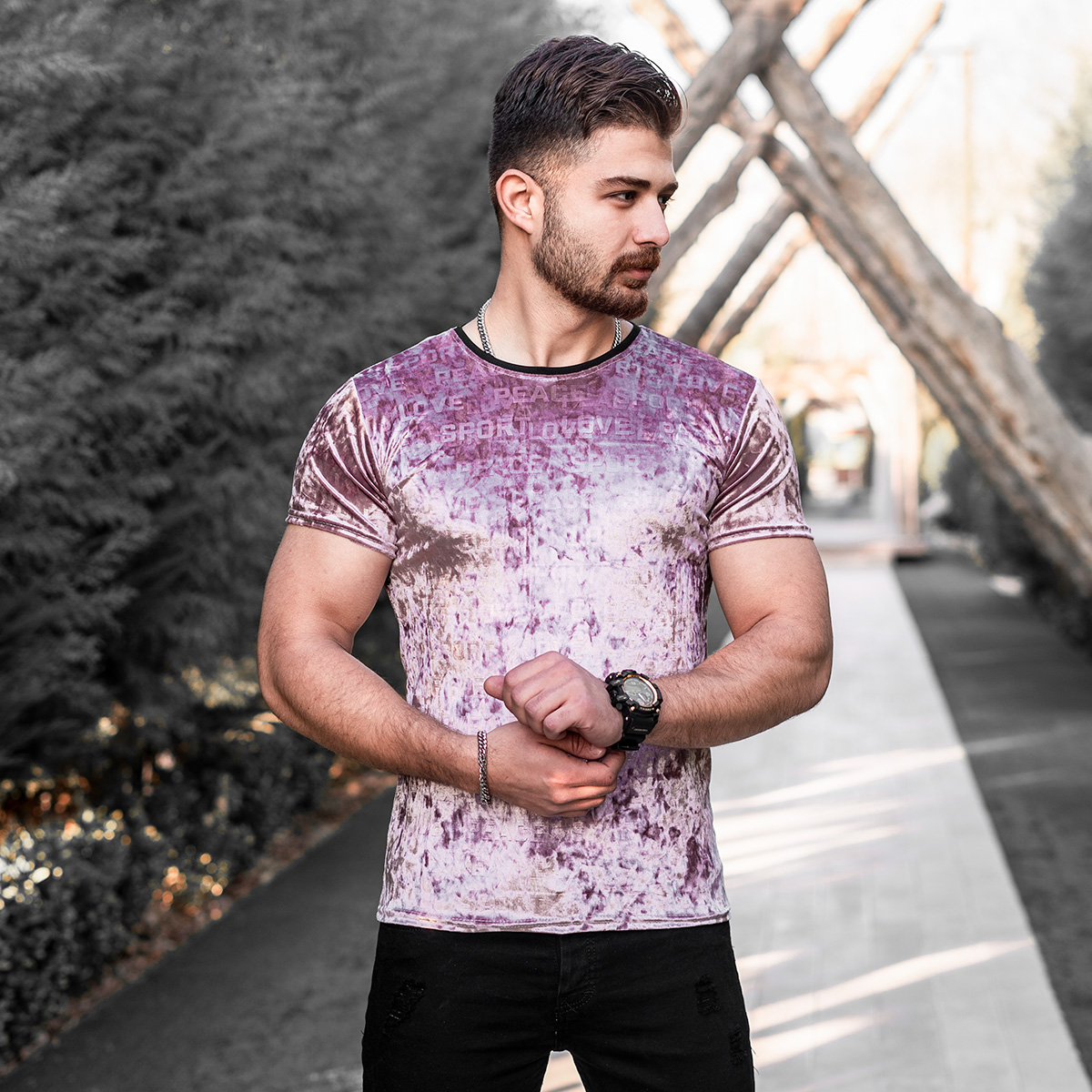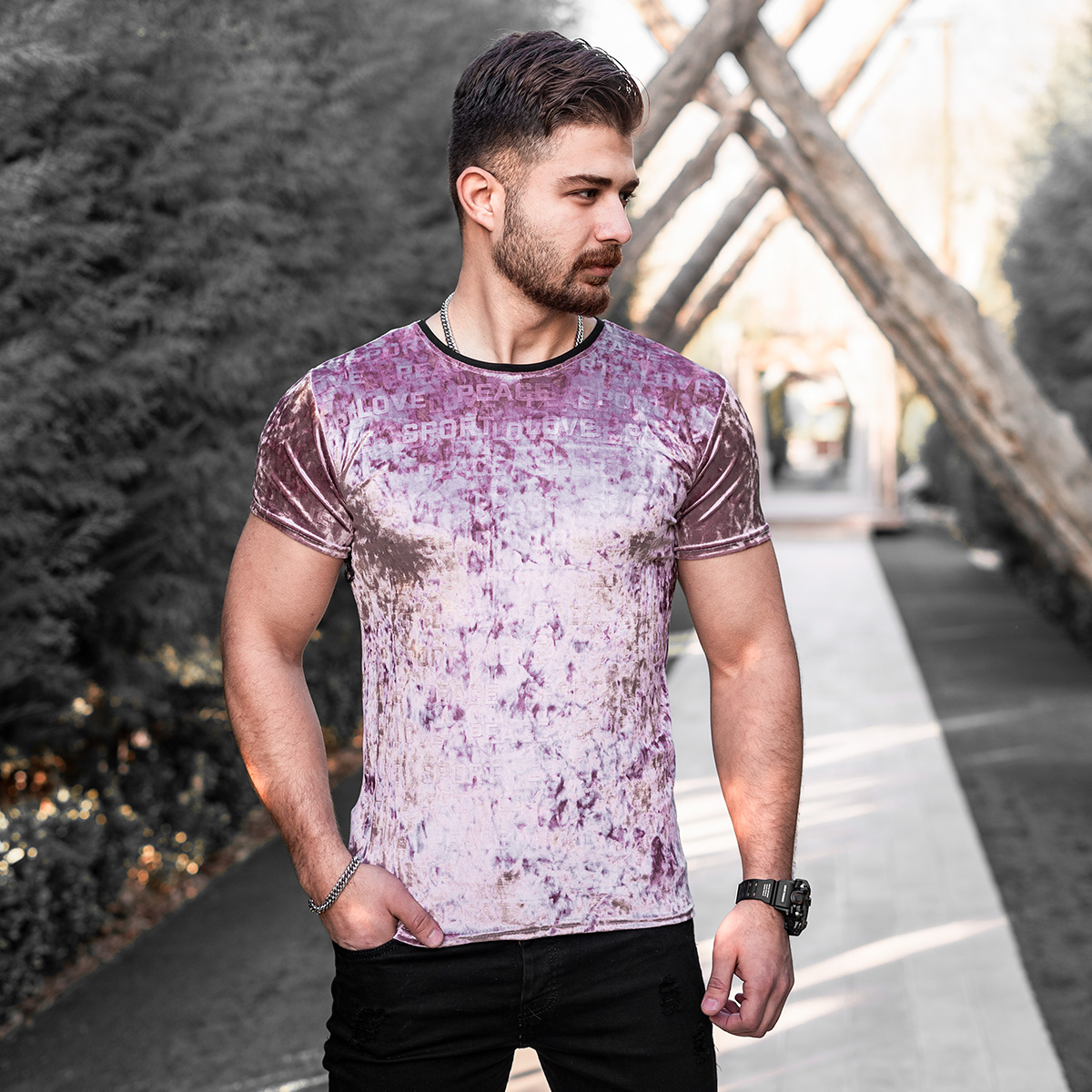 تیشرت مخمل صورتی مردانه مدل Tonis