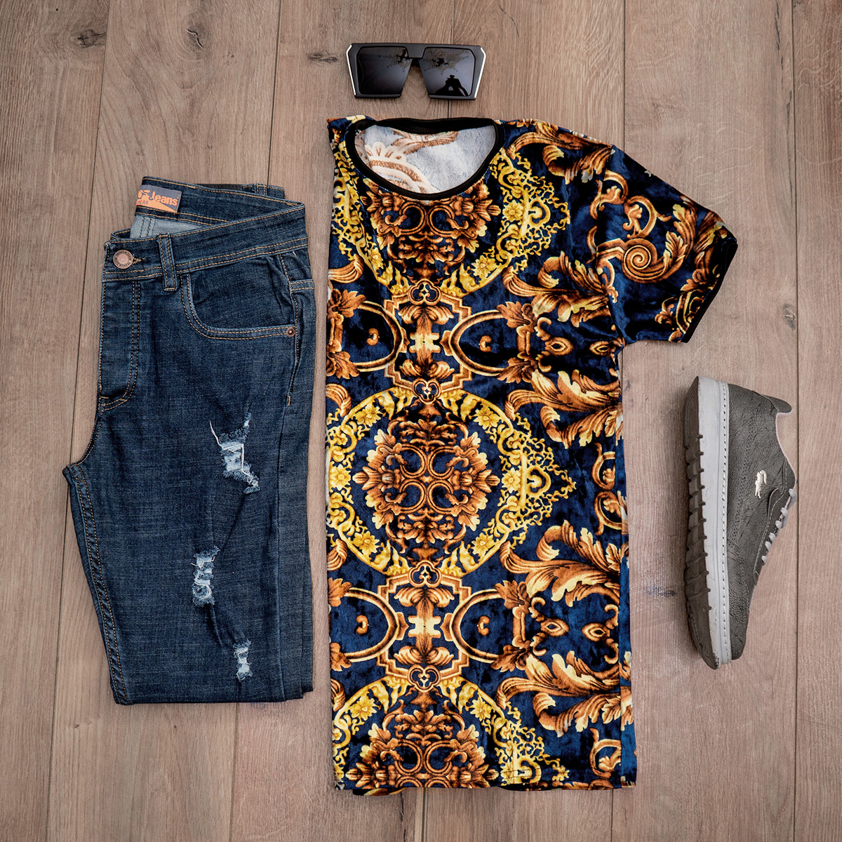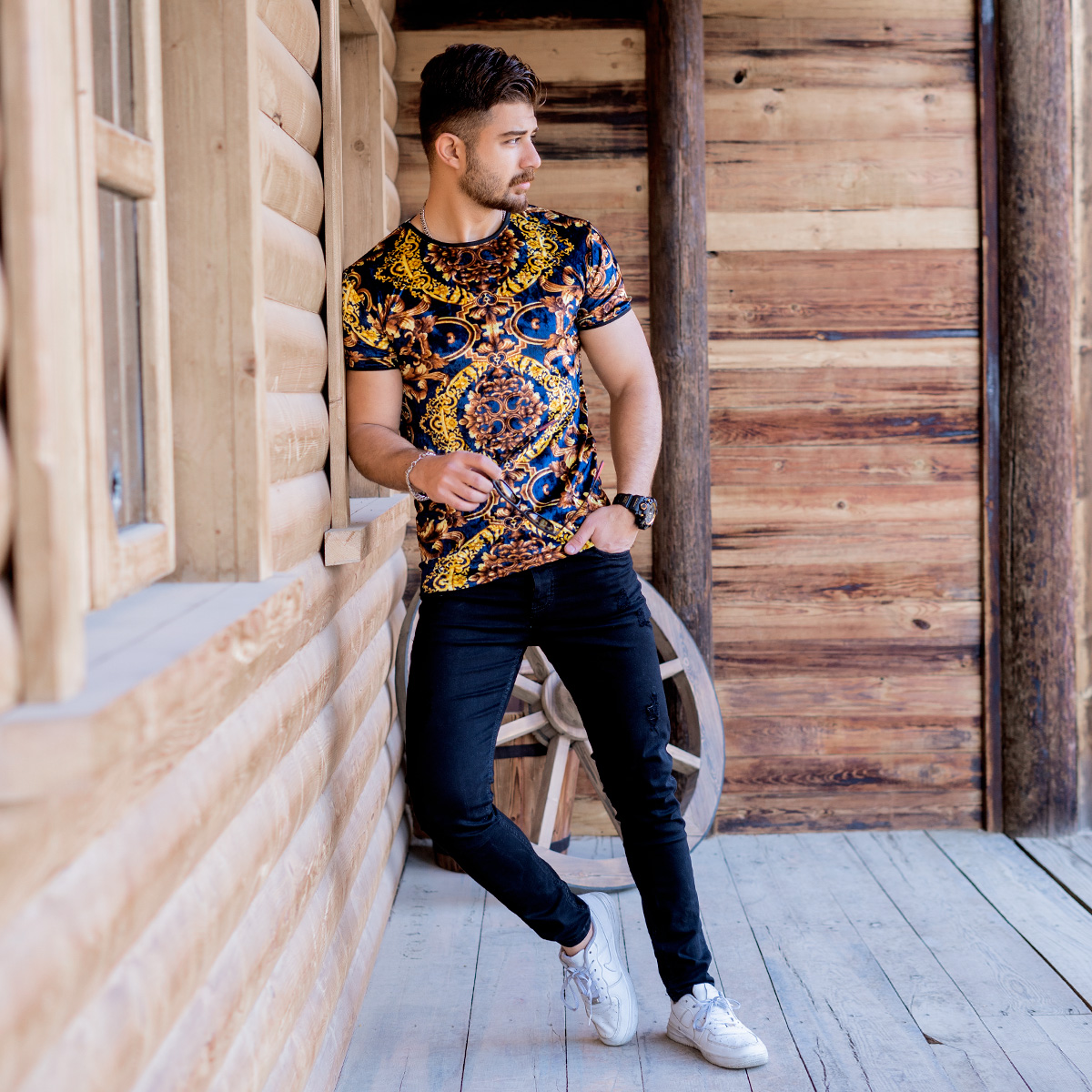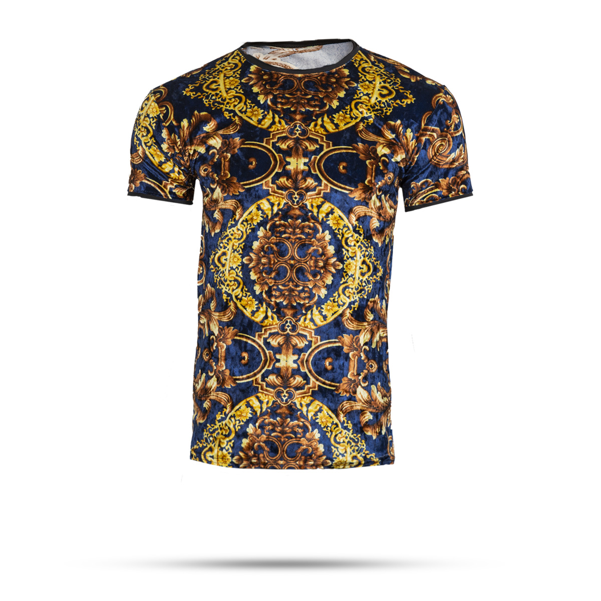 تیشرت مخمل آبی طرحدار مردانه مدل Avin