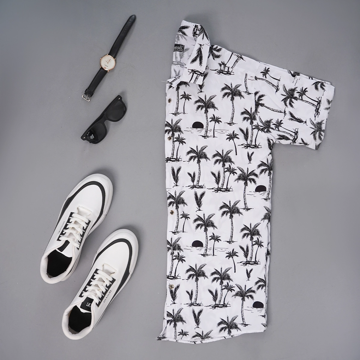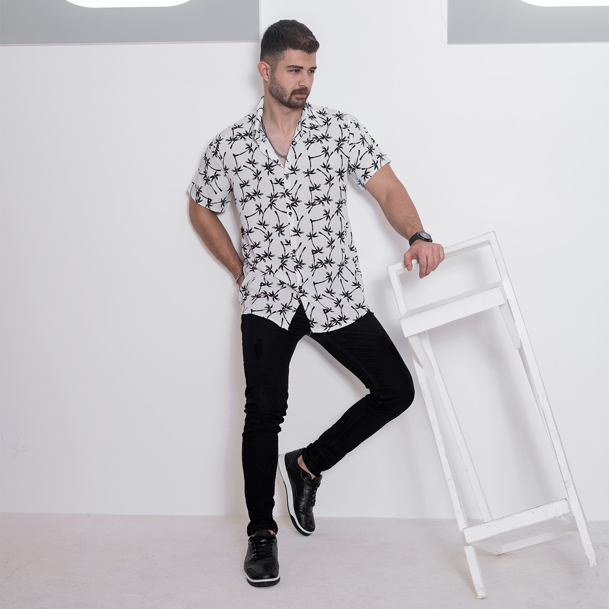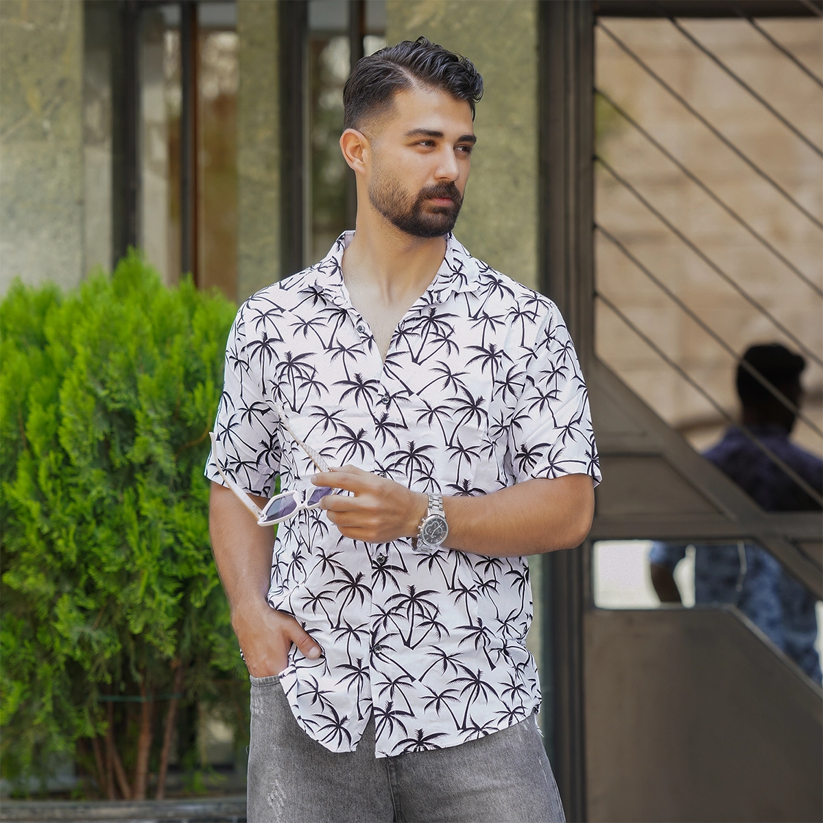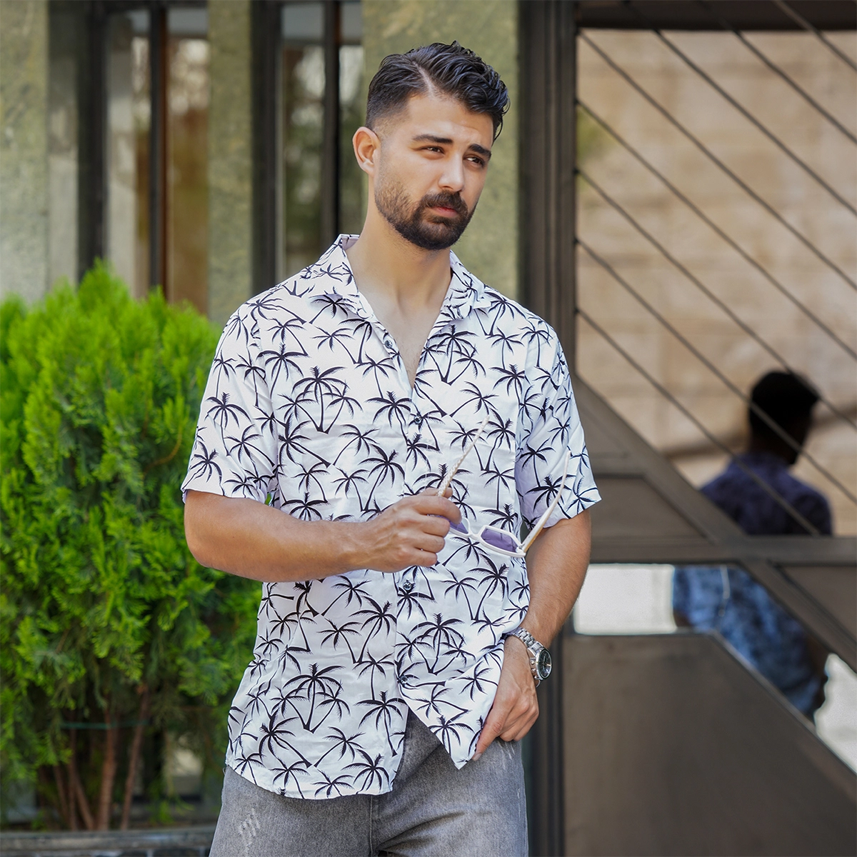 پیراهن هاوایی مردانه سفید مدل Nanti