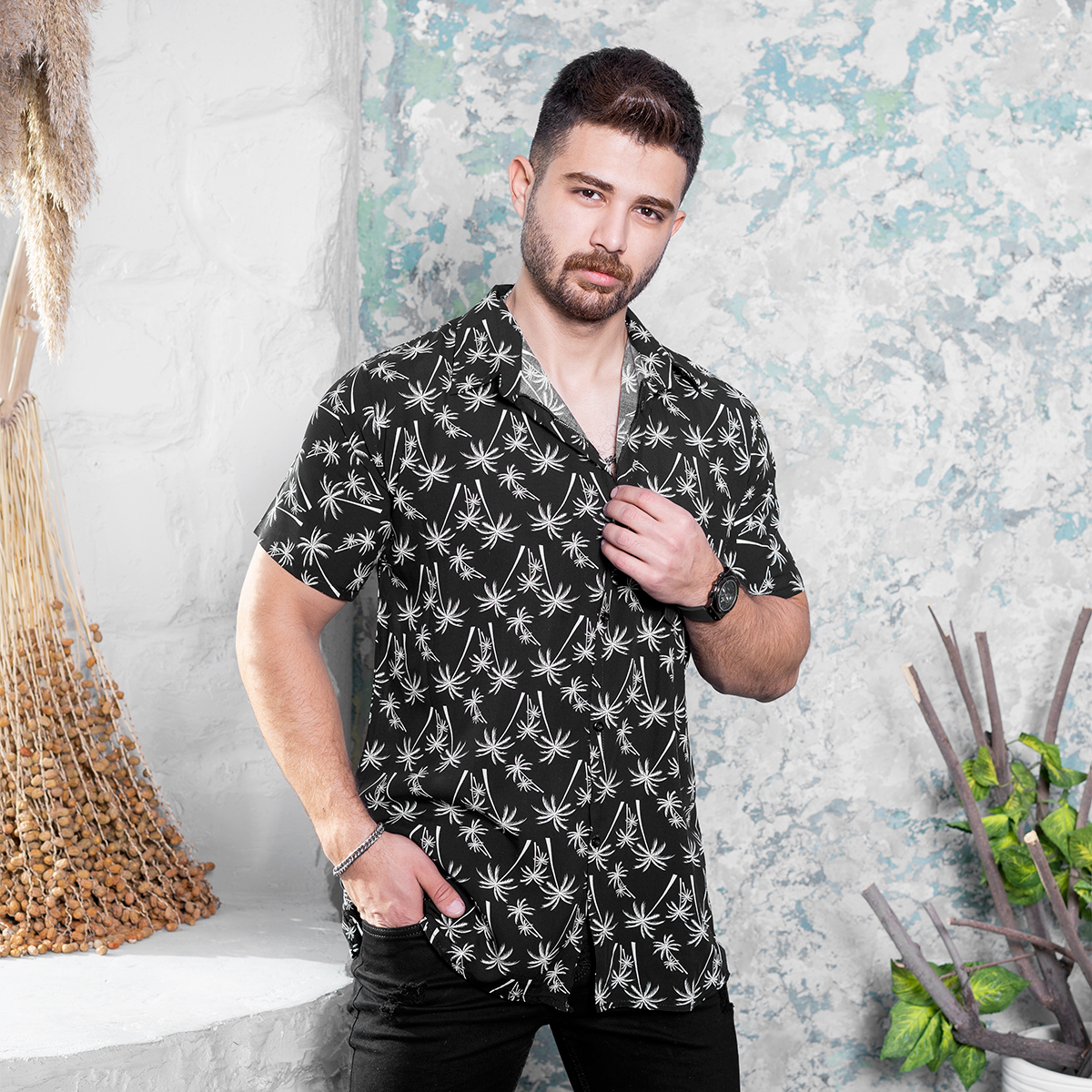 پیراهن هاوایی مردانه مشکی مدل Nanti