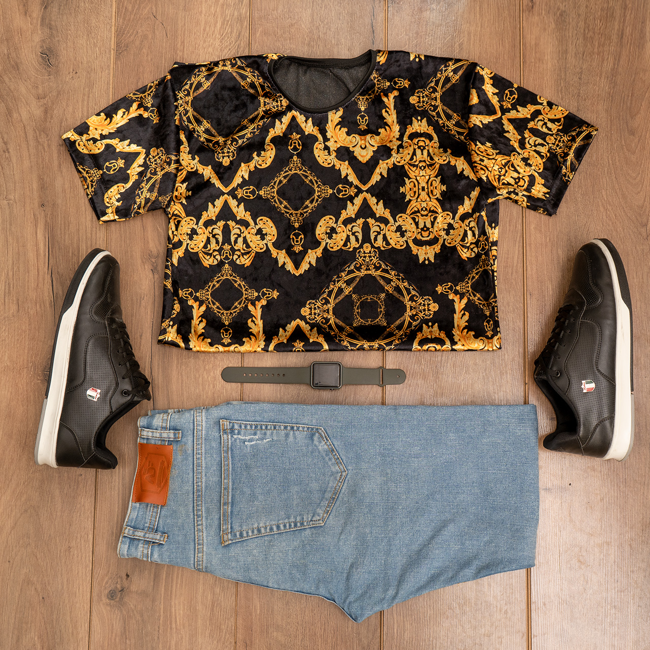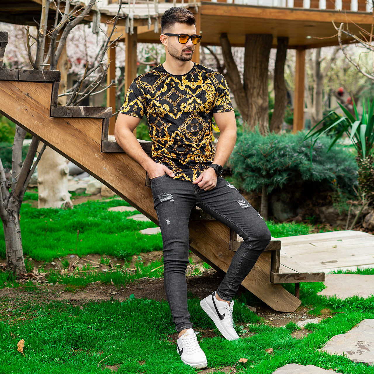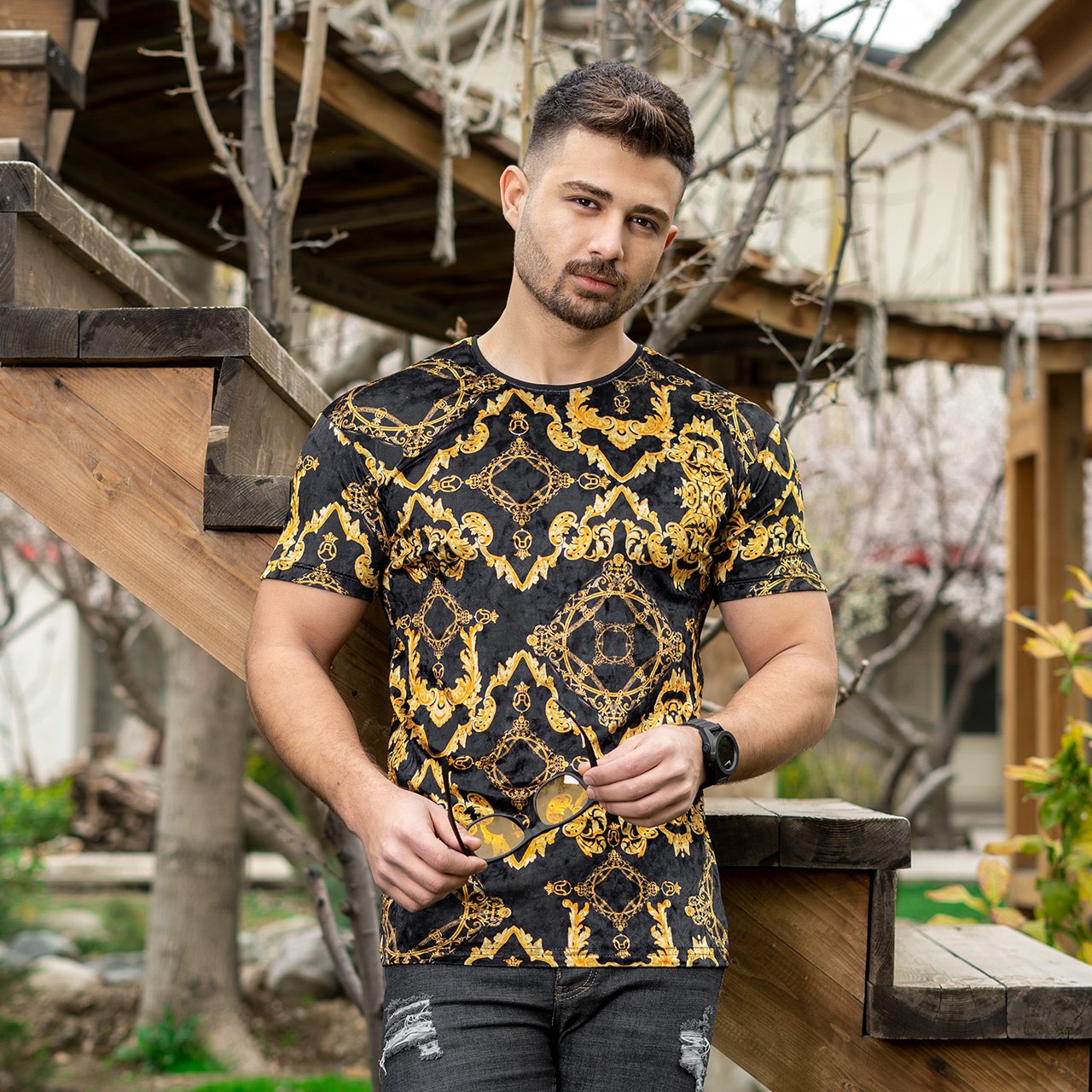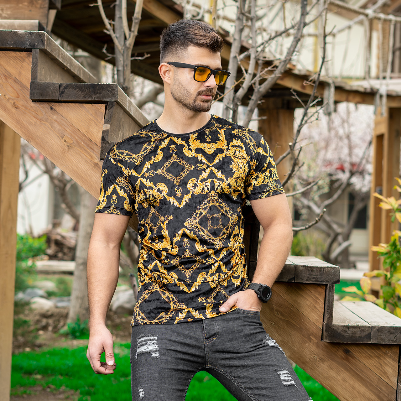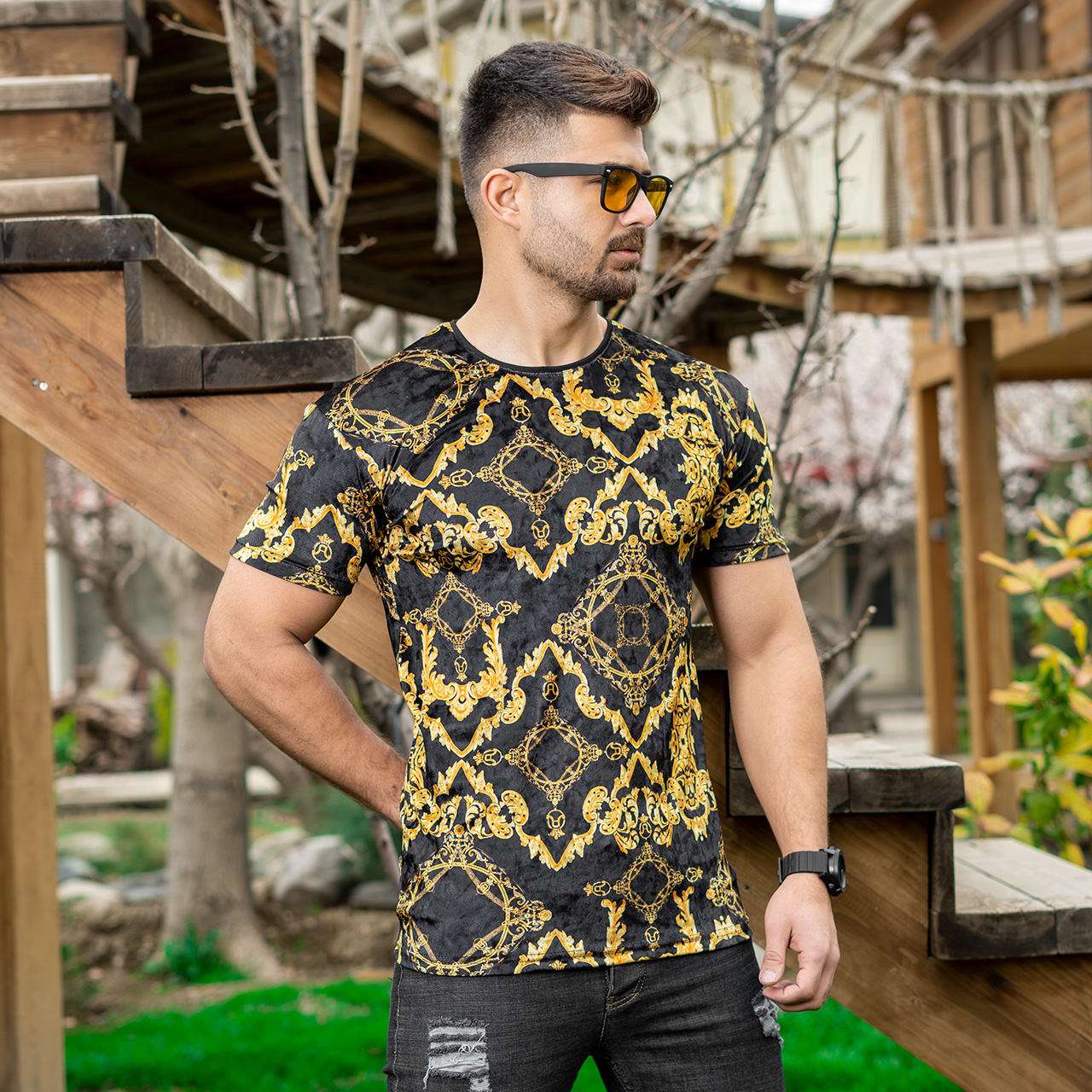 تیشرت مخمل مشکی طلایی مردانه مدل Jana