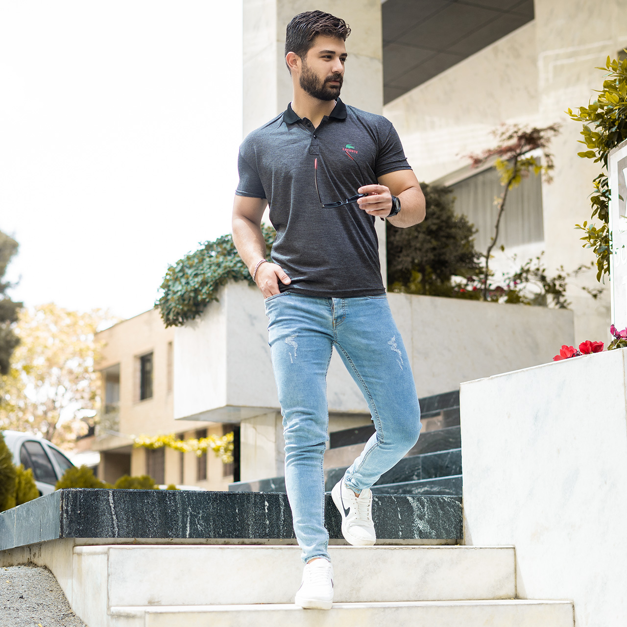 تیشرت مردانه ( مارک رندوم )ذغالی مدل kapi