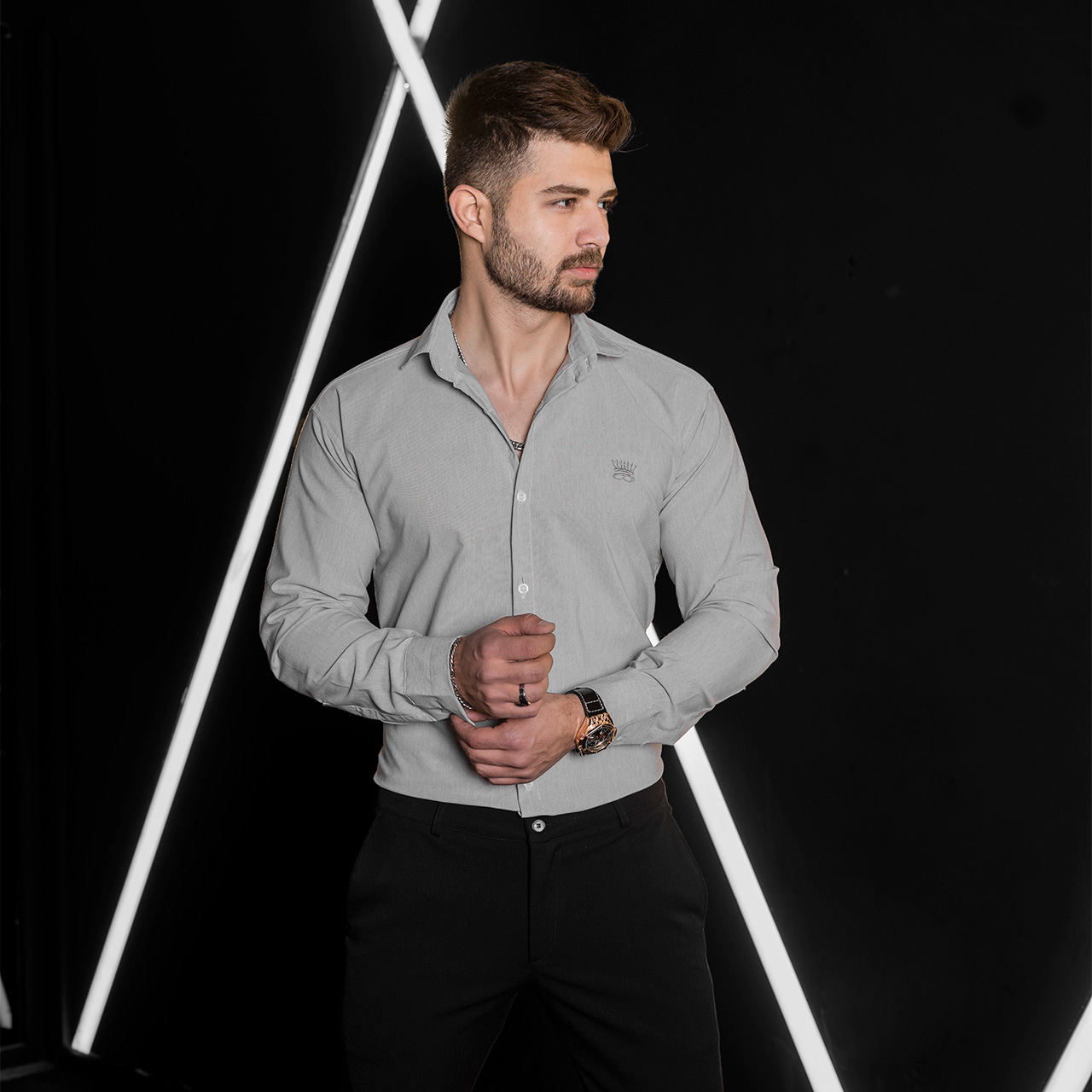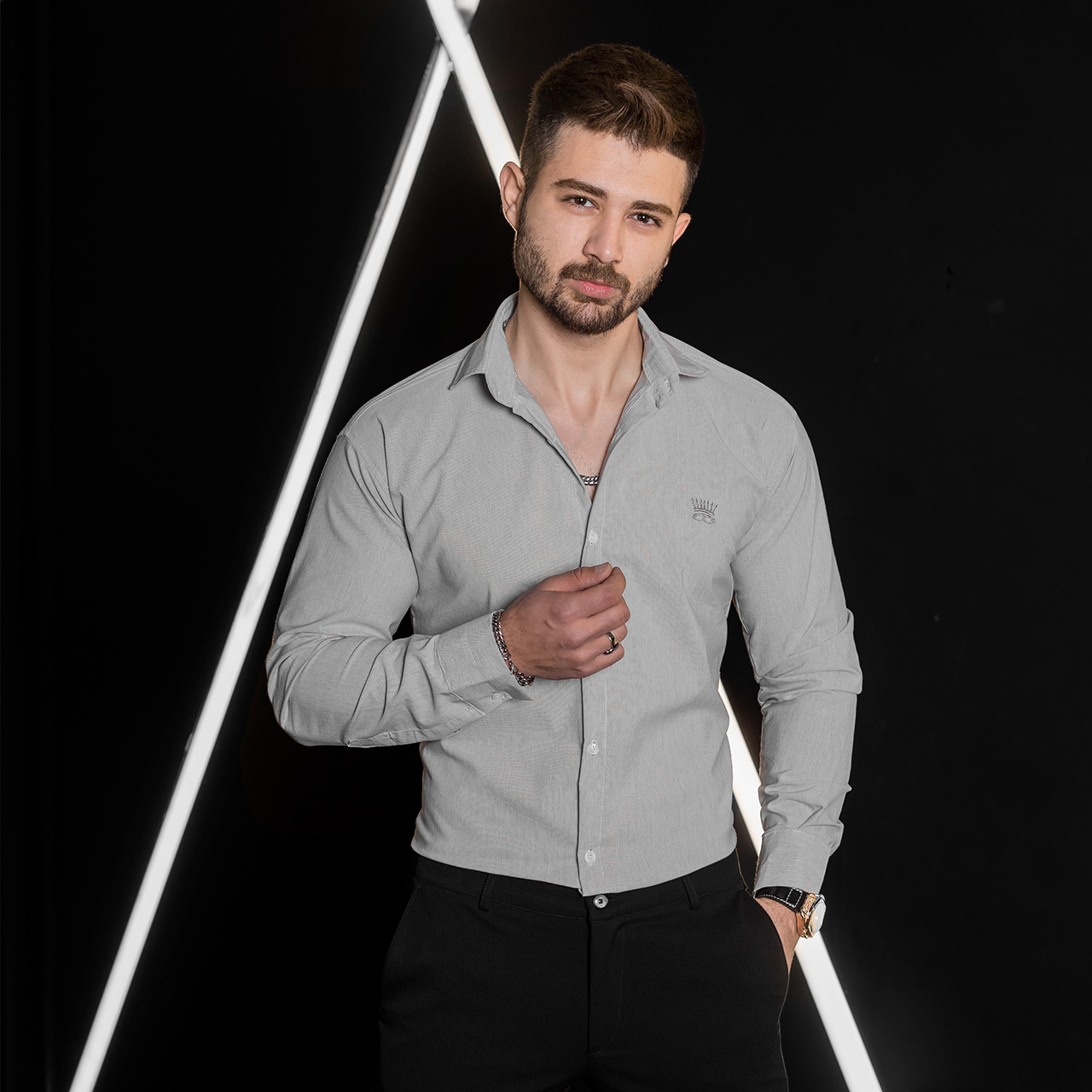 پیراهن مردانه طوسی روشن مدل pelin