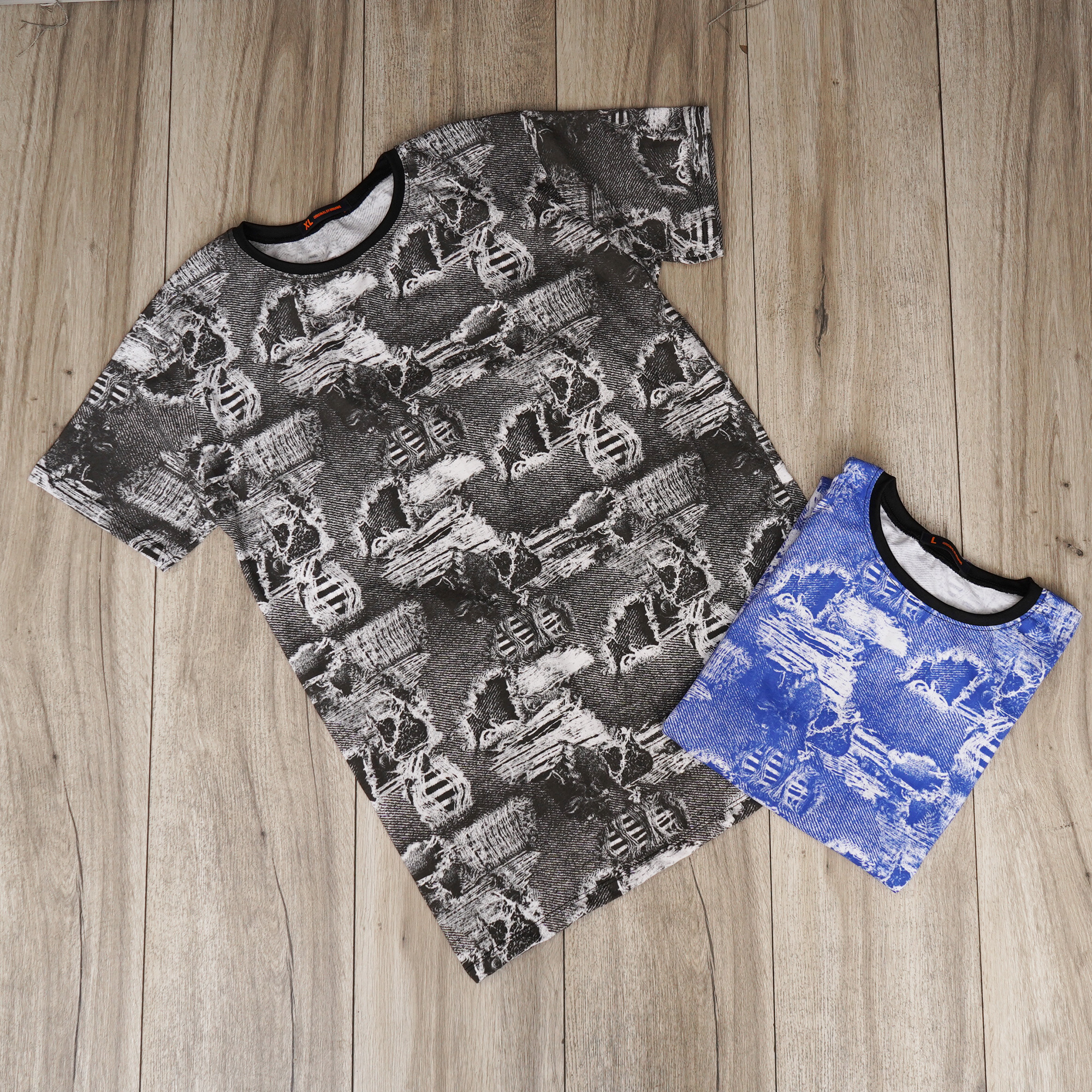 تیشرت طرحدار طوسی مردانه مدل TOTIX