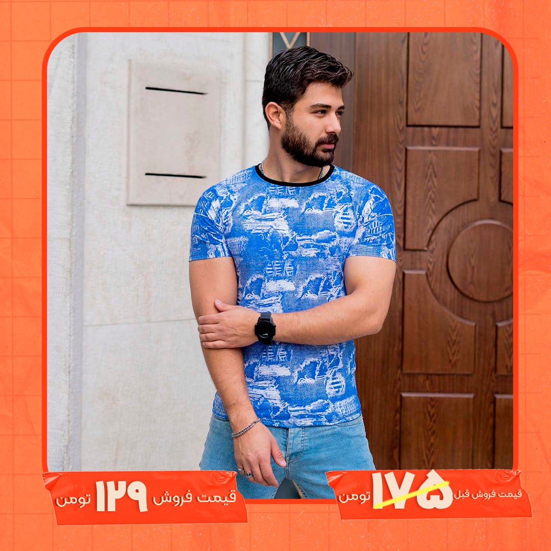 تیشرت طرحدار آبی مردانه مدل TOTIX
