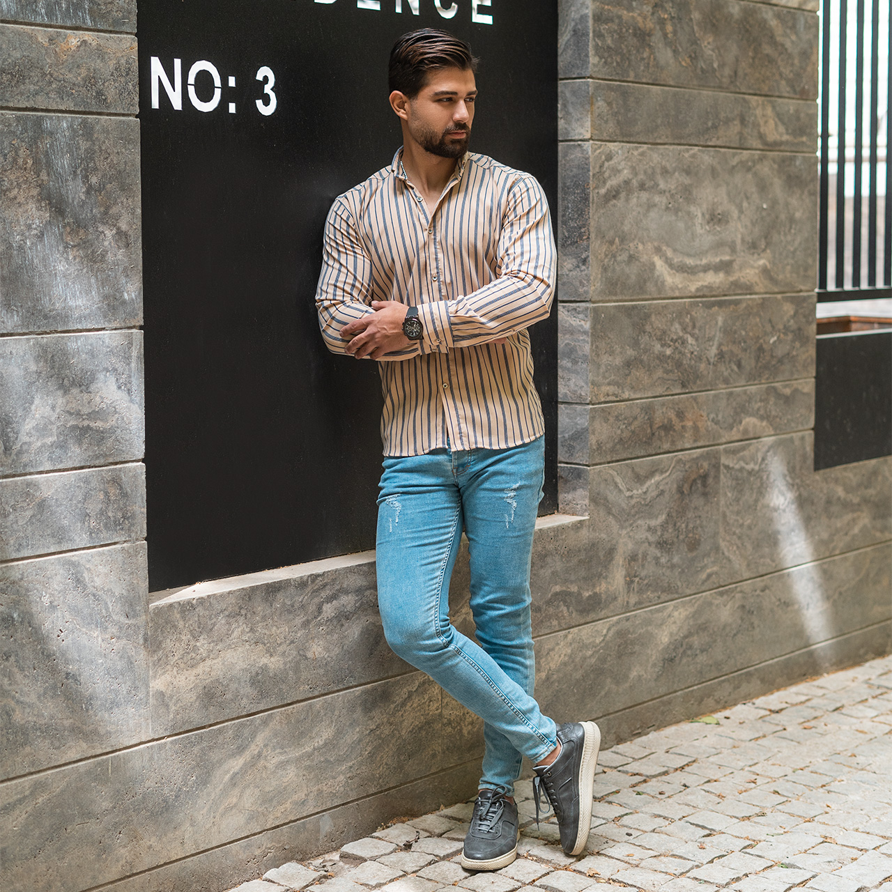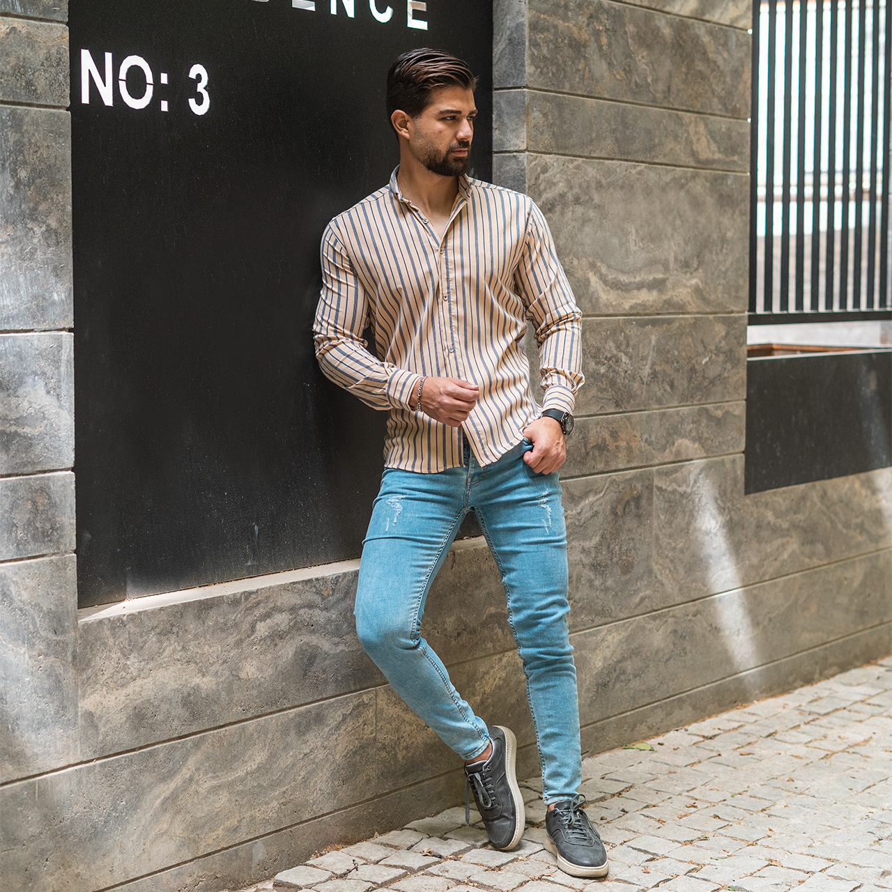 پیراهن مردانه (T)راه راه کرم مدل Ronino