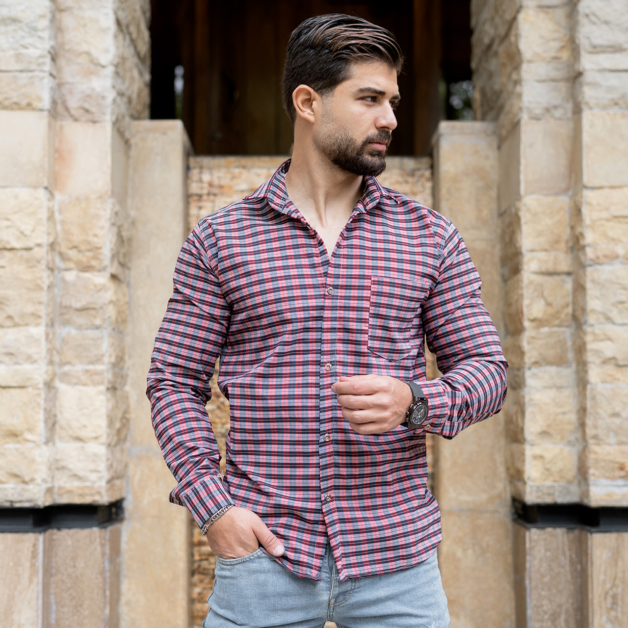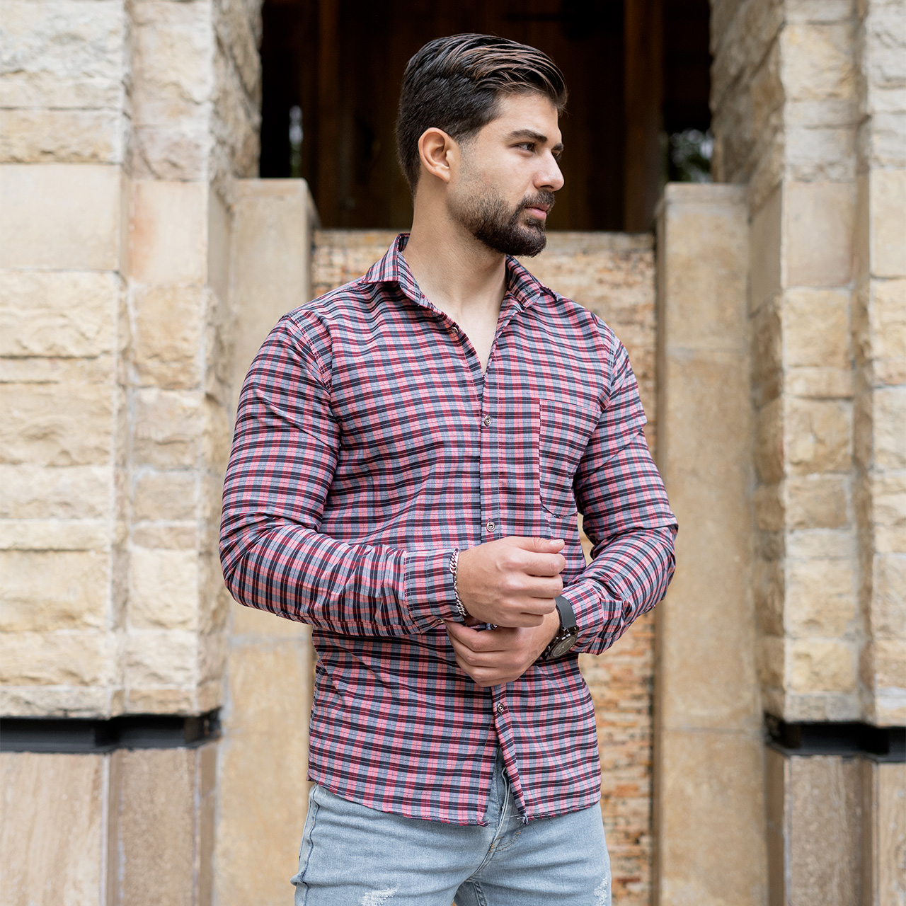 پیراهن مردانه(T) چهار خونه ریز قرمز مدل T78