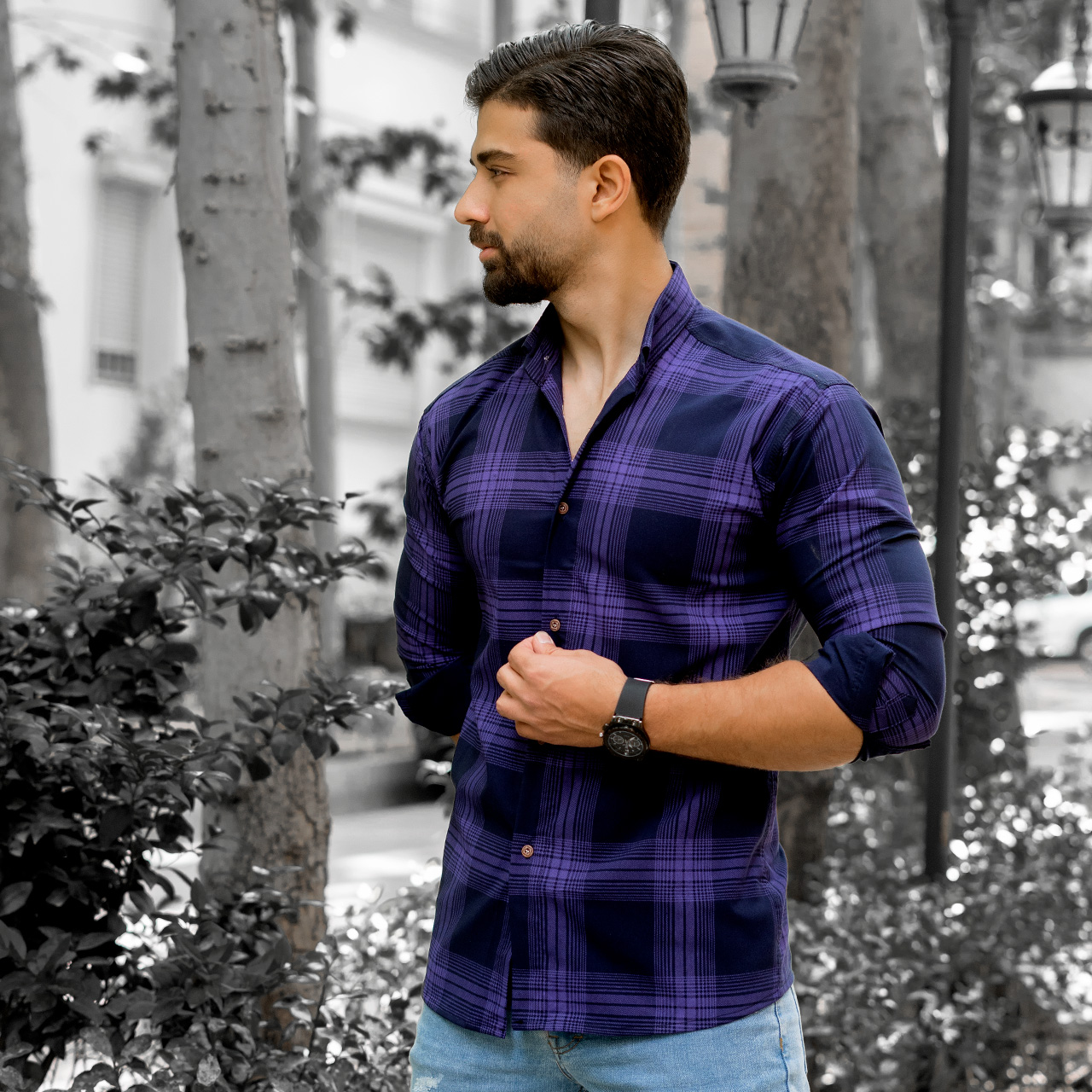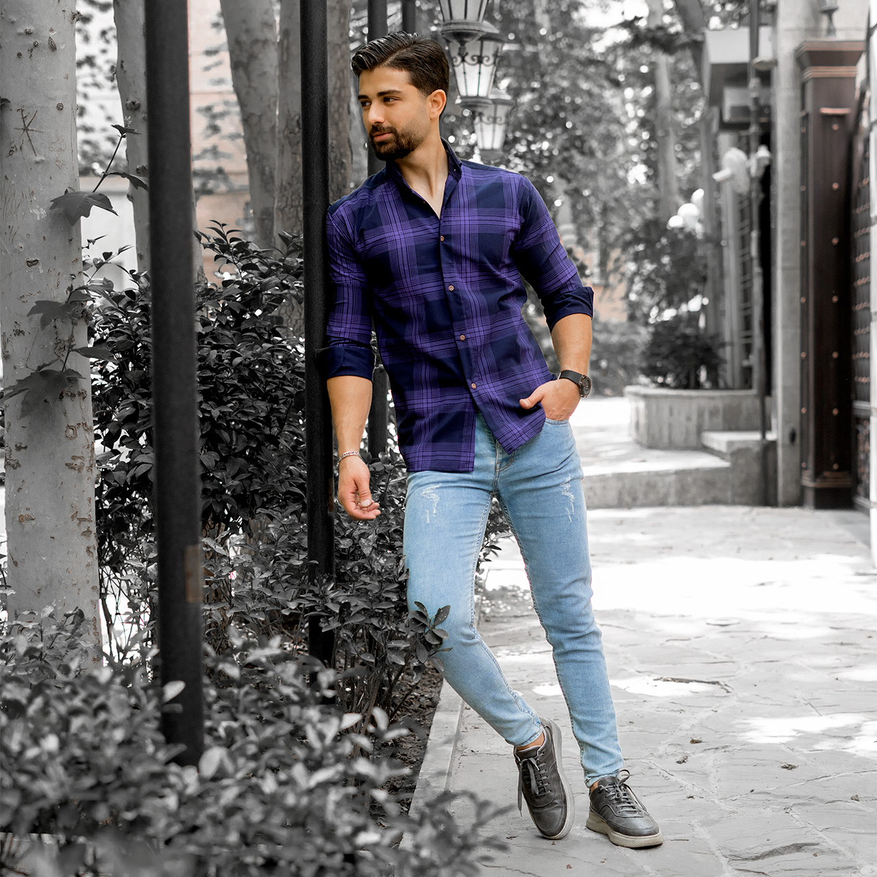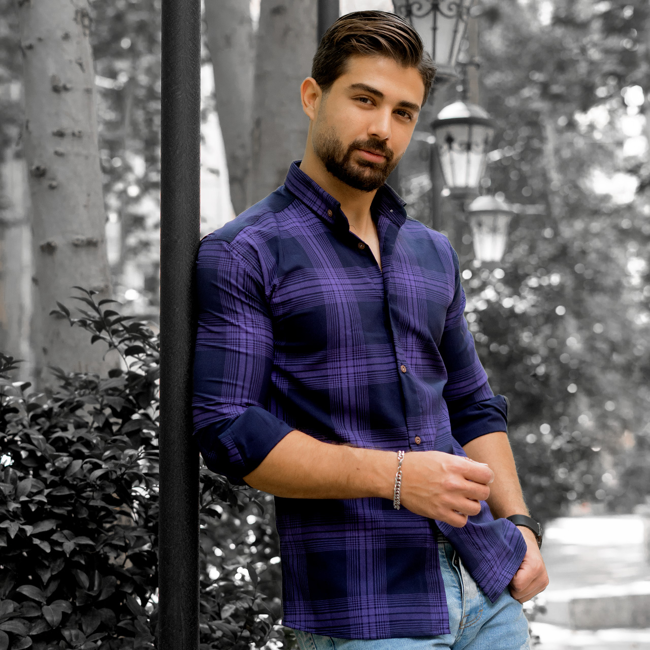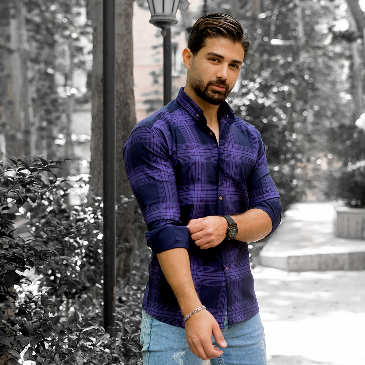 پیراهن مردانه(T) چهار خونه بنفش مدلzava