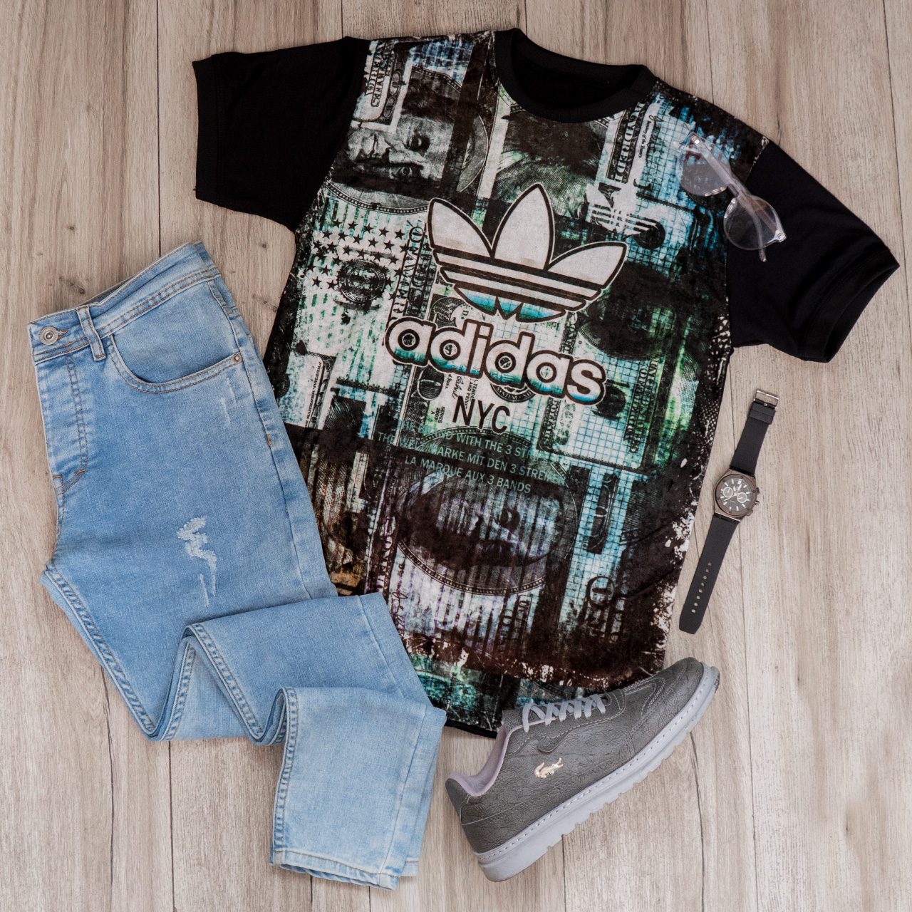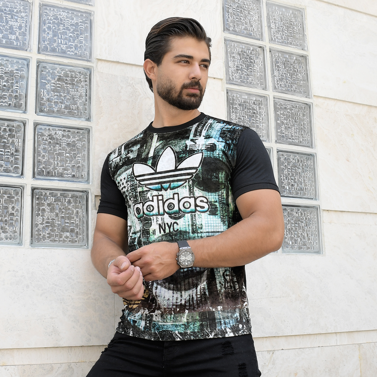 تیشرت مخمل مردانه آدیداس دلار سبز مدل L100