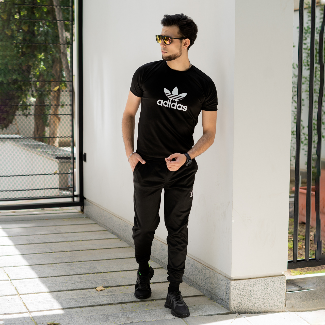 ست تیشرت شلوار آدیداس مشکی مردانه مدل Otava
