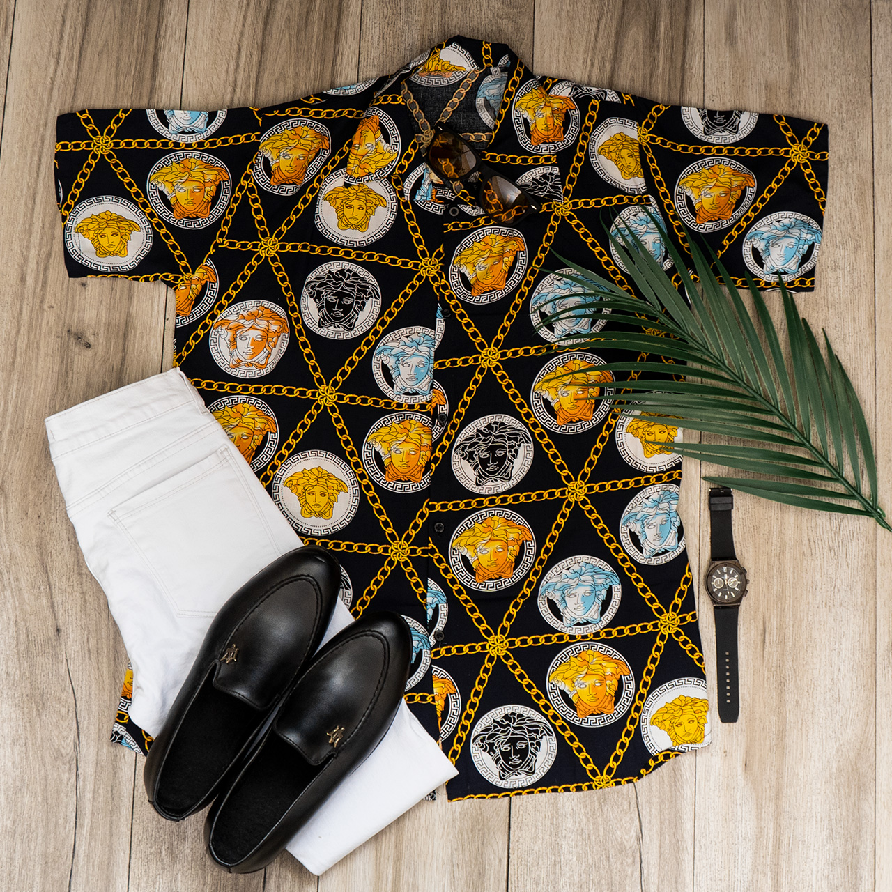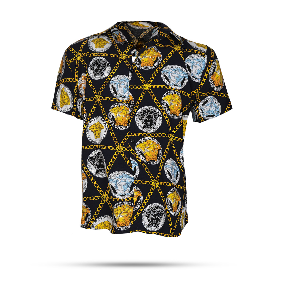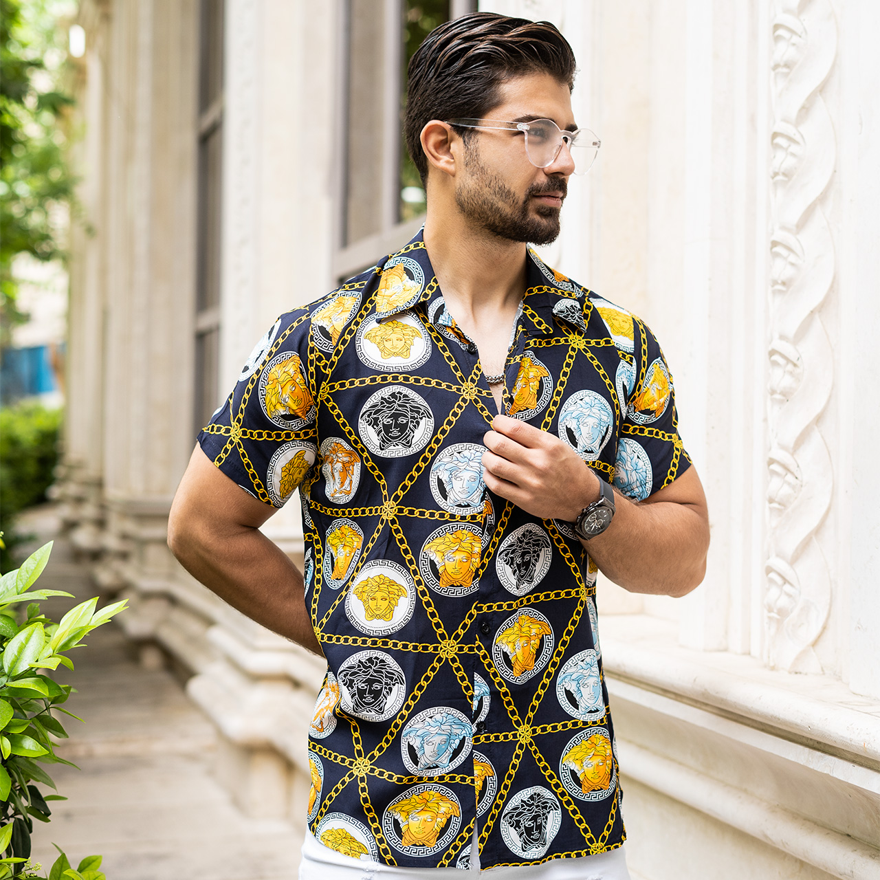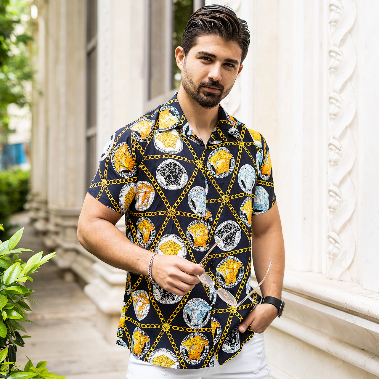 پیراهن هاوایی مردانه ورساچه سرمه ای مدل p8