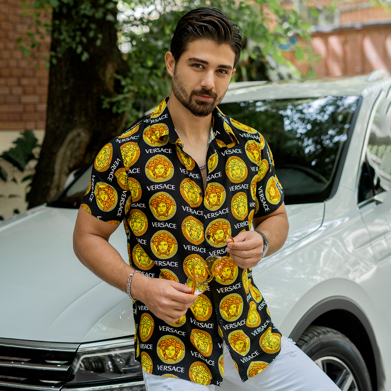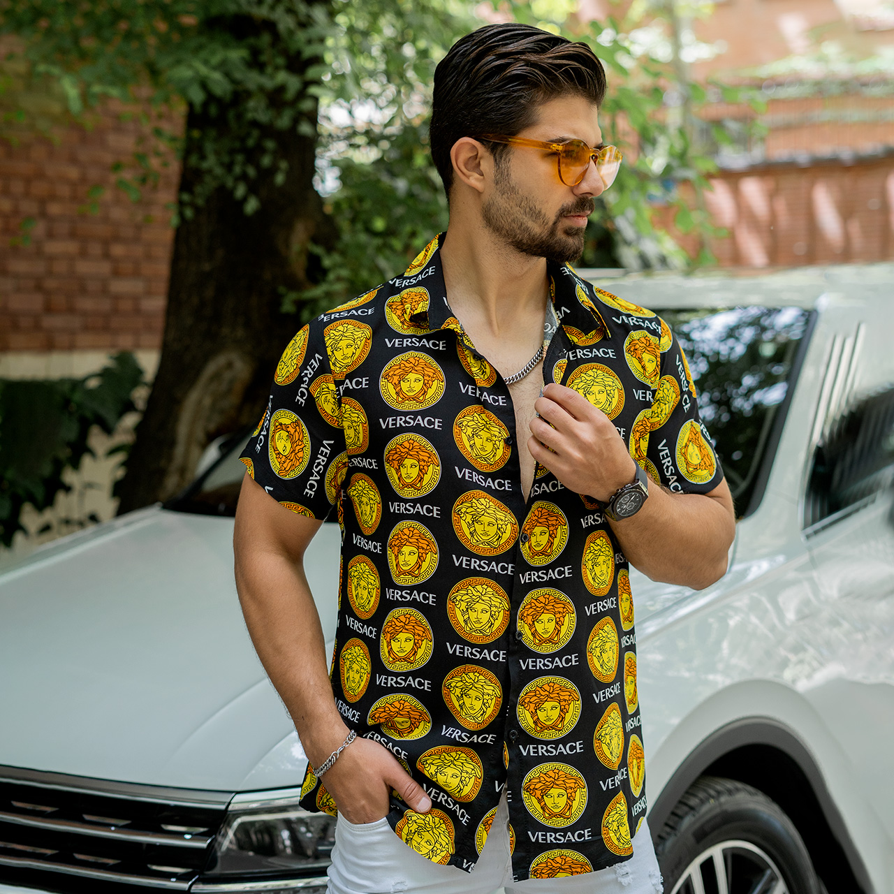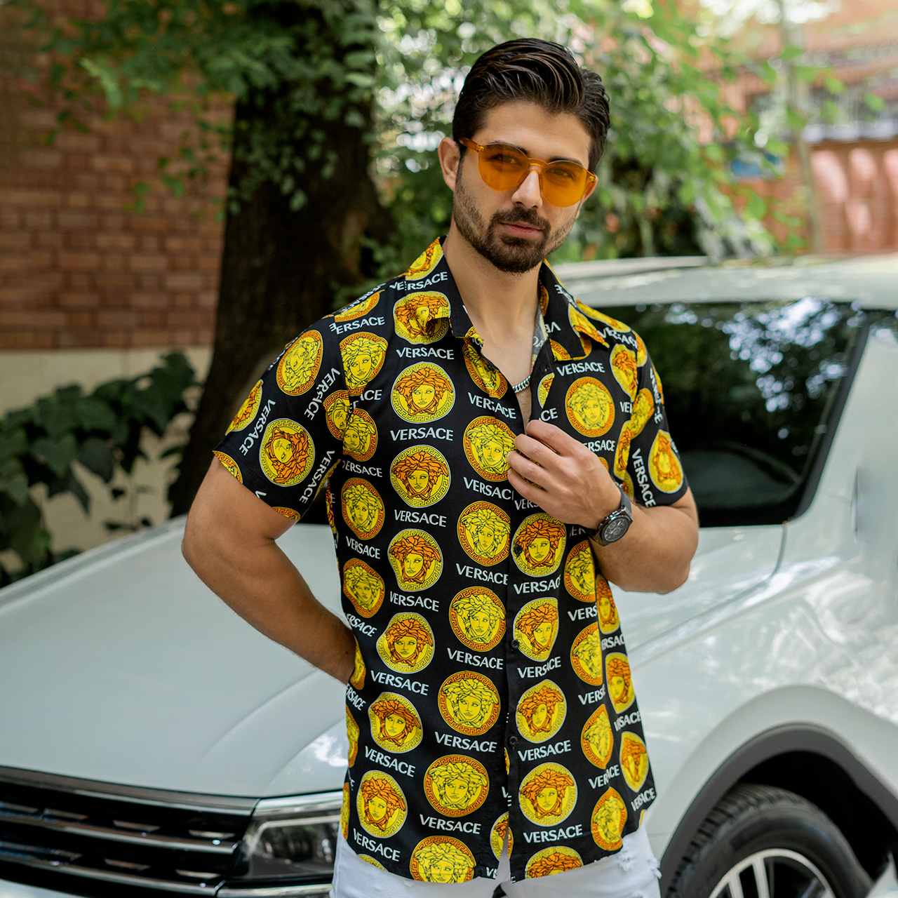 پیراهن هاوایی مردانه ورساچه زرد مدل P13