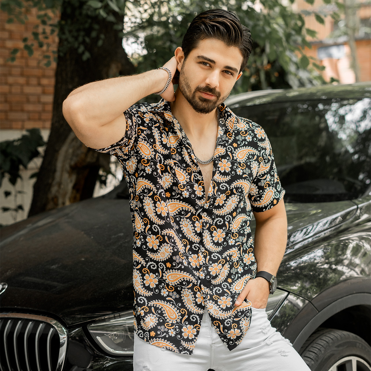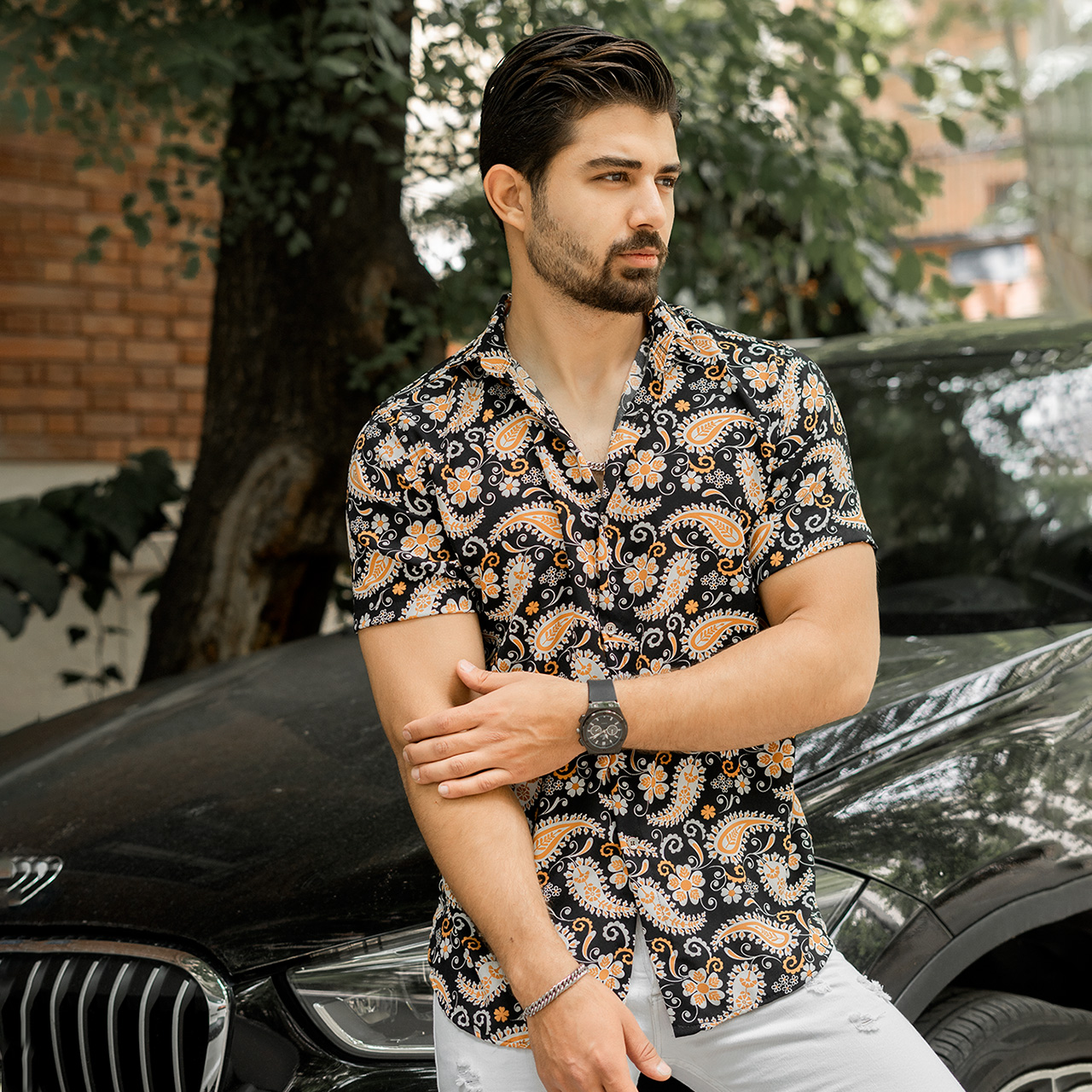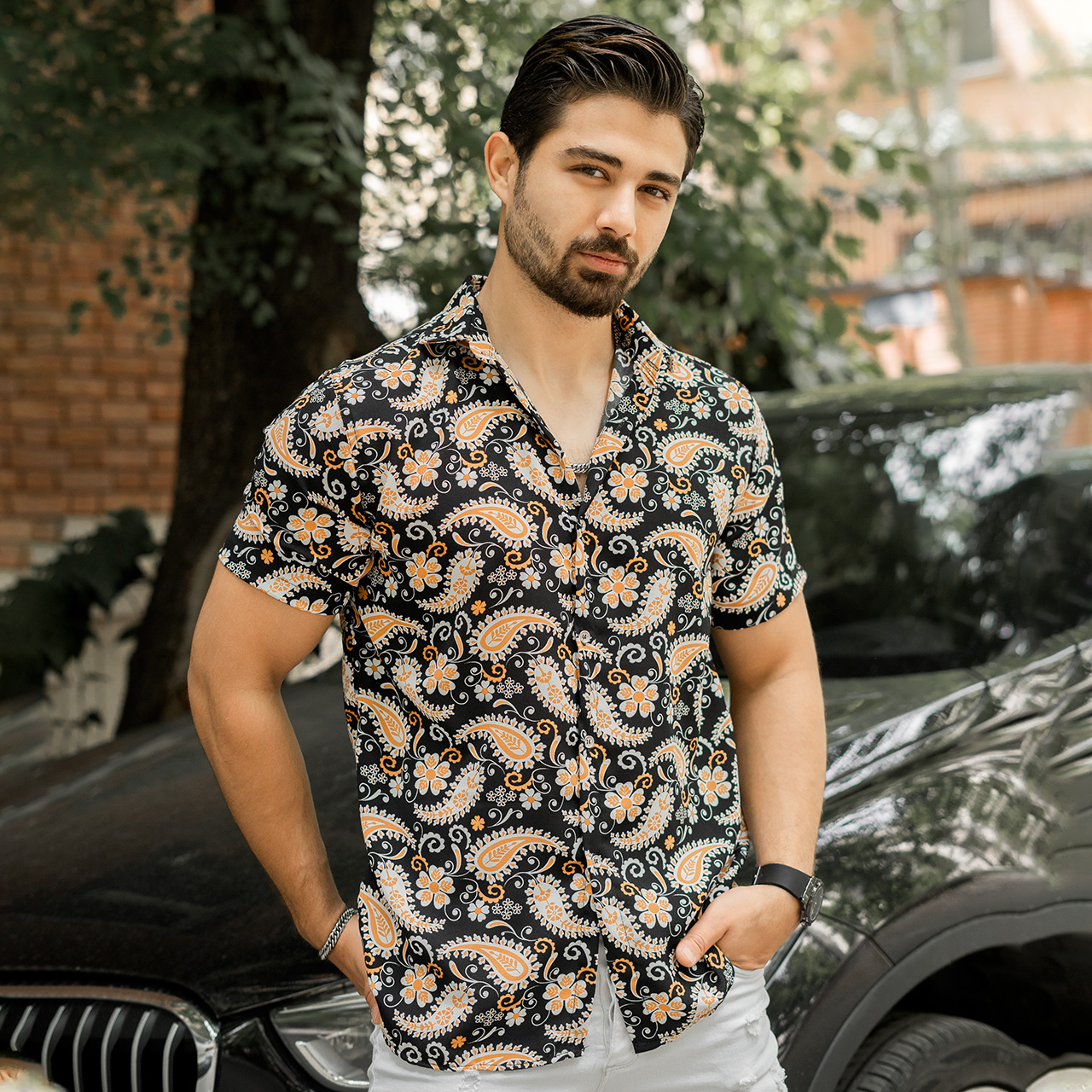 پیراهن هاوایی طرح بته جقه مردانه مدل calin