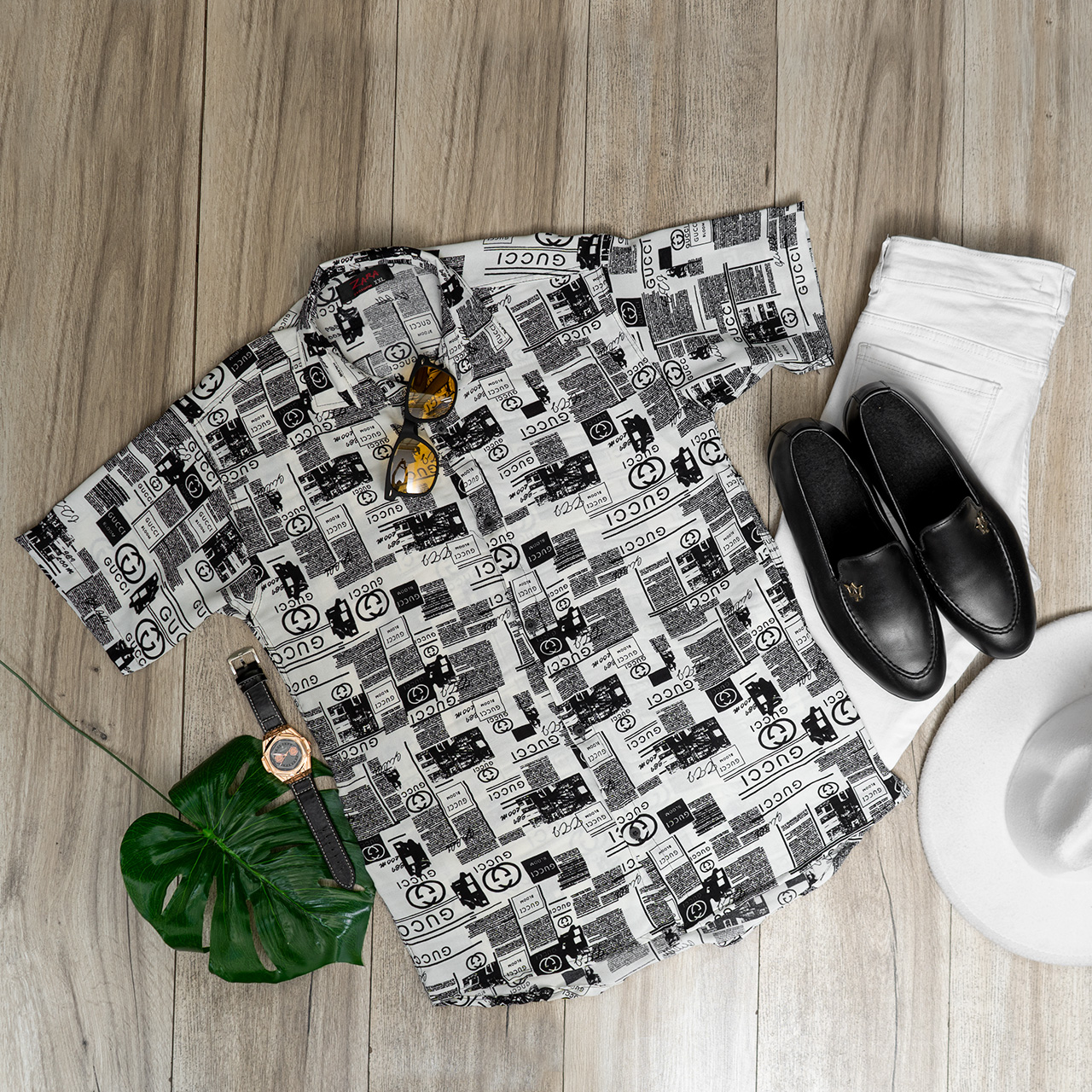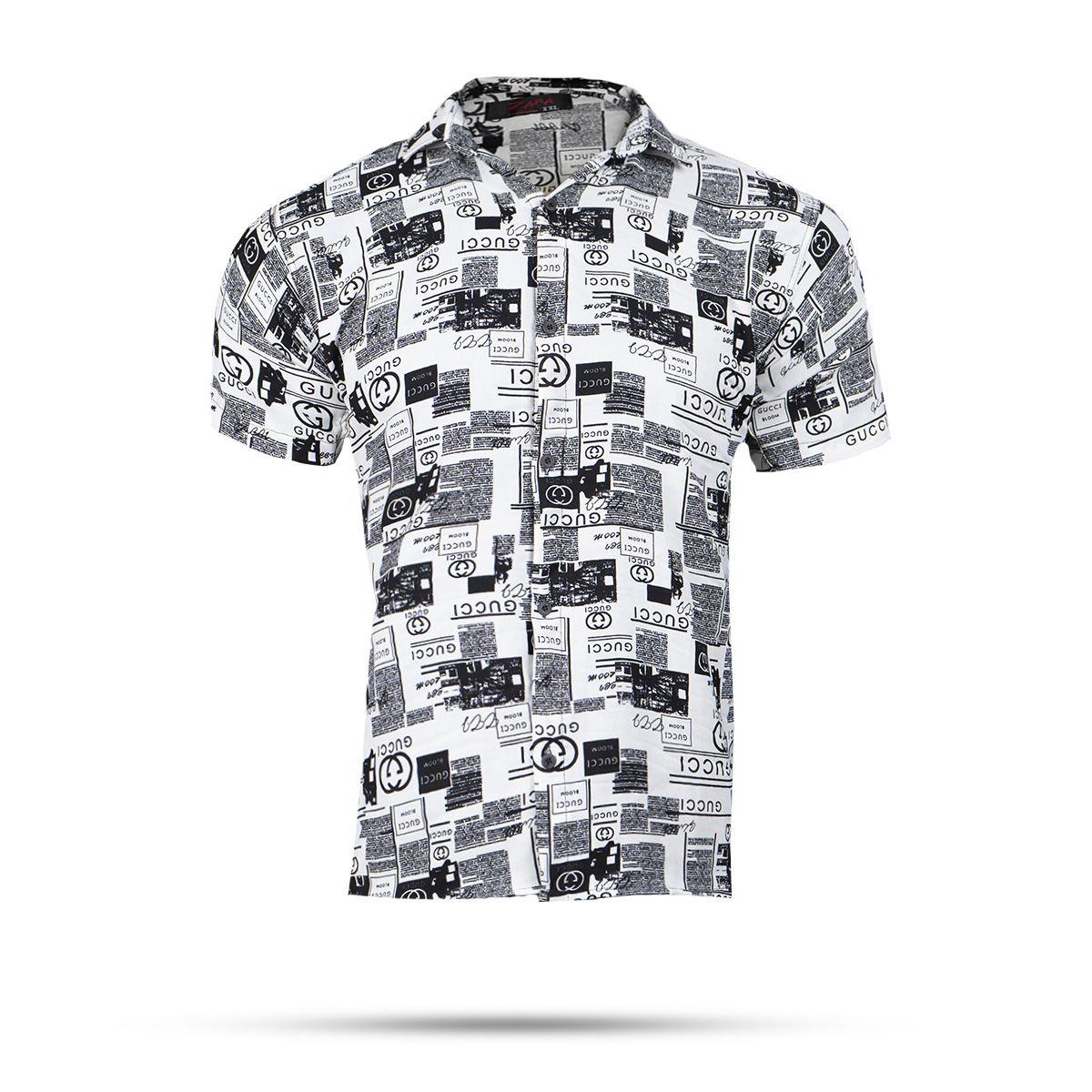 پیراهن هاوایی طرح نوشته سفید مردانه مدل Gucci