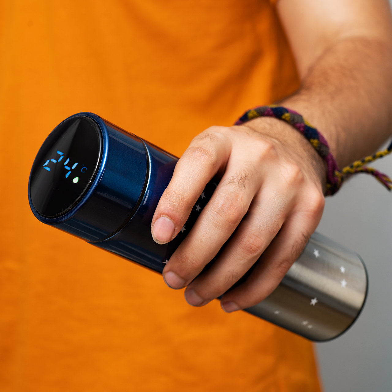 موقع کوهنوردی، سفر وپیاده روی ...به همراه داشتن آب سرد یا گرم به شرط این که دمای انها تغییری نکند خیلی لازم به نظر میرسد.فلاسک دماسنج دار با طراحی هوشمندانه ای که دارد ,دارای سنسور دمای هوشمند برای اندازه گیری دما هست که به راحتی میتوانید با ضربه زدن روی صفحه LCD آن از داغ بودن یا سرد بودن محتوای فلاسک باخبر شوید. داخل این فلاسک ها یک صافی استیل ضد زنگ قرار دارد که مانع مخلوط شدن دمنوش گیاهی و چای با آب شده و شما به راحتی میتوانید توری یا صافی را از لیوان دمنوش ساز جدا کرده و بشویید.این فلاسک بدون شارژر بوده و باطری آن مدت طولانی عمر میکند و قابل تعویض می باشد. همچنین خود فلاسک آب داغ را به مدت زیاد حدودا ۶ ساعت بصورت کیپ و داغ حفظ میکند.