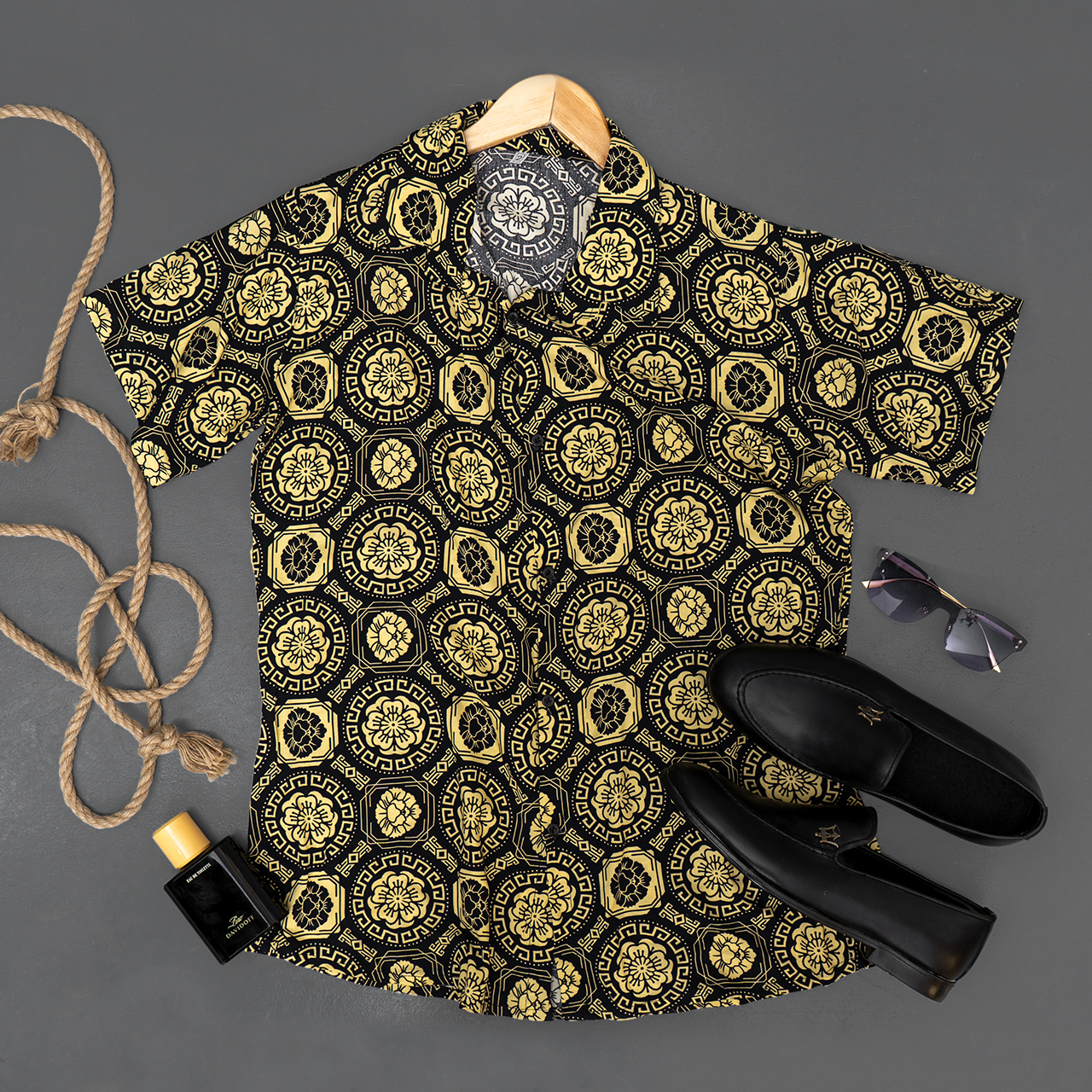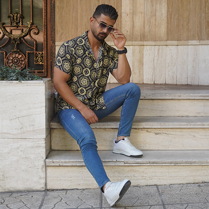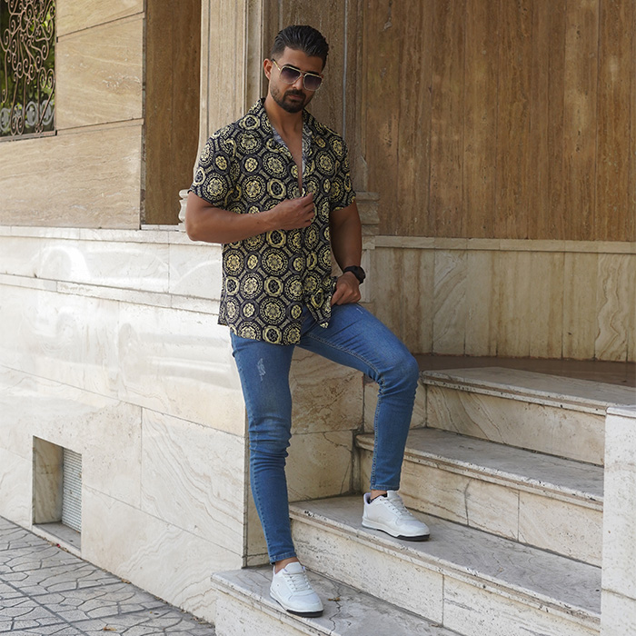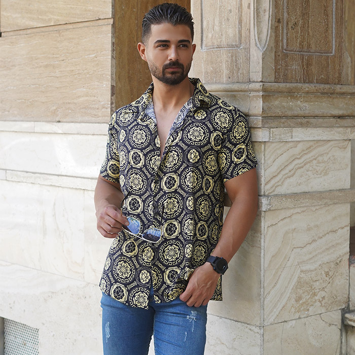پیراهن هاوایی مردانه ورساچه طرح گل مدل W52