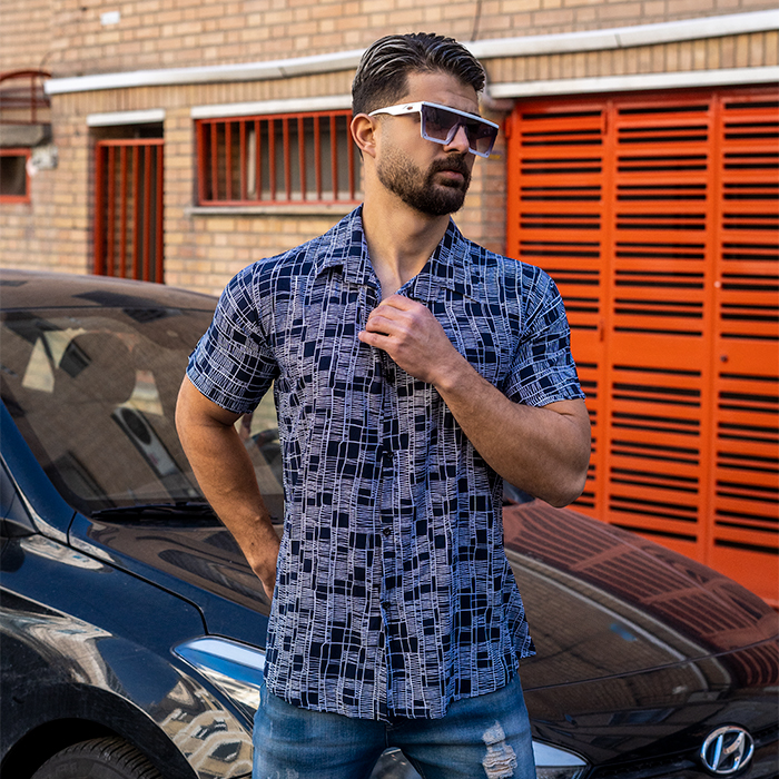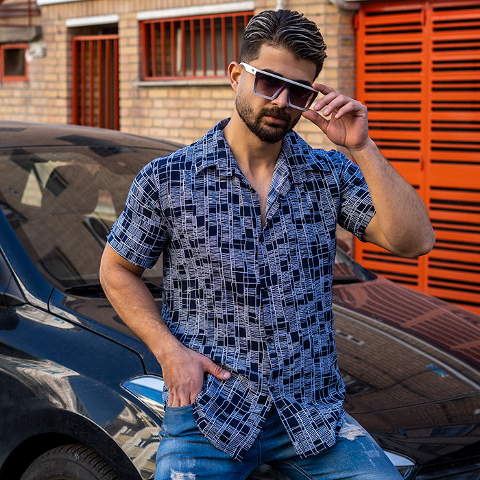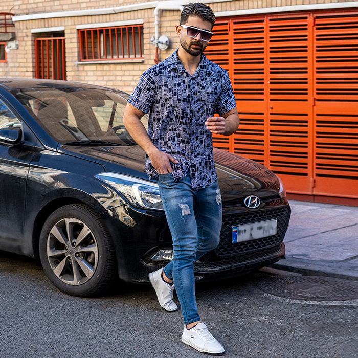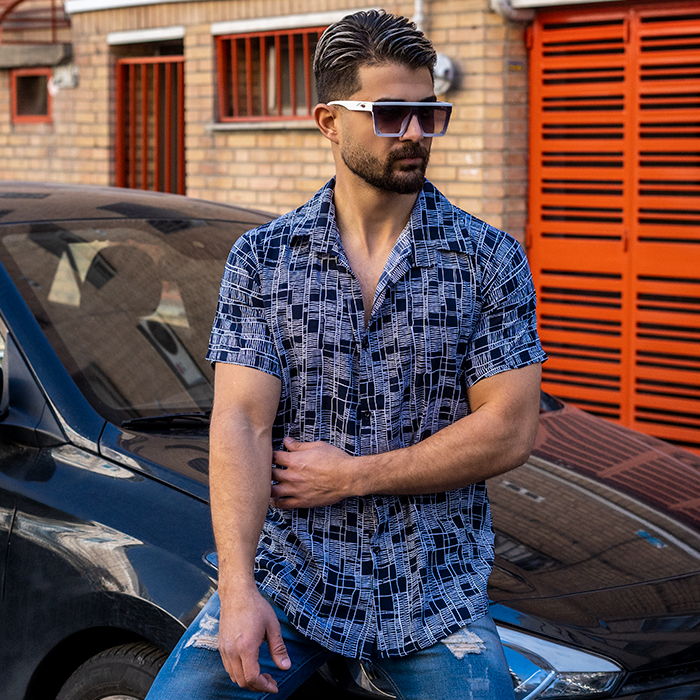 پیراهن هاوایی طرح خطوط مردانه مدل L52