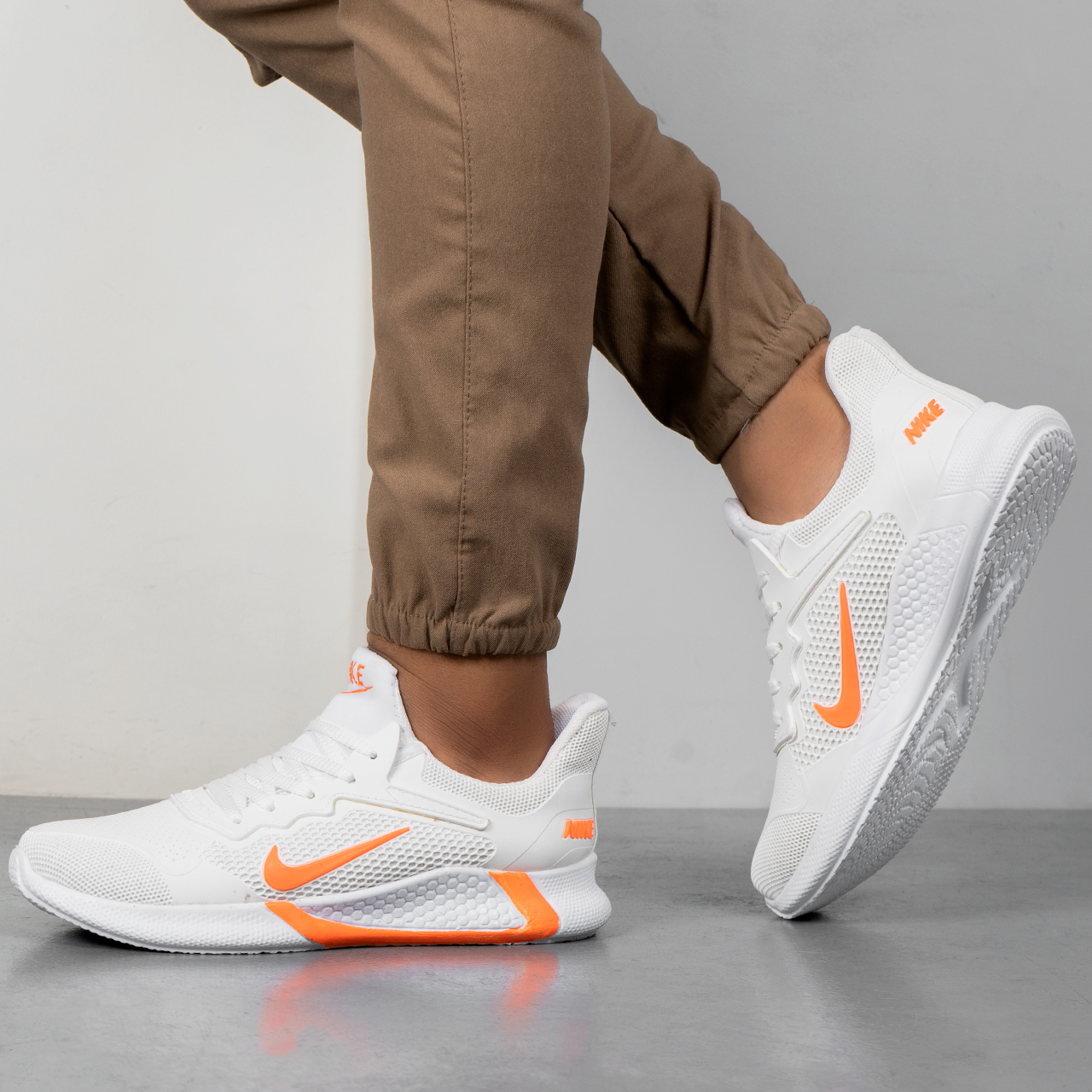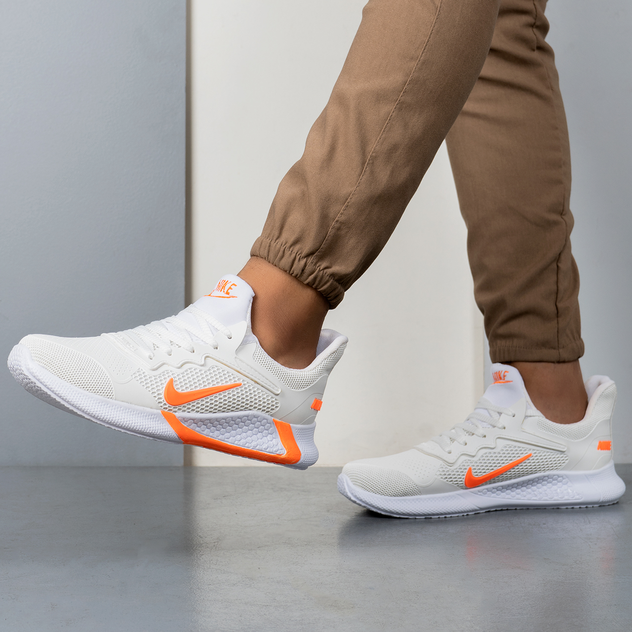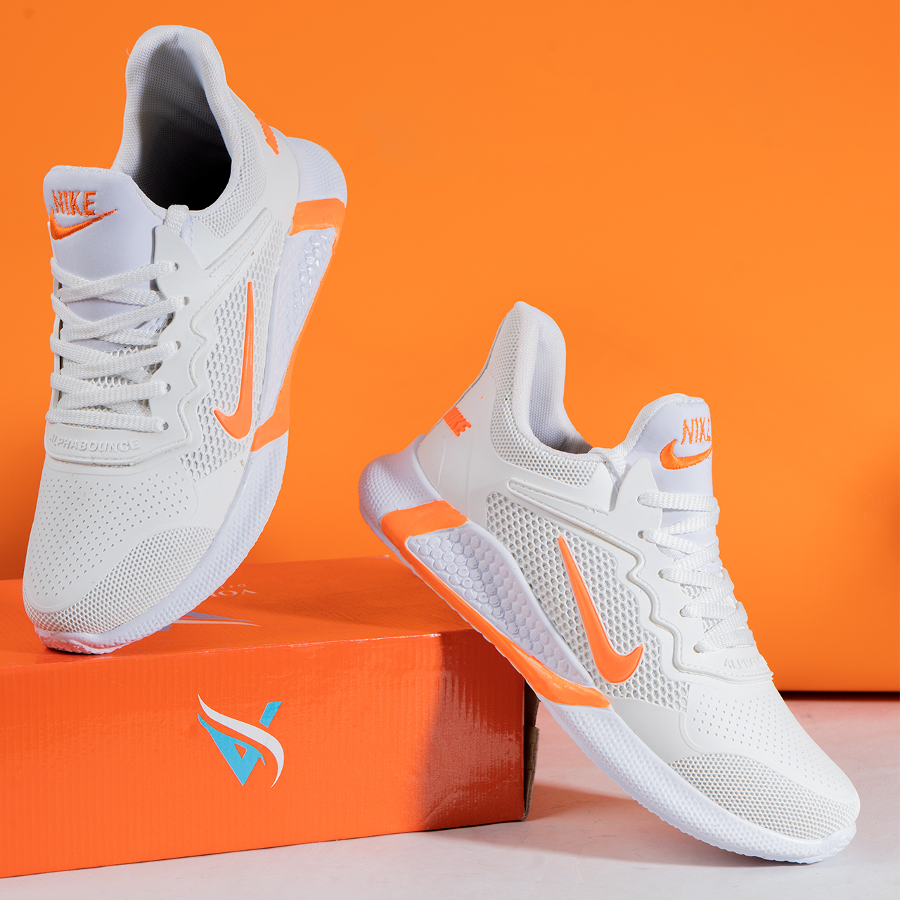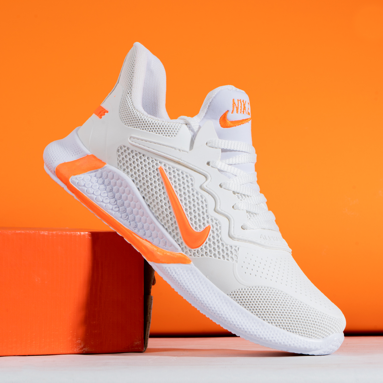 کفش ورزشی نایک مردانه سفید نارنجی مدل Alpha