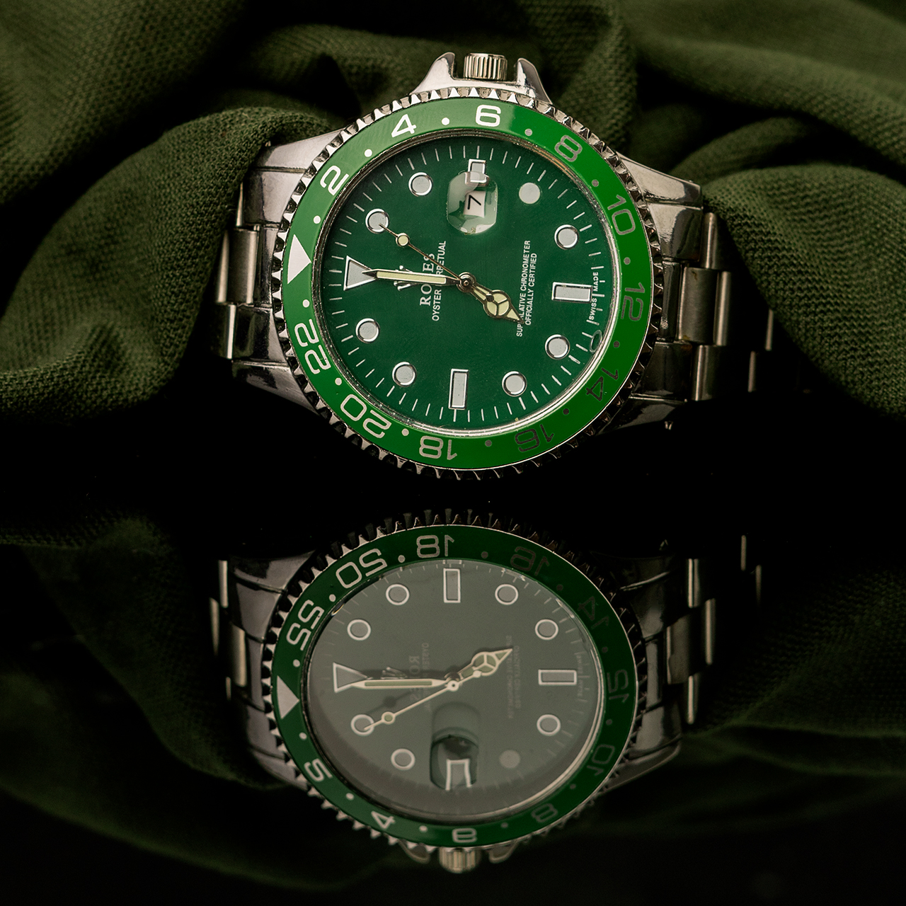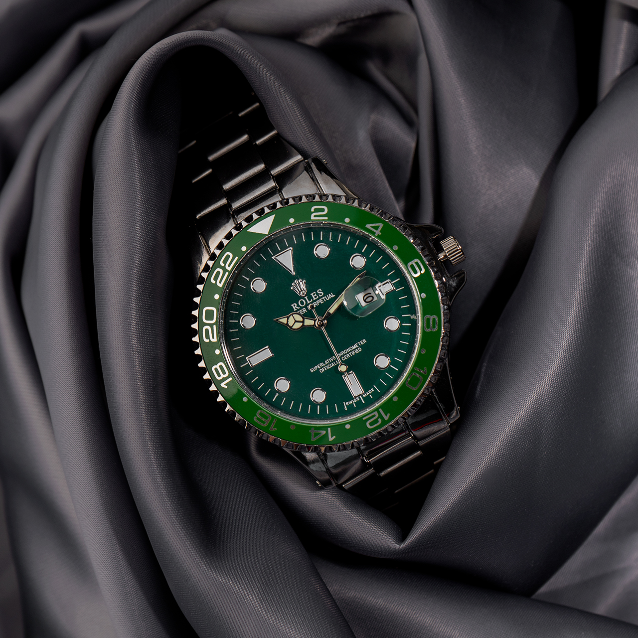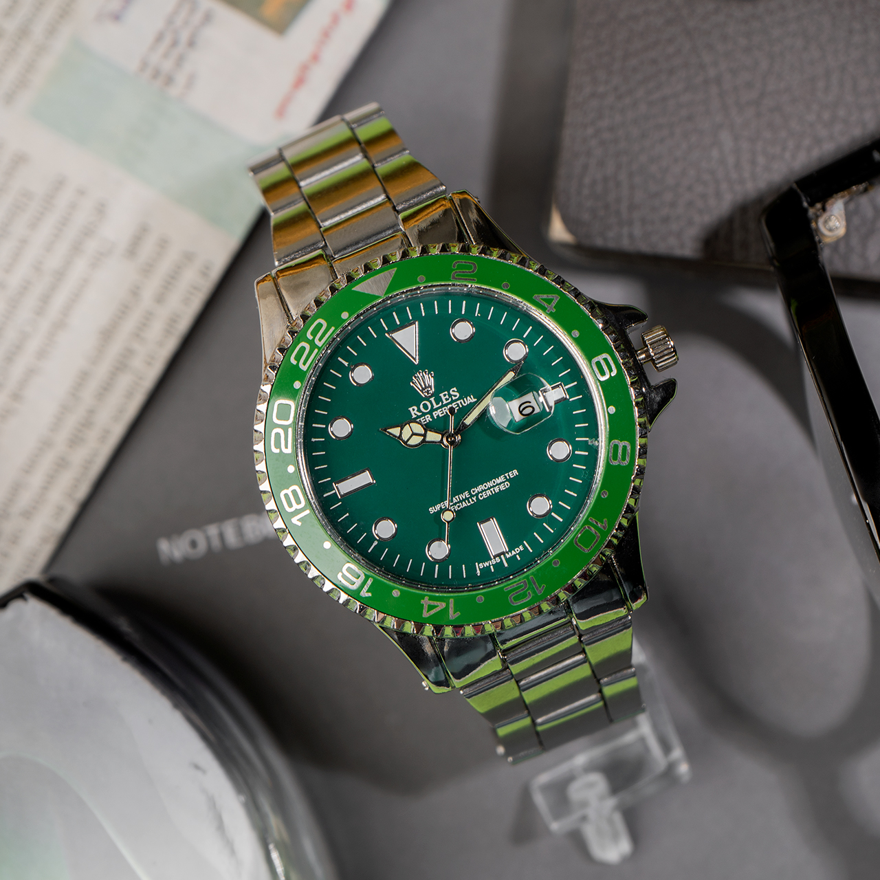 ساعت رولکس نقره ای صفحه سبز مردانه مدل 435