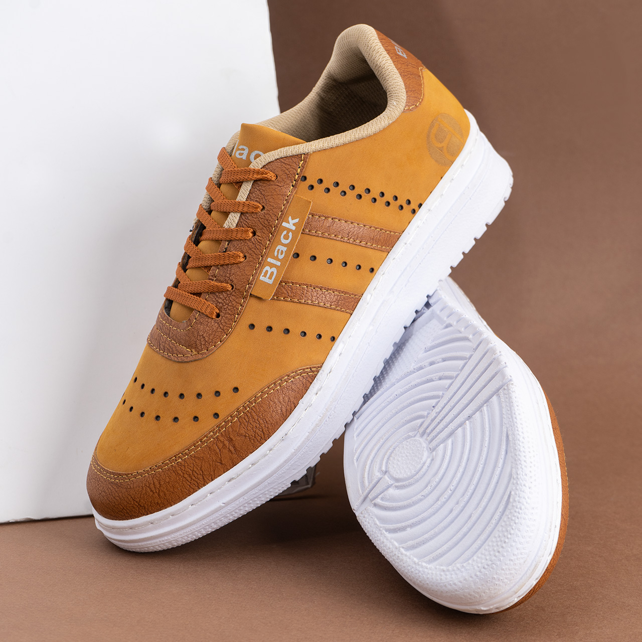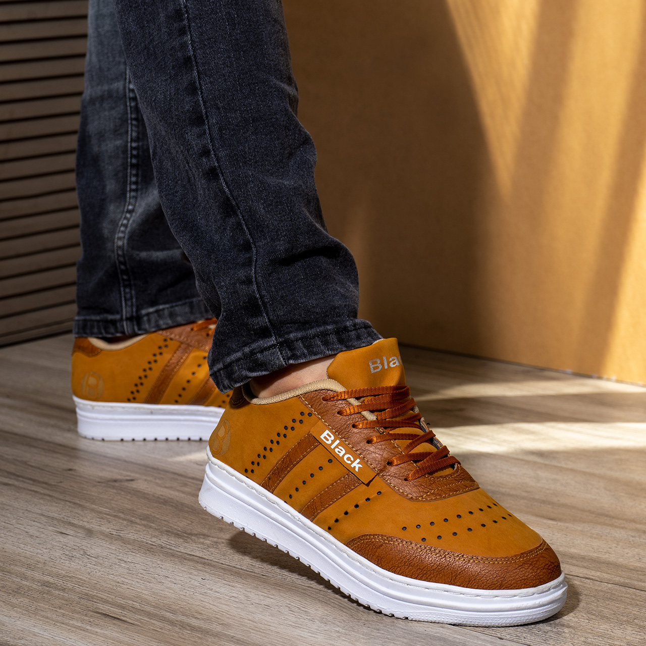 کفش تخت مردانه عسلی زیره سفید مدل Black