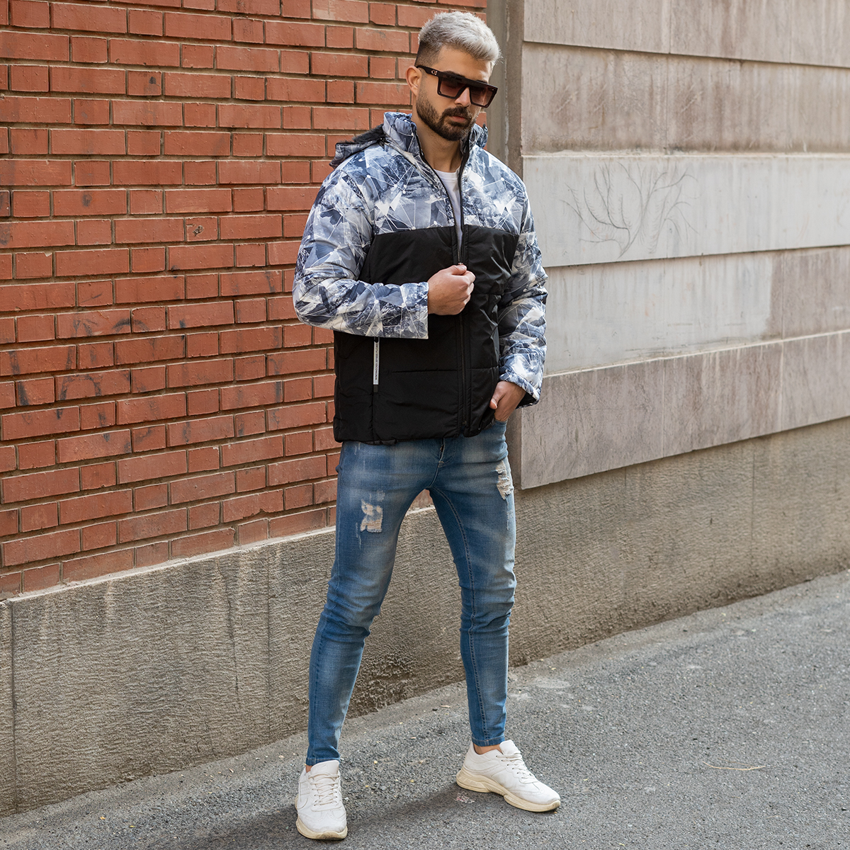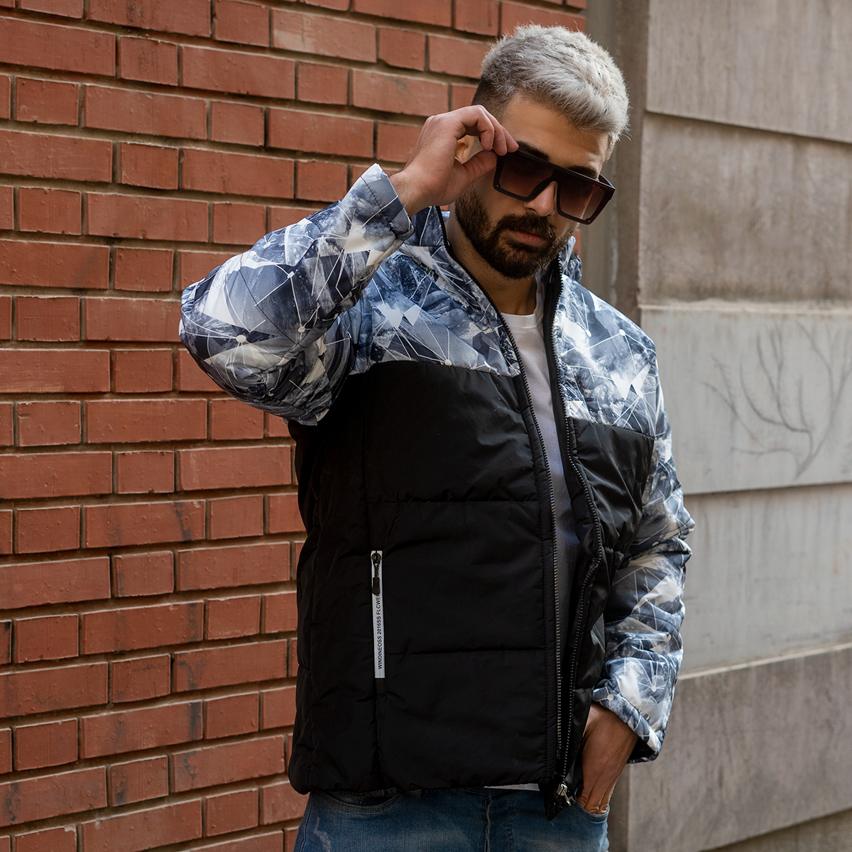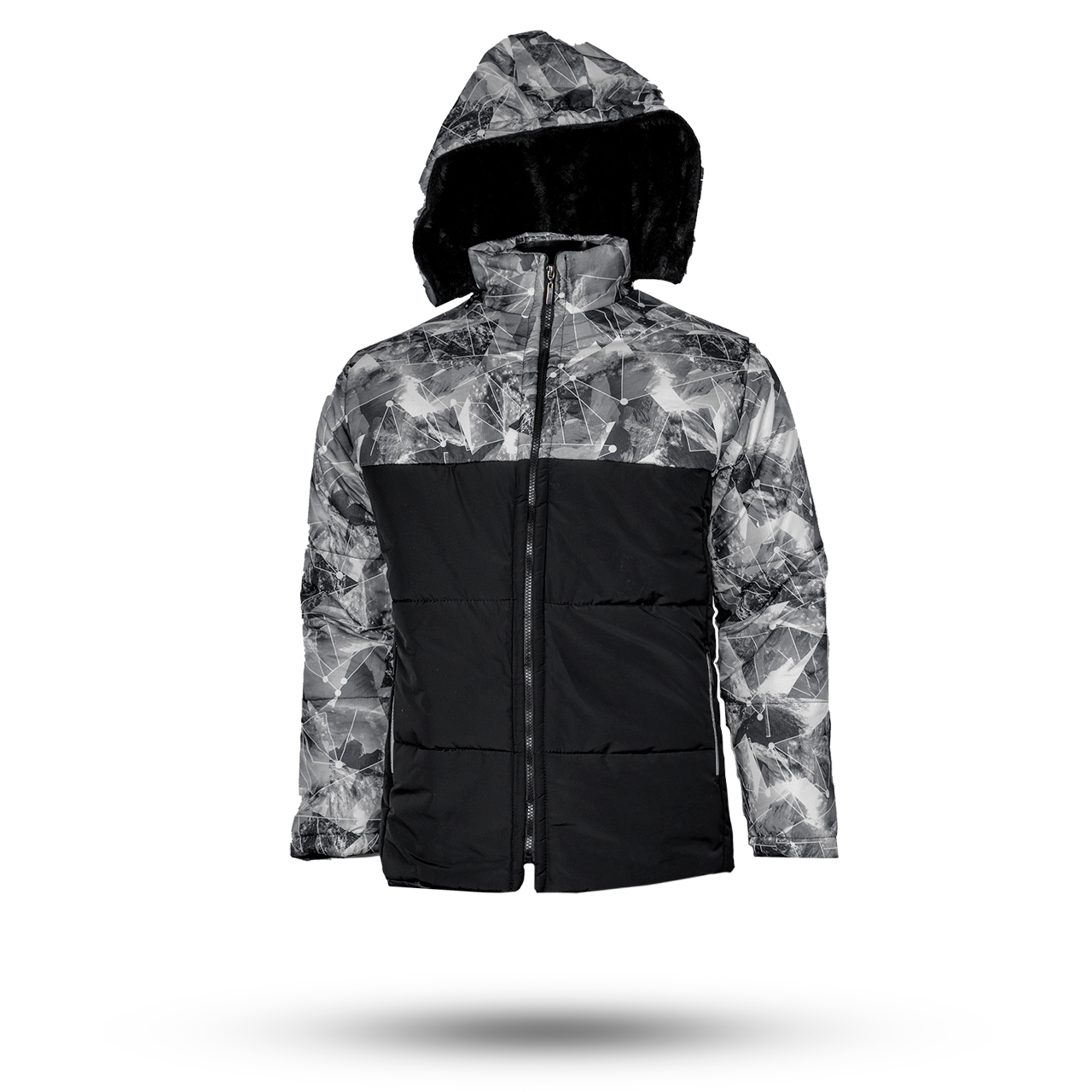 کاپشن مردانه طرح هندسی مشکی -طوسی مدلU800
